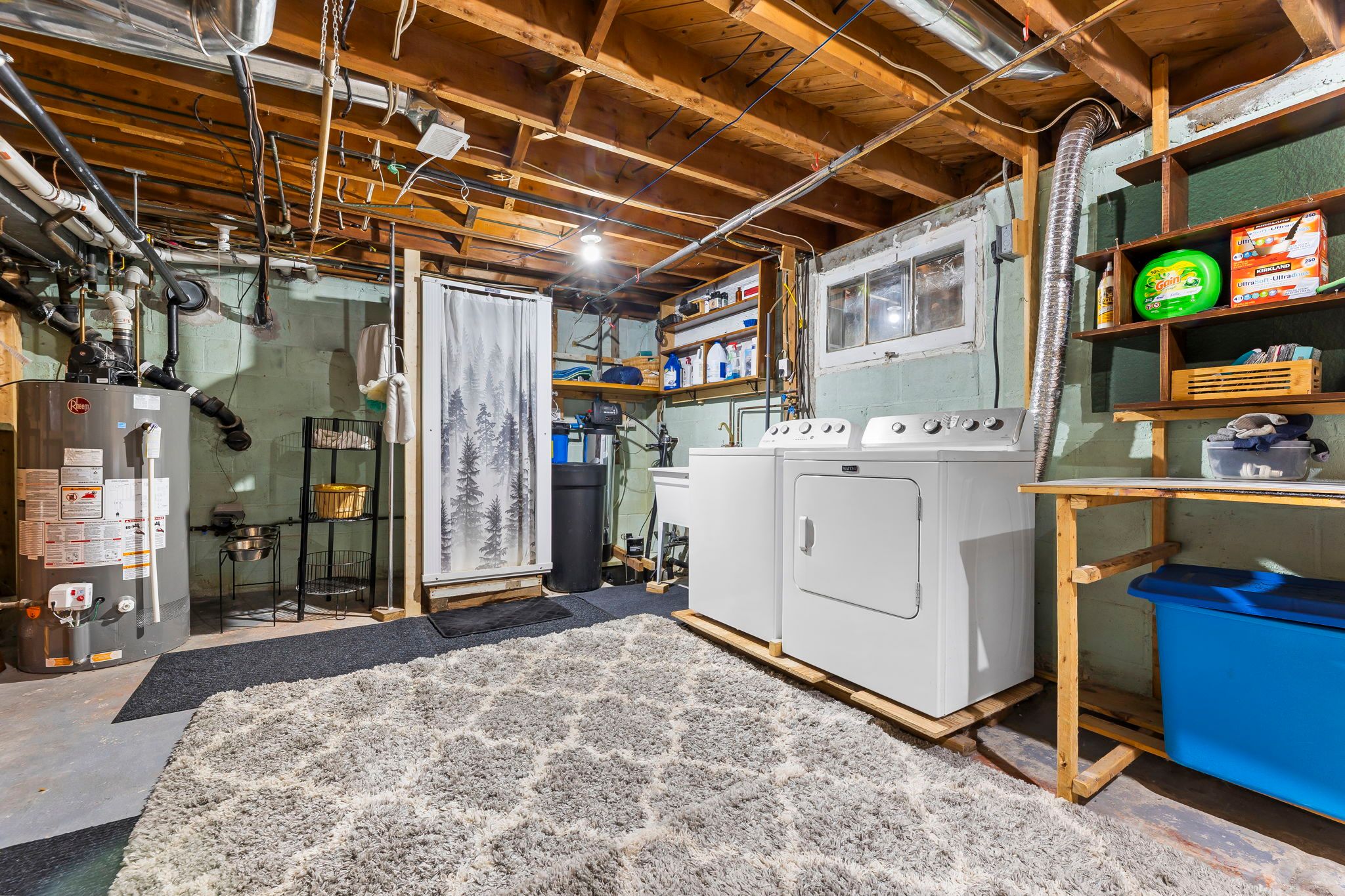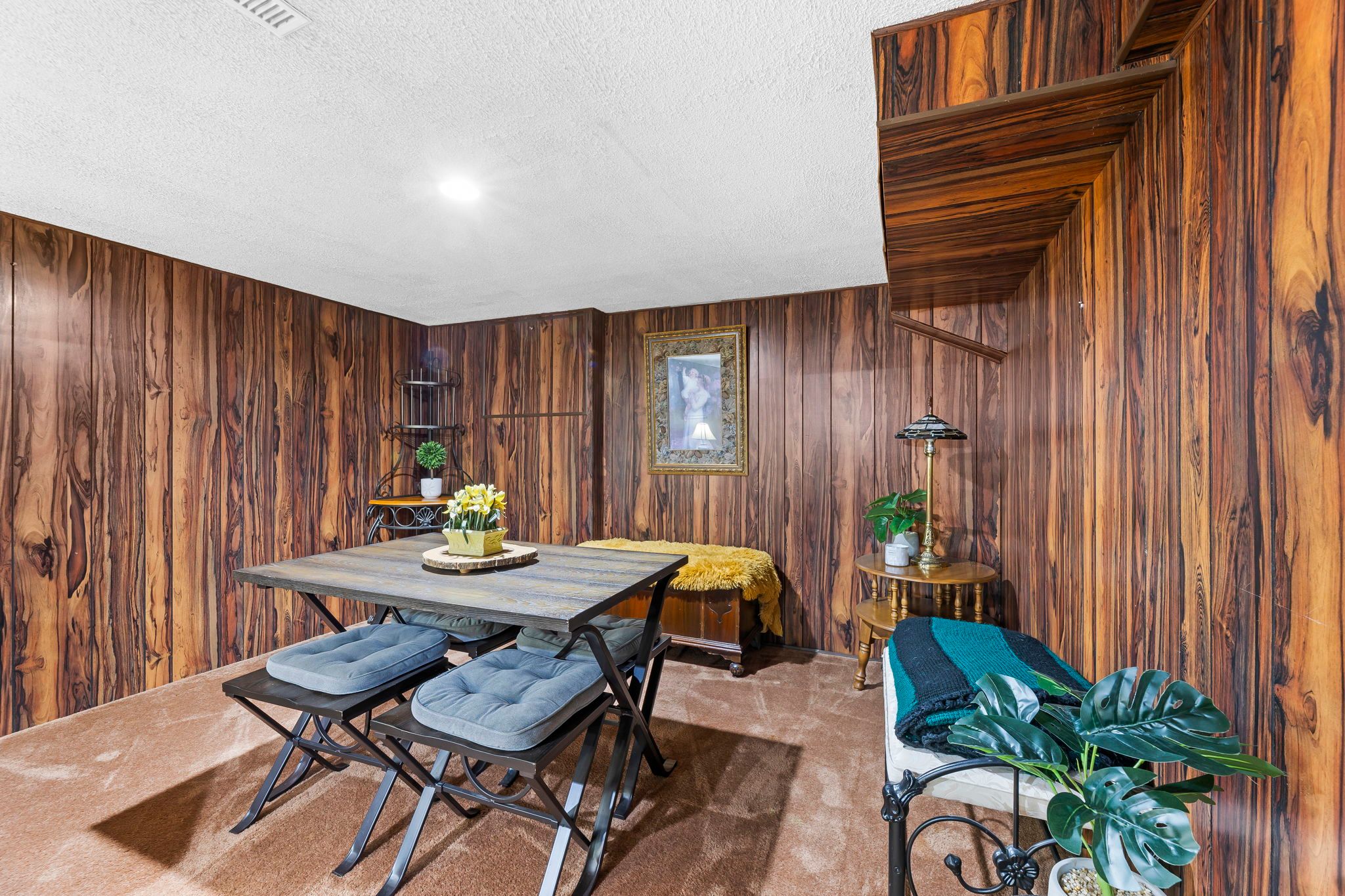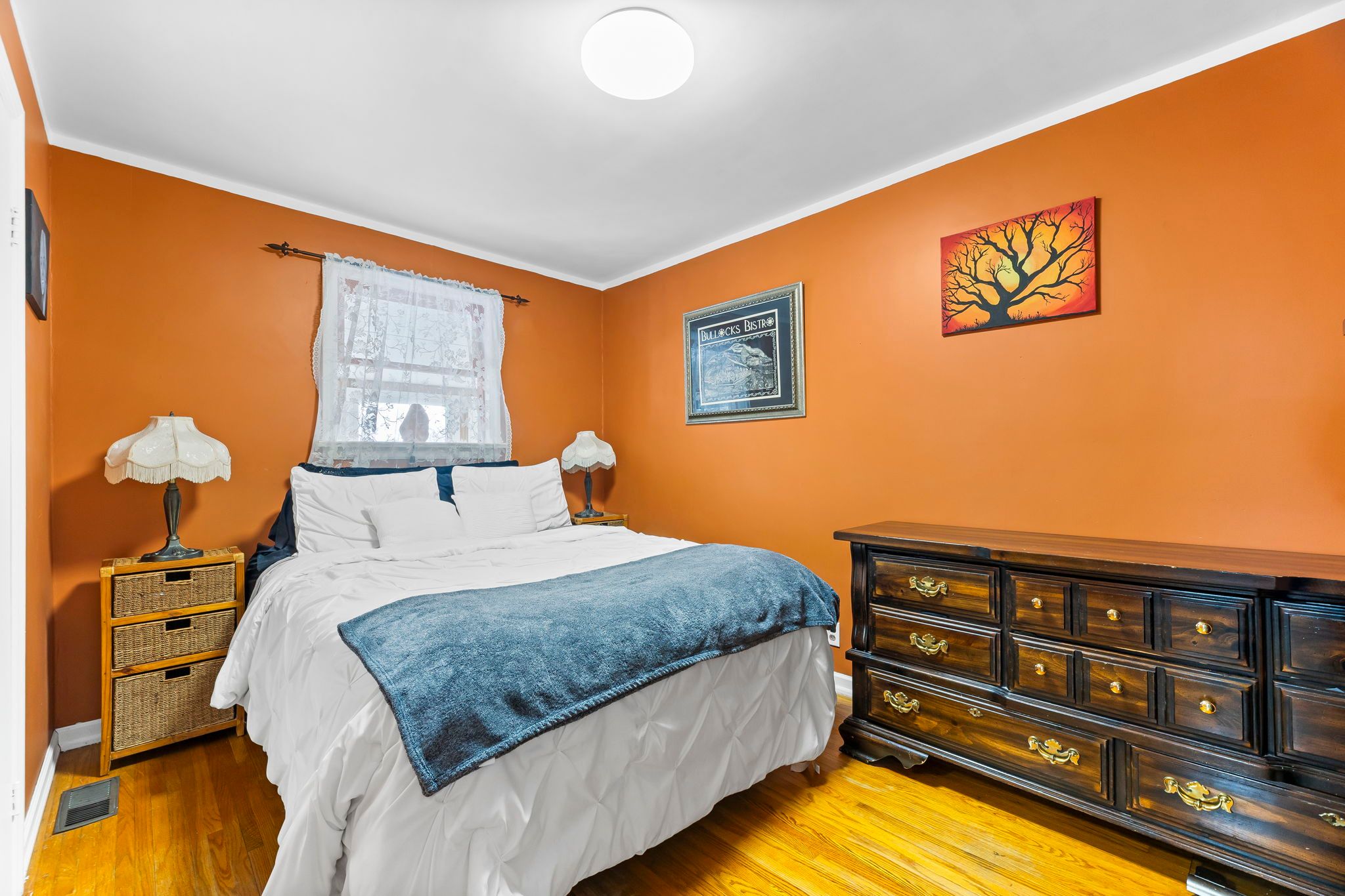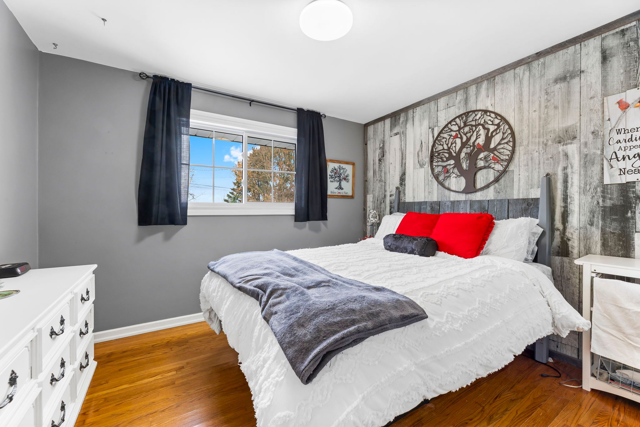 • Finished lower level includes recreational space, bar, and extra bedroom.