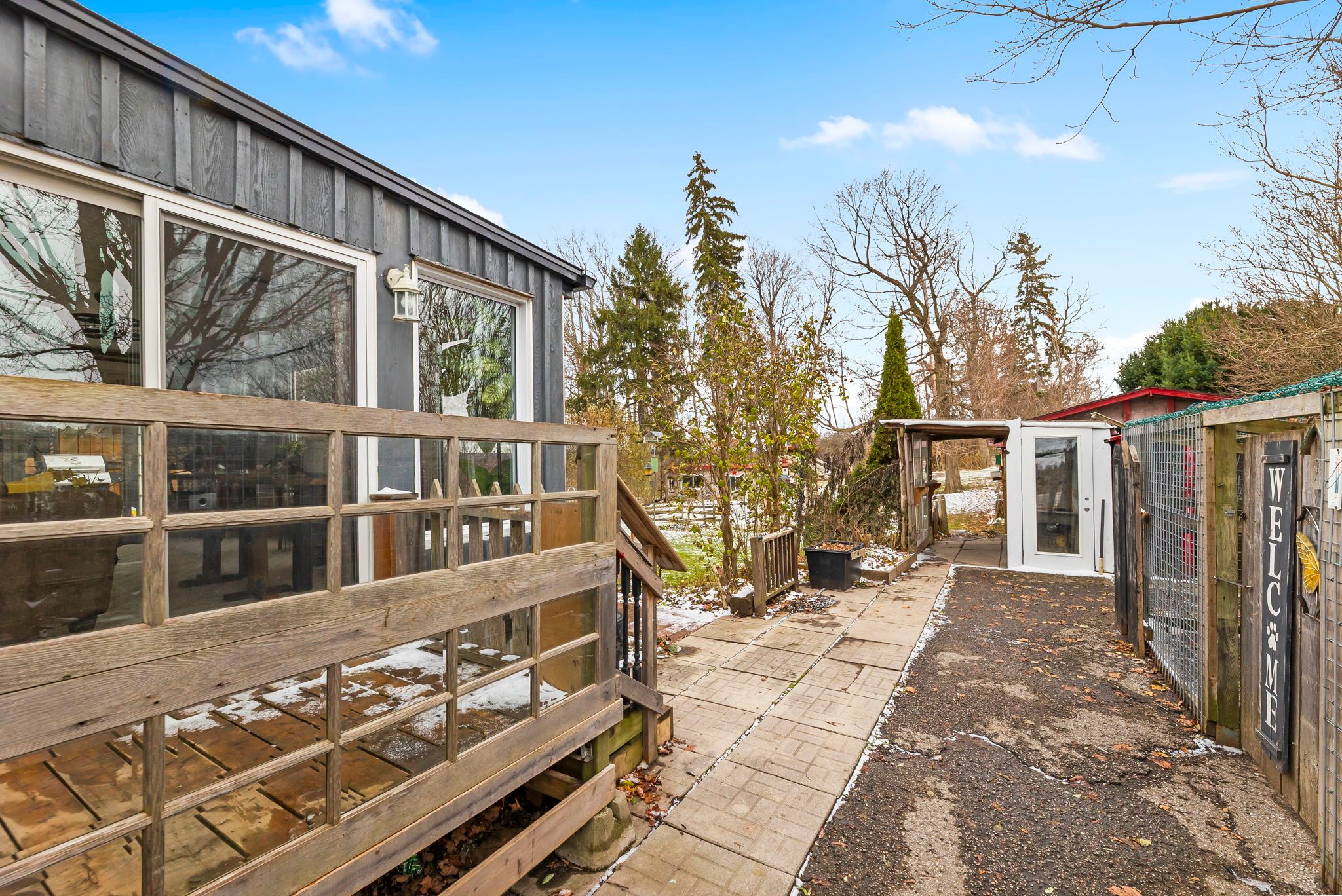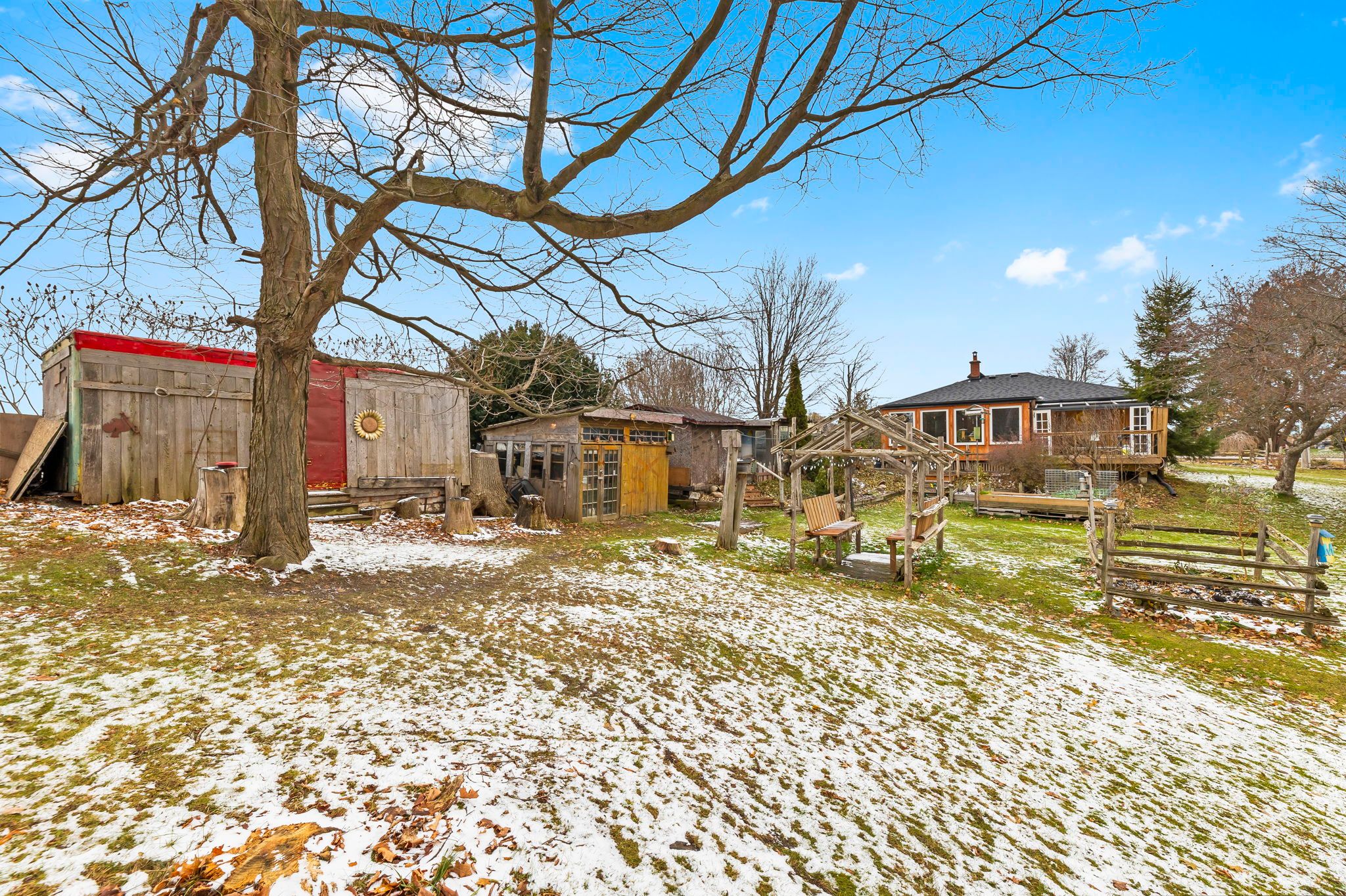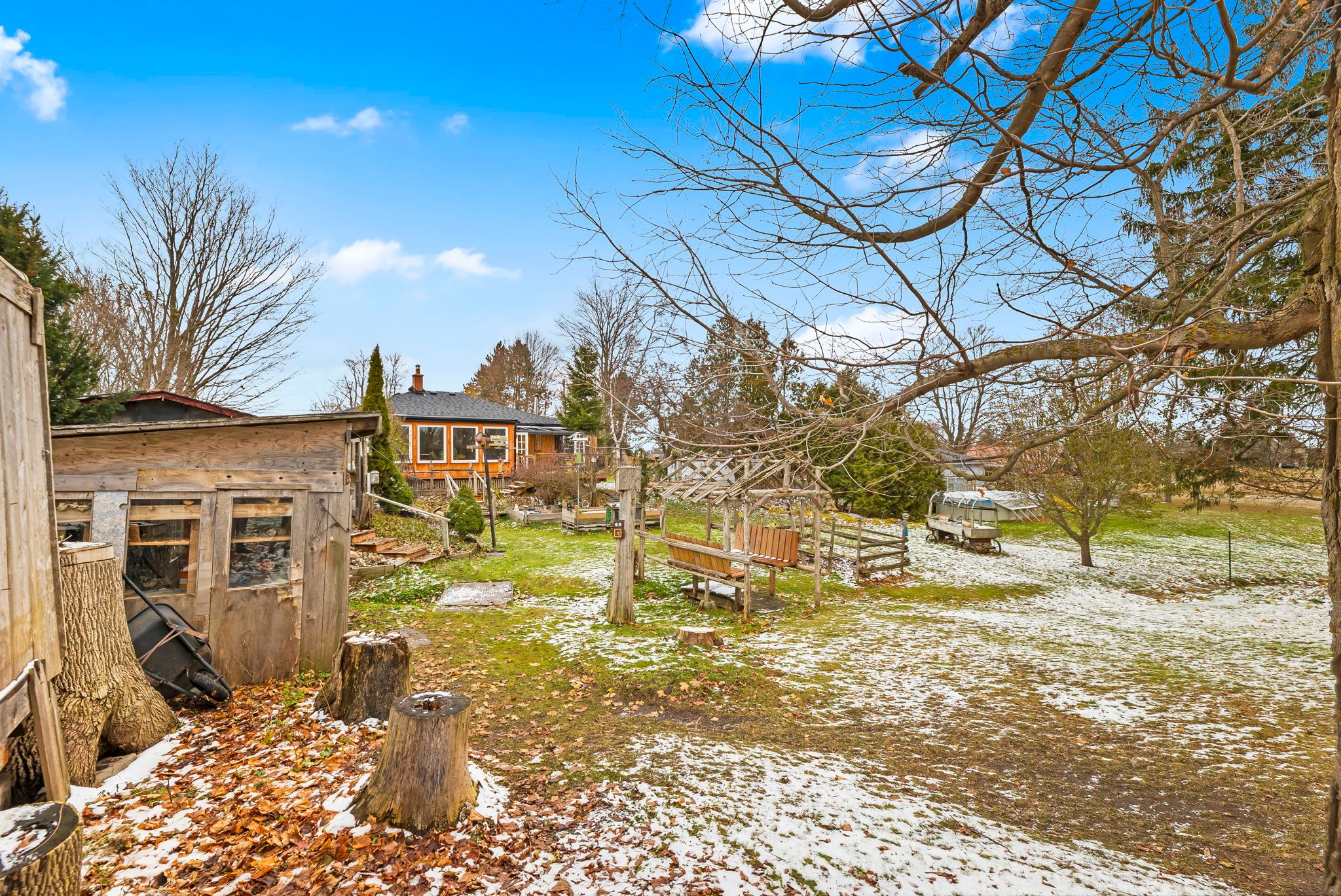 Charming country bungalow on approx. 1/3 of an acre in prince albert, just minutes from port perry, surrounded by trees, meadow views and wide-open skies. This lovingly maintained 3+1 bedroom, 2-bath home offers both character and comfort, with major updates already done: roof, eaves and flashing (2024); new sunroom windows (2022); and almost all windows replaced within the past 5 years, plus 200 amp electrical service for peace of mind. The bright kitchen with centre island opens to a generous dining and living area with hardwood floors, perfect for everyday living and easy entertaining. A sunny south-facing sunroom with walkout to the deck extends your living space in four seasons and overlooks the spacious fenced yard. Downstairs, the finished lower level features a large recreation room with built-in bar, separate family room, 4th bedroom, extra shower, and excellent storage/utility space. Outside, multiple outbuildings (barn, sheds, workshop) offer room for hobbies, toys and tools, while the private drive accommodates ample parking. Enjoy rural living with golf, school bus route and amenities nearby - a warm, welcoming property ready for its next owners
