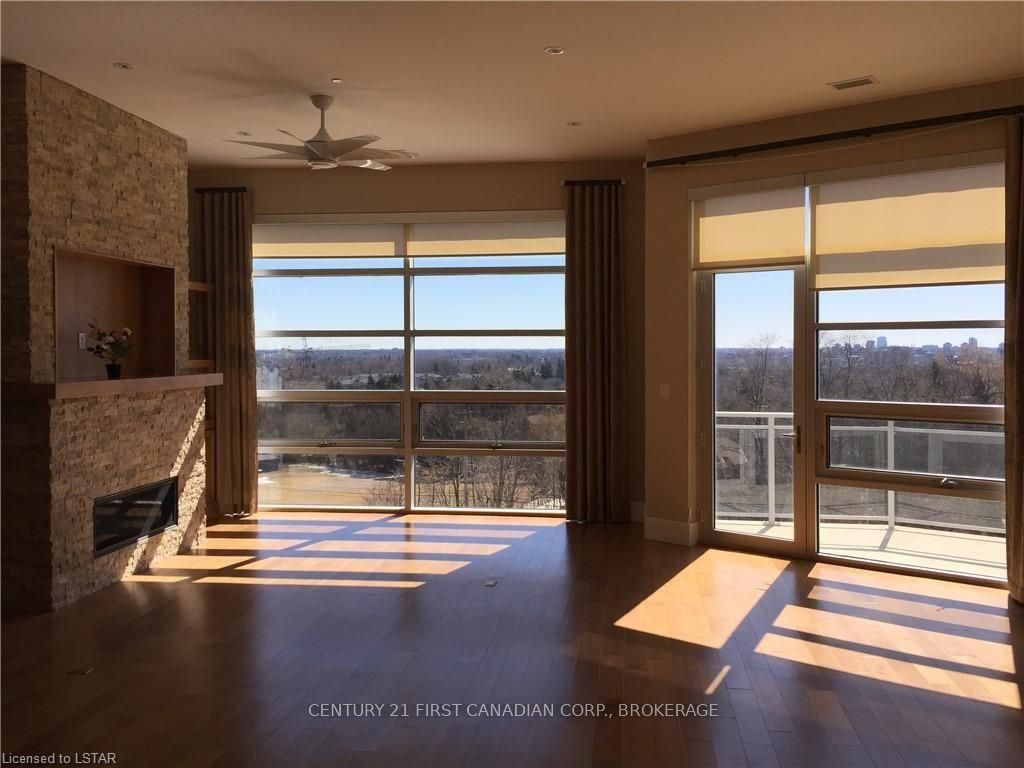 Rare opportunity to lease this beautiful 2-bedroom penthouse with soaring 10" ceilings and the best view in the complex overlooking downtown, featuring engineered hardwood throughout, a custom woody's kitchen with built-in appliances, stone feature wall with fireplace, in-floor heating, remote control blinds and fans, a south-facing patio perfect for bbq, ensuite with built-in cabinetry and oversized glass shower, plus 2 parking spots (heated underground and carport), all in a prime location within walking distance to masonville mall, schools, banks, parks, and transit, just a short bus ride to western university and university hospital, close to top schools (a. B. Lucas ss, masonville ps, st. Catherine, st. André bessette), biking and walking trails through medway valley, and sunningdale golf course, making it the ideal home for professionals, families, or retirees seeking an active and upscale lifestyle. Showings will be arranged only for qualified tenants with stable income and good credit. Perfect for students, professionals, or a family!