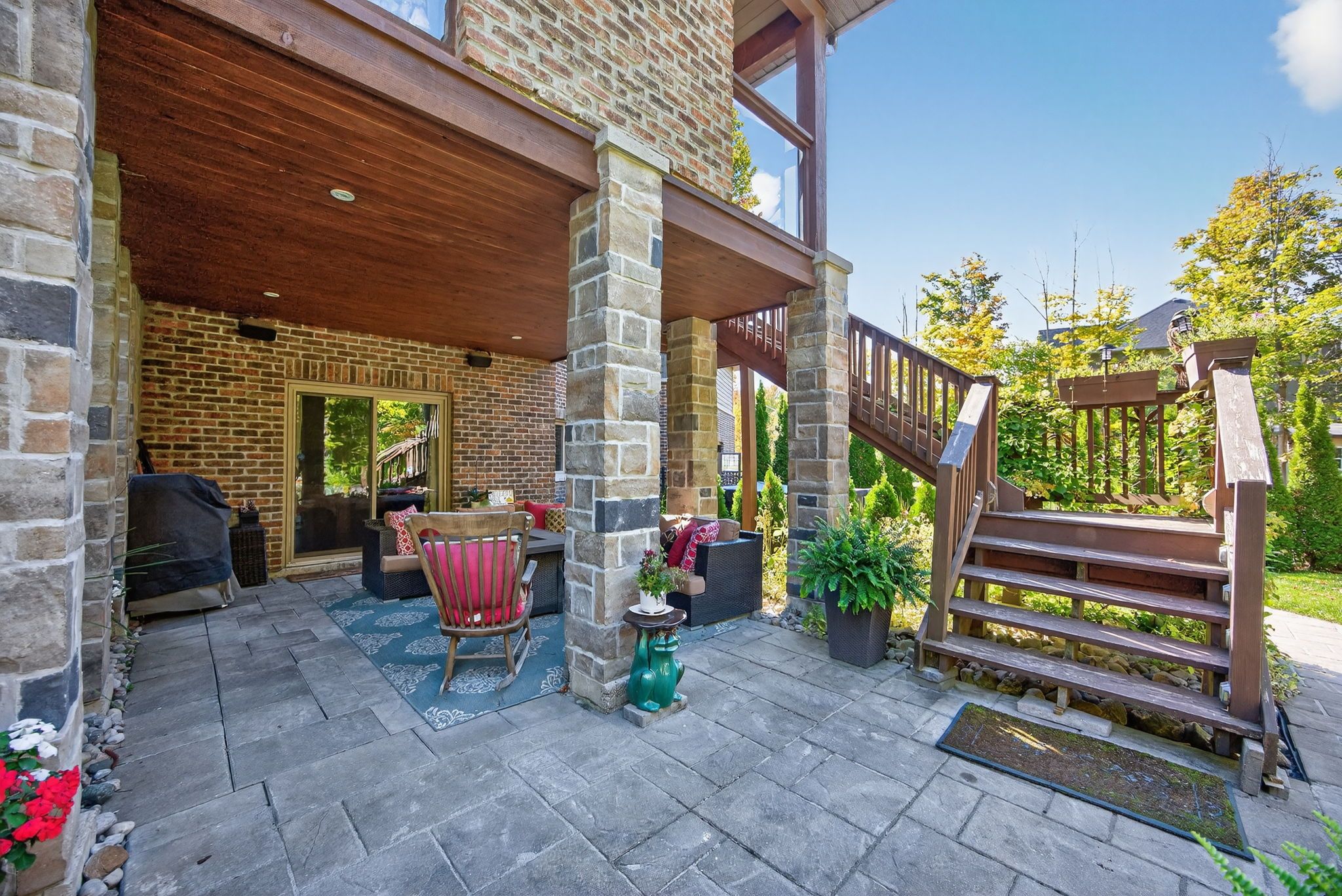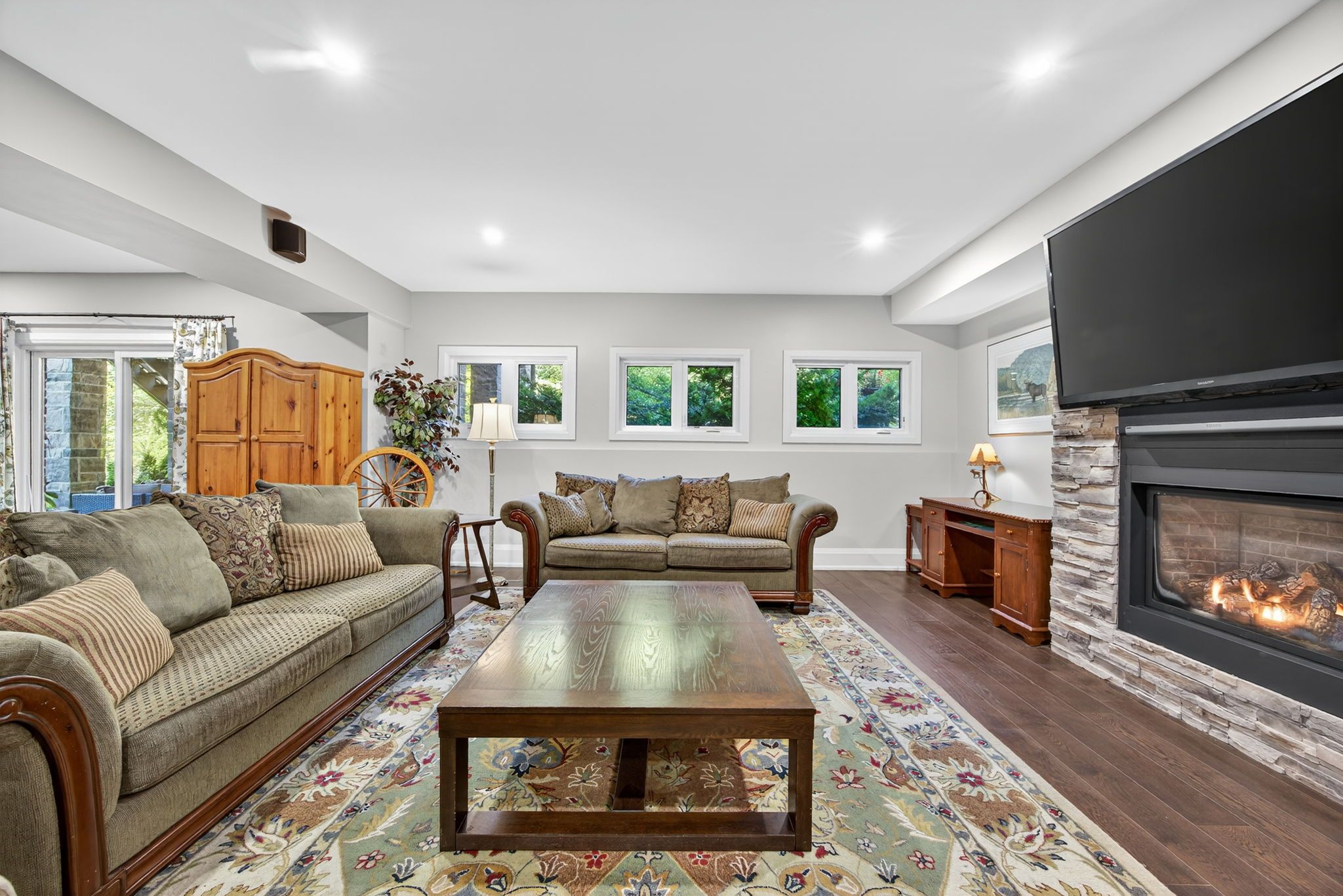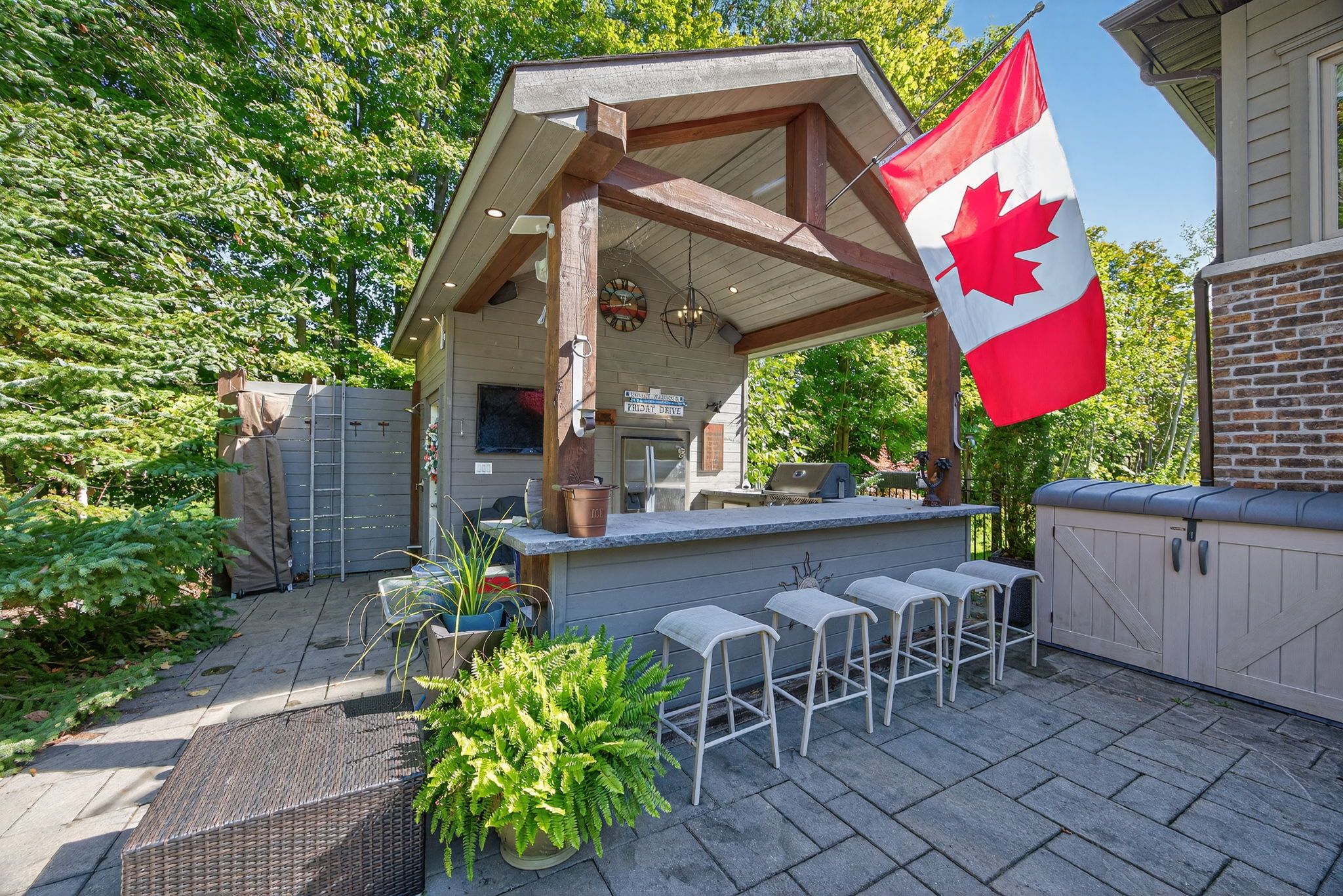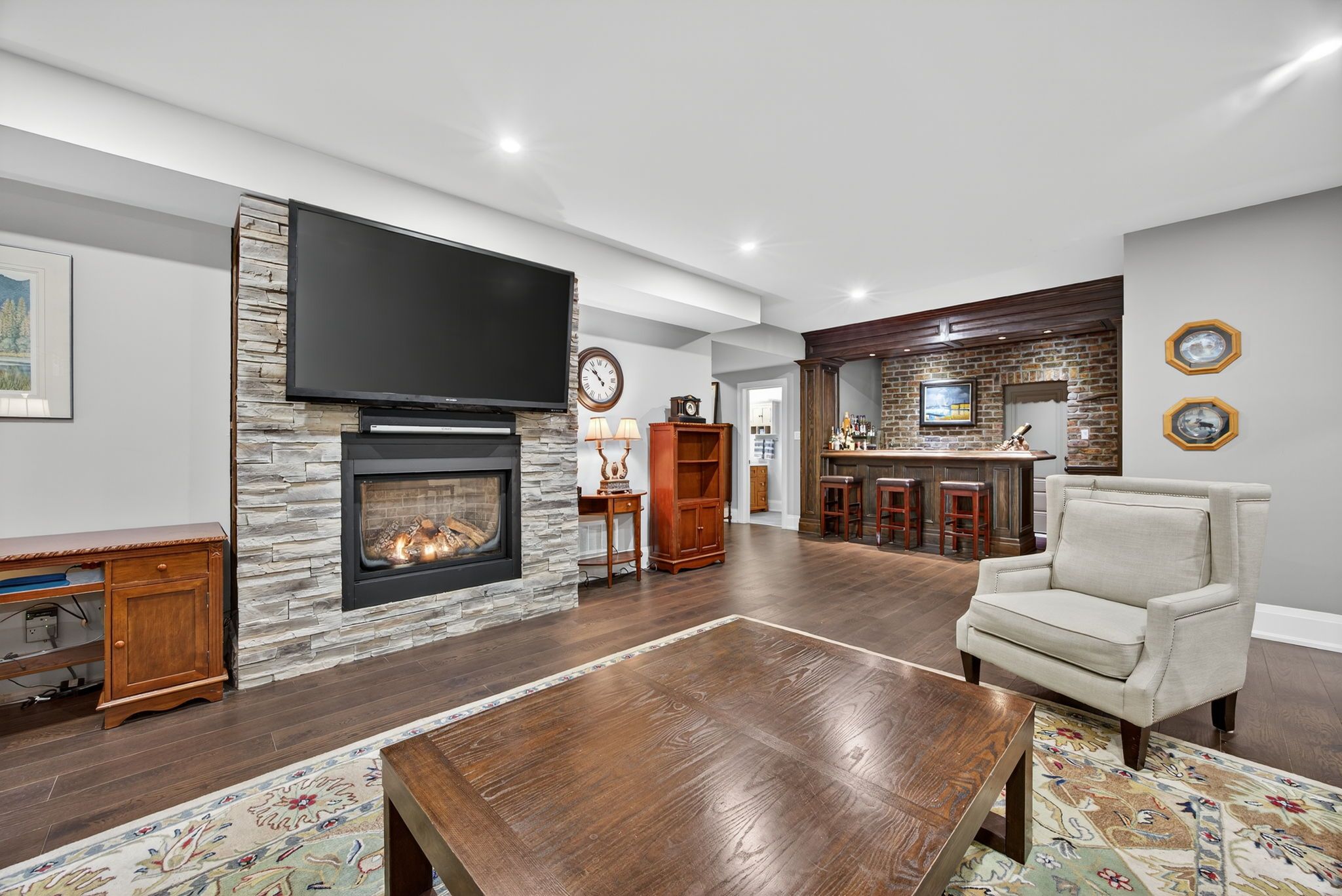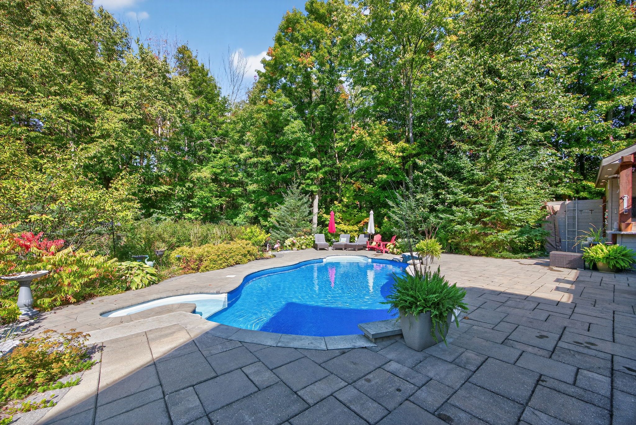 Experience executive estate living at its finest! Discover a community where luxury meets lifestyle. Nestled in a serene natural setting, this exclusive executive estate neighborhood offers the perfect balance of tranquility & convenience. Stroll along picturesque walking trails, cycle through scenic landscapes,or spend your afternoons golfing on nearby courses. The lake is just steps away,enjoy paddle boarding,kayaking,or simply soaking in the peaceful waterfront. This is more than just a home, its a lifestyle! This executive custom built home was featured in two "hallmark movies". Stunning 5 bedroom, 4 bath bungalow with a walk out basement & separate in-law suite. Many great exterior features :upper & lower garages, high end stone/granite/wood,resort style backyard w/double kidney shaped pool/waterfalls/hot tub/fire pit/new pool liner & cover 2025,prof. Landscaped w/inground lighting & garden paths, cabana w/outdoor kitchen w/fridge/sink/napoleon propane bbq/outdoor shower,inground irrigation system,terraced 3 season muskoka room w/woodburning fireplace & slate tiles,garden shed, extended driveway pad, new ac 2025 ++ the main level is open concept w/high ceilings, chef's kitchen w/sub zero fridge & aga european stove/dishwasher/built in microwave/premium surface "black cosmic"granite tops, custom built-in table bench,expansive 20' stone wood burning fireplace w/designer mantel, primary bedroom w/coffered ceiling & luxury ensuite/large spa soaker tub/ shower/oversized walk-in closet, formal dining room, main floor laundry w/built in storage bench, smart home/sonos built-in sound system interior & exterior, 10' ceilings/20' ceiling in great room, 7 stage water filtration system, smart climate control,custom window covering+ lower level is fully finished walkout/private garden in-law suite,custom kitchen w/granite/2 bedrooms/built in laundry/custom bar & cantina/pool table/propane high efficiency fireplace/9'ceilings w/large windows & patio doors/3 car garage ++