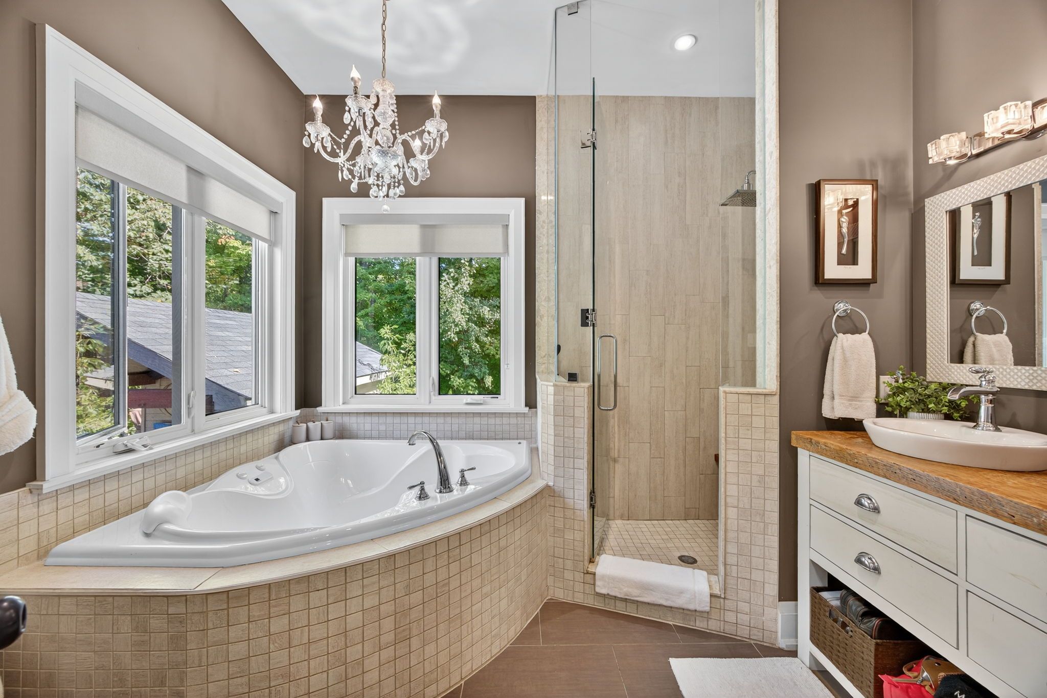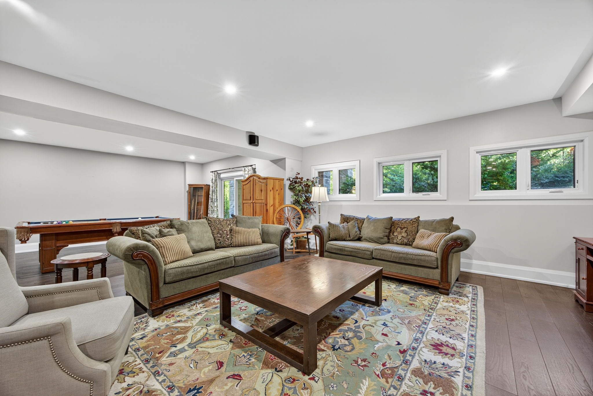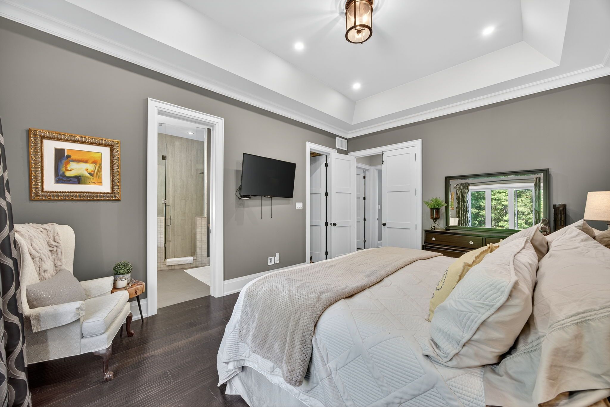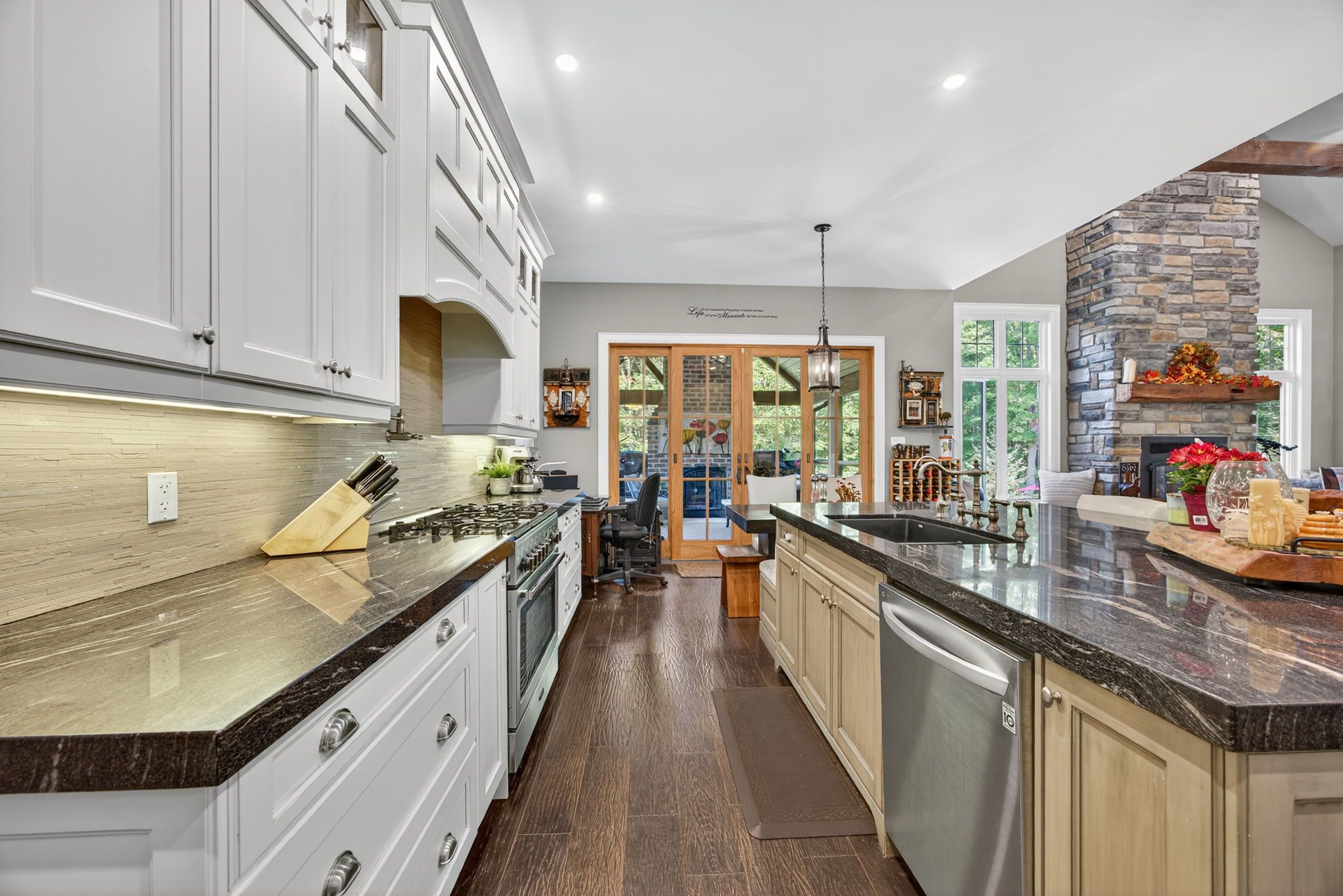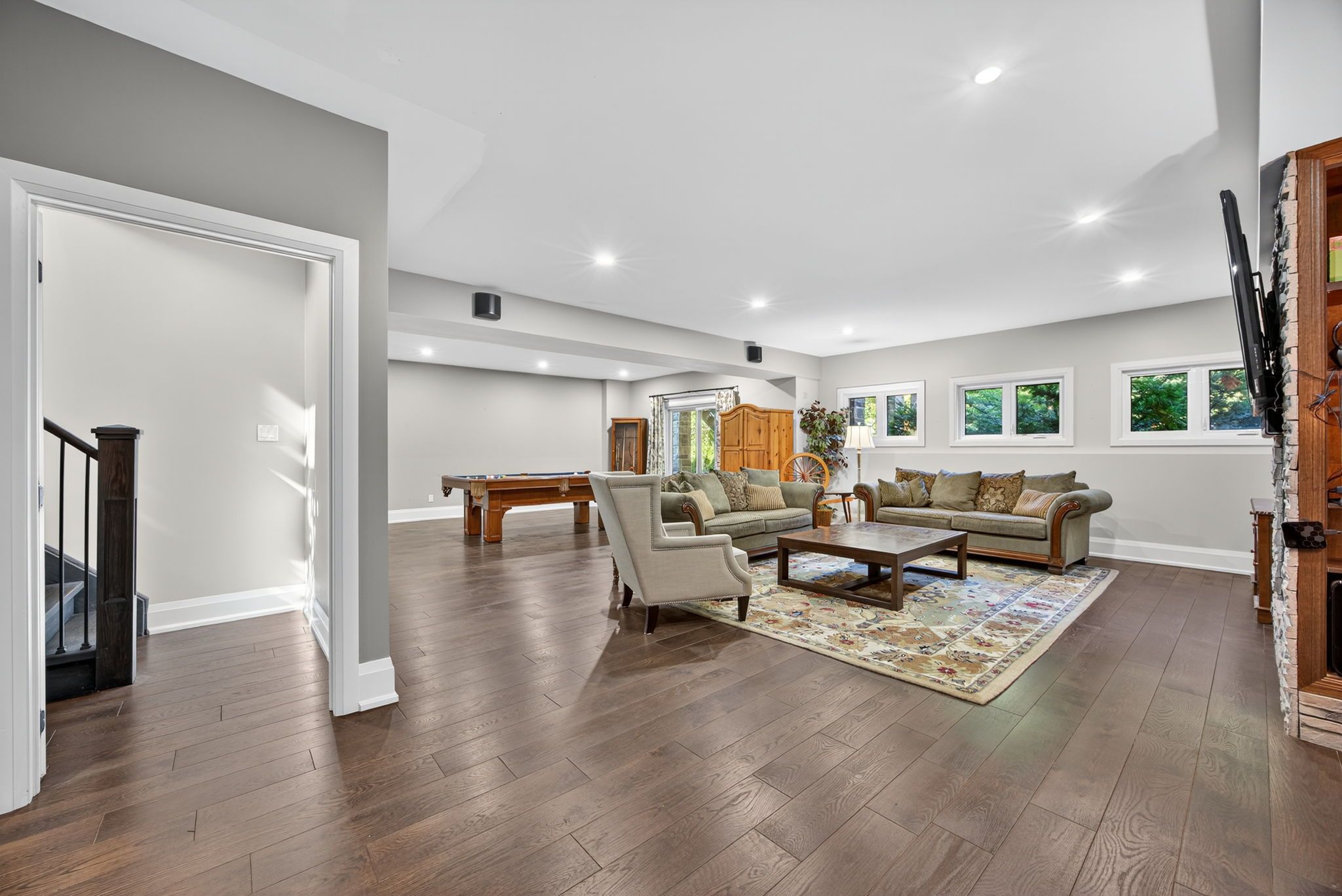 Experience executive estate living at its finest! Discover a community where luxury meets lifestyle. Nestled in a serene natural setting, this exclusive executive estate neighborhood offers the perfect balance of tranquility & convenience. Stroll along picturesque walking trails, cycle through scenic landscapes,or spend your afternoons golfing on nearby courses. The lake is just steps away,enjoy paddle boarding,kayaking,or simply soaking in the peaceful waterfront. This is more than just a home, its a lifestyle! This executive custom built home was featured in two "hallmark movies". Stunning 5 bedroom, 4 bath bungalow with a walk out basement & separate in-law suite. Many great exterior features :upper & lower garages, high end stone/granite/wood,resort style backyard w/double kidney shaped pool/waterfalls/hot tub/fire pit/new pool liner & cover 2025,prof. Landscaped w/inground lighting & garden paths, cabana w/outdoor kitchen w/fridge/sink/napoleon propane bbq/outdoor shower,inground irrigation system,terraced 3 season muskoka room w/woodburning fireplace & slate tiles,garden shed, extended driveway pad, new ac 2025 ++ the main level is open concept w/high ceilings, chef's kitchen w/sub zero fridge & aga european stove/dishwasher/built in microwave/premium surface "black cosmic"granite tops, custom built-in table bench,expansive 20' stone wood burning fireplace w/designer mantel, primary bedroom w/coffered ceiling & luxury ensuite/large spa soaker tub/ shower/oversized walk-in closet, formal dining room, main floor laundry w/built in storage bench, smart home/sonos built-in sound system interior & exterior, 10' ceilings/20' ceiling in great room, 7 stage water filtration system, smart climate control,custom window covering+ lower level is fully finished walkout/private garden in-law suite,custom kitchen w/granite/2 bedrooms/built in laundry/custom bar & cantina/pool table/propane high efficiency fireplace/9'ceilings w/large windows & patio doors/3 car garage ++