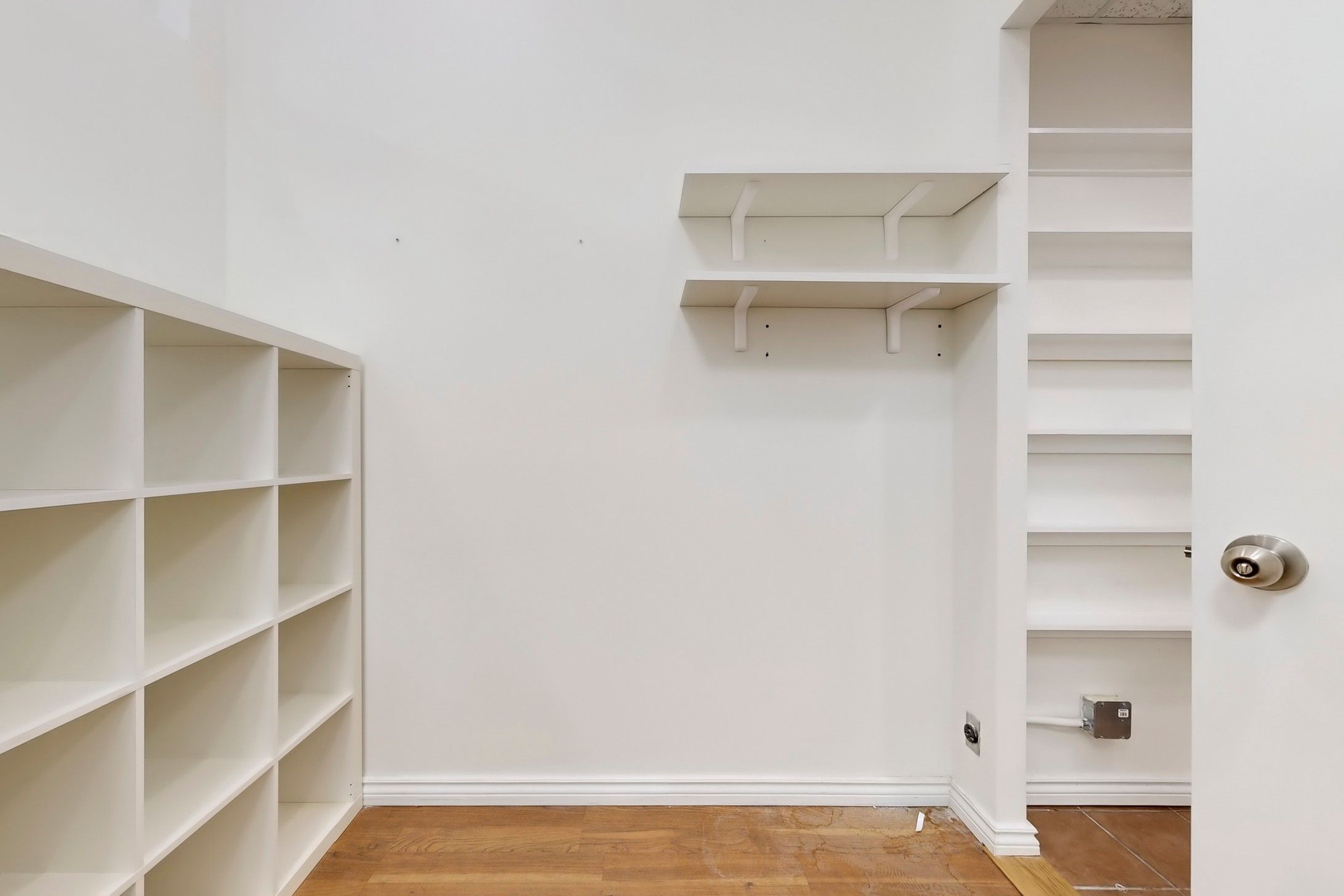 • Modern washroom and welcoming waiting area with built-in cabinets.
