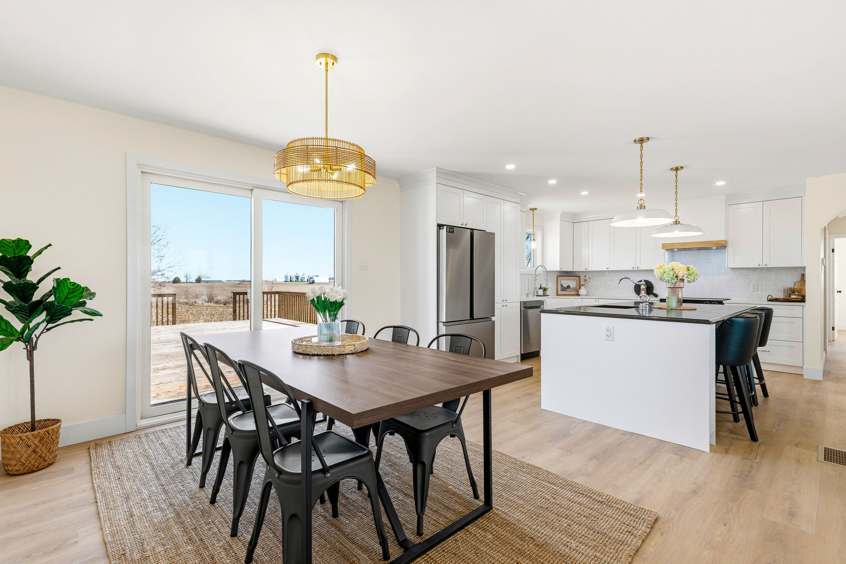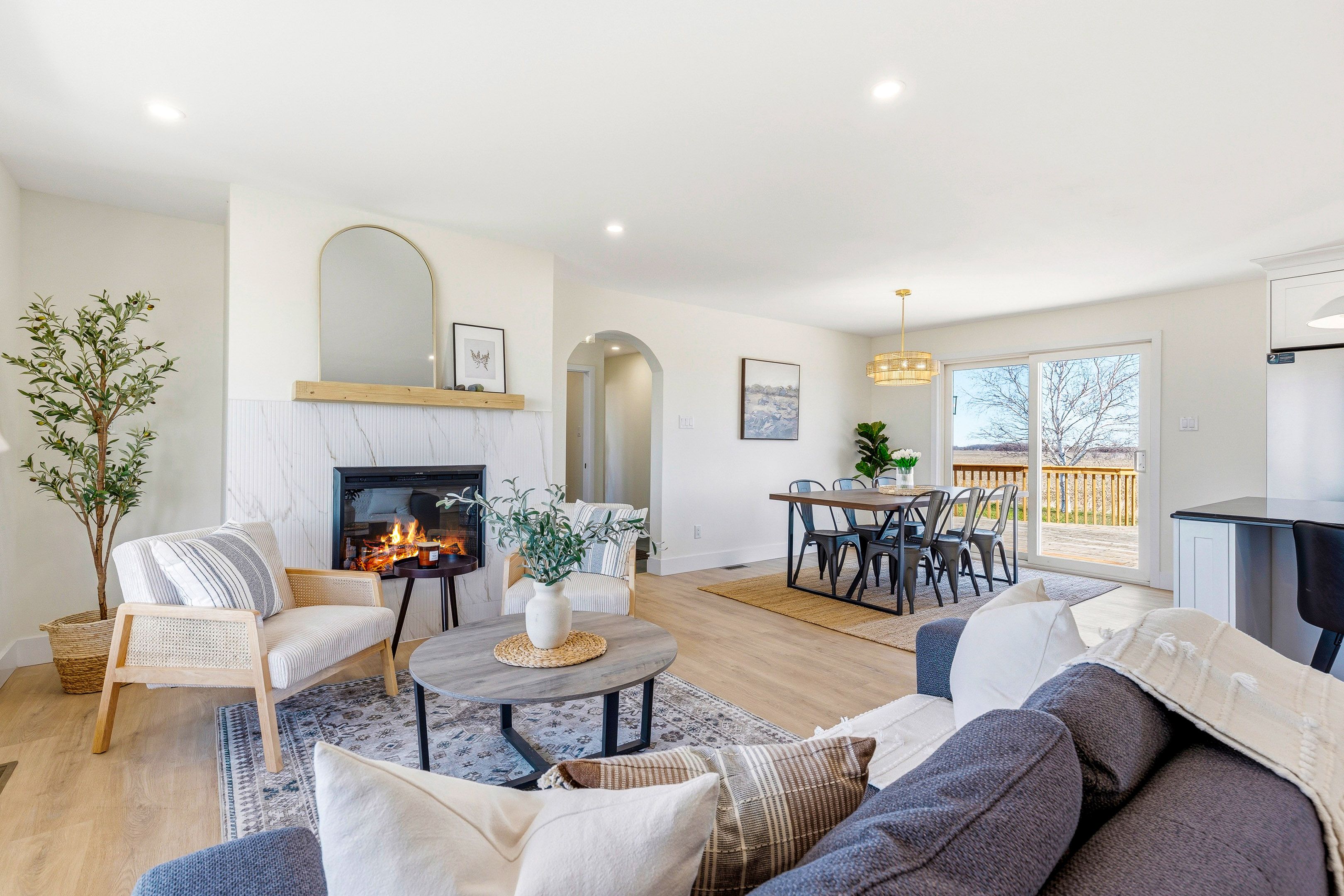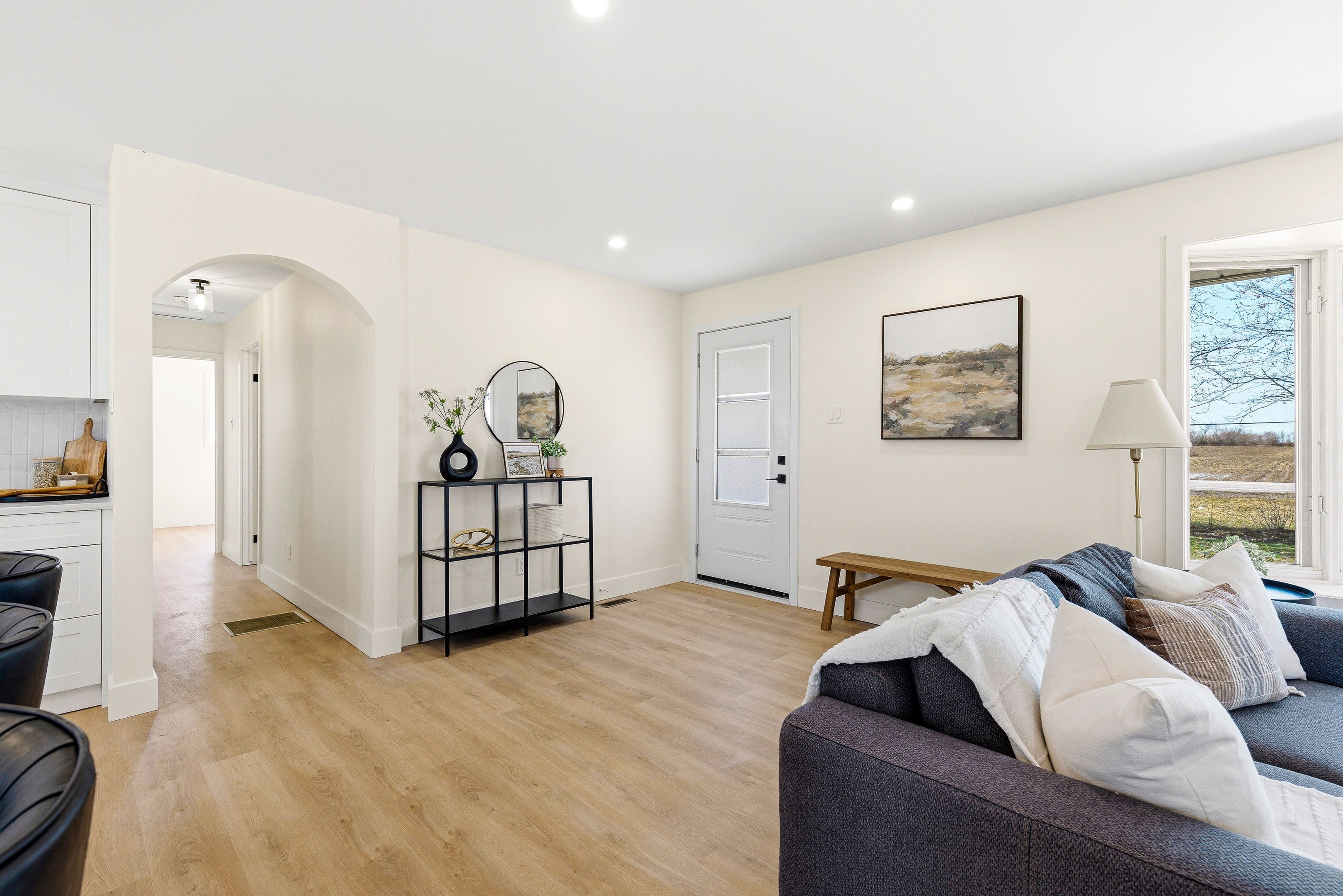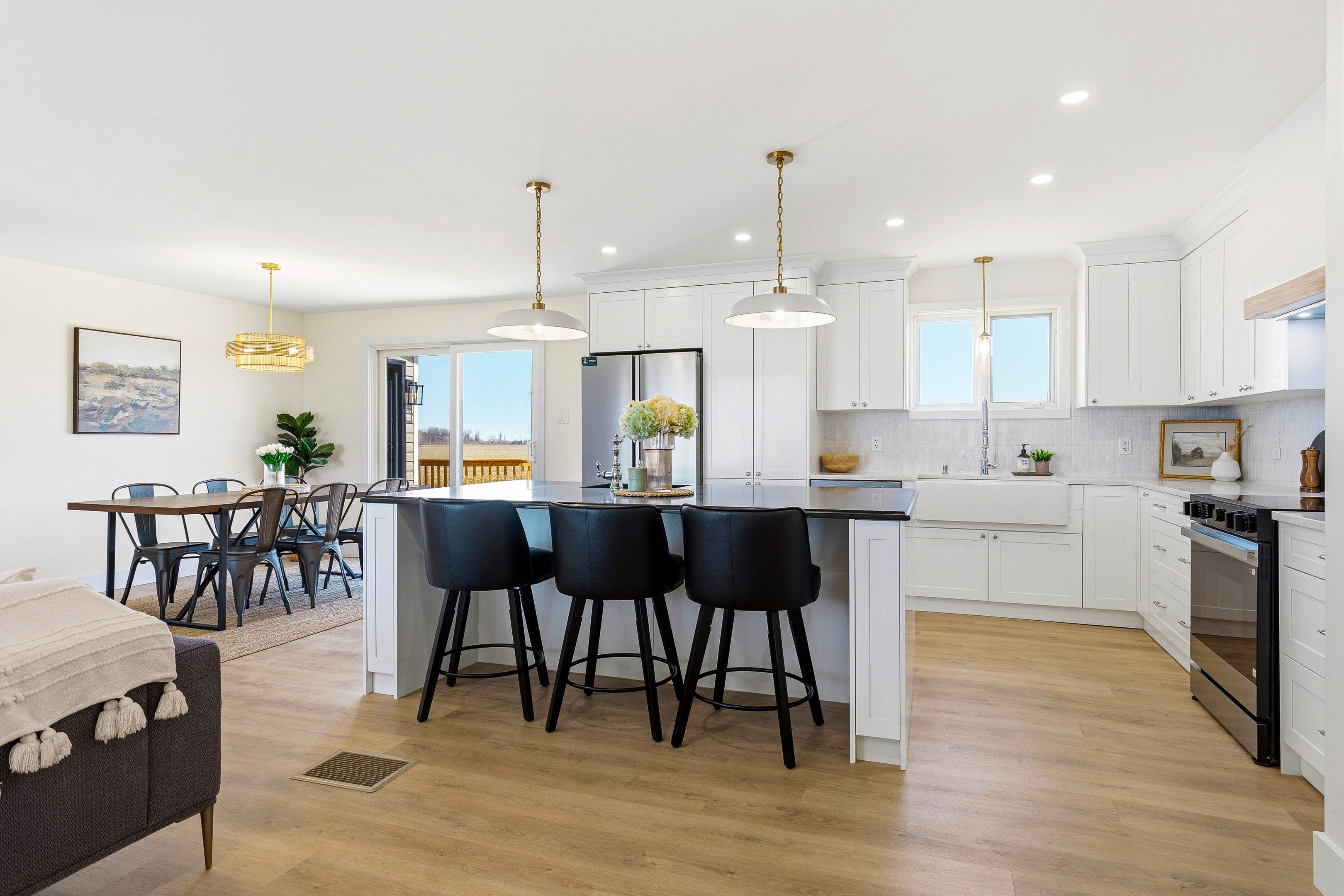 Welcome to this massive bungalow offering nearly 3,000 sq ft of meticulously finished living space just minutes from the village of winchester. This move-in-ready home perfectly blends modern luxury with rural living on a half-acre lot surrounded by farmland views, all within a convenient commute to ottawa. The thoughtful layout begins in a large foyer that grants access to a private primary suite wing, a large entryway closet, the backyard, and a lower level designed for ultimate flexibility (such as an in-law suite or guest accommodations!). The primary suite is privately tucked away in its own wing, featuring an oversized bedroom with ample closet space and a 3pc ensuite. The heart of the home is an expansive open-concept living, dining, and kitchen area featuring premium finishes. The chef's kitchen is a showpiece, boasting white cabinetry, quartz countertops, an apron-front sink with a backyard view, and a large island with a secondary prep sink and seating. The living room is anchored by a sophisticated electric fireplace statement piece, while the dining area offers seamless access to the back deck. 3 additional generous bedrooms and a 4pc bath with integrated laundry complete the main level. The lower level offers an incredible secondary suite or guest retreat with its own separate entrance off the back deck. It features a full second kitchen with a fun cup wash station for those bar enthusiasts, a spacious rec room, a family room, a 4pc bath with laundry, and 3 flex spaces perfect for additional bedrooms, an office, or a den. Outside, the property is an entertainer's dream with a large deck (ready for a new pool!), fire pit, and a detached garage. This home truly is a must-see to fully appreciate the expansive floor plan and incredible attention to detail throughout. Experience the quality for yourself by exploring the virtual tour or scheduling a private showing today. Just turn the key and welcome home!