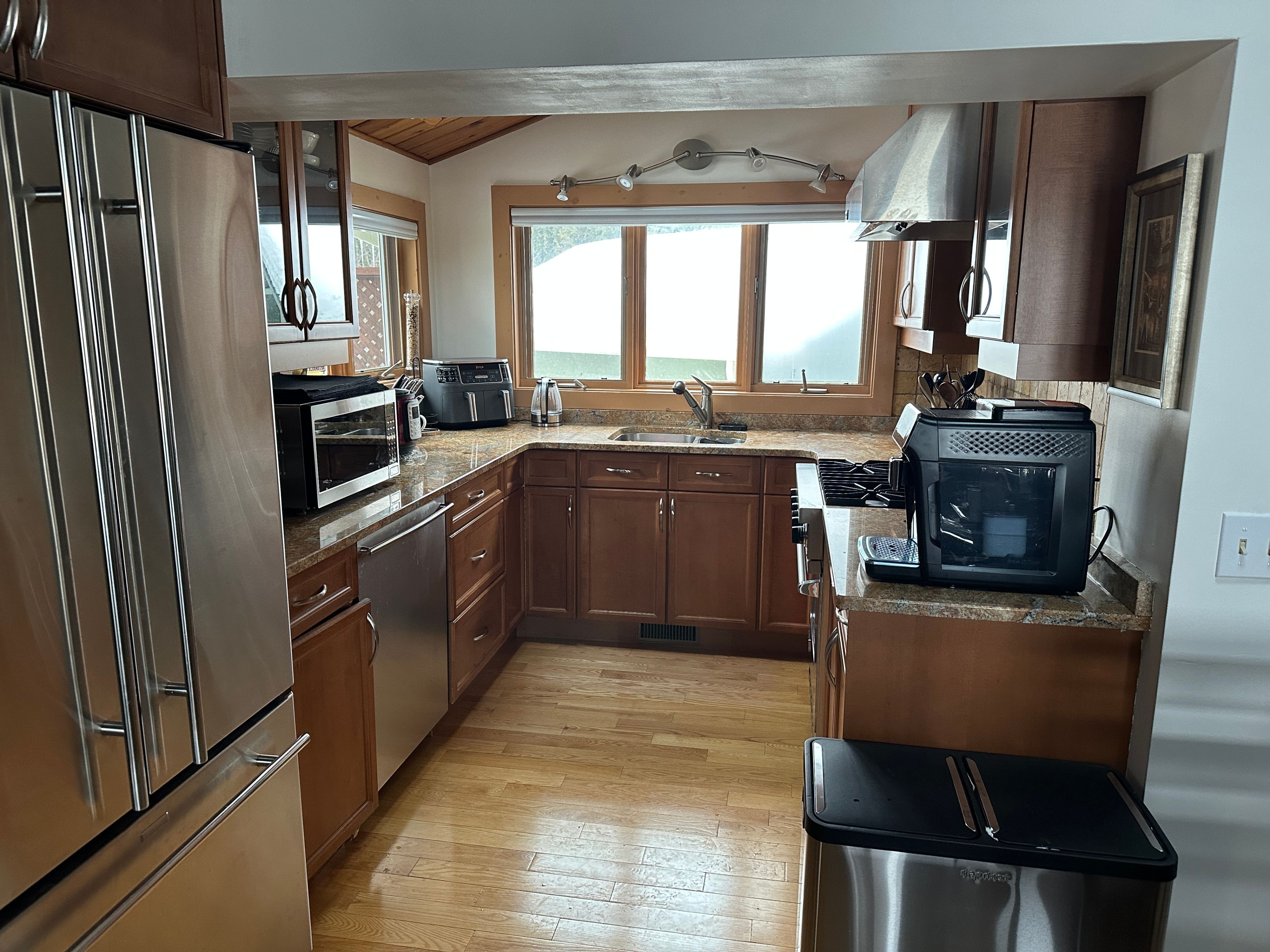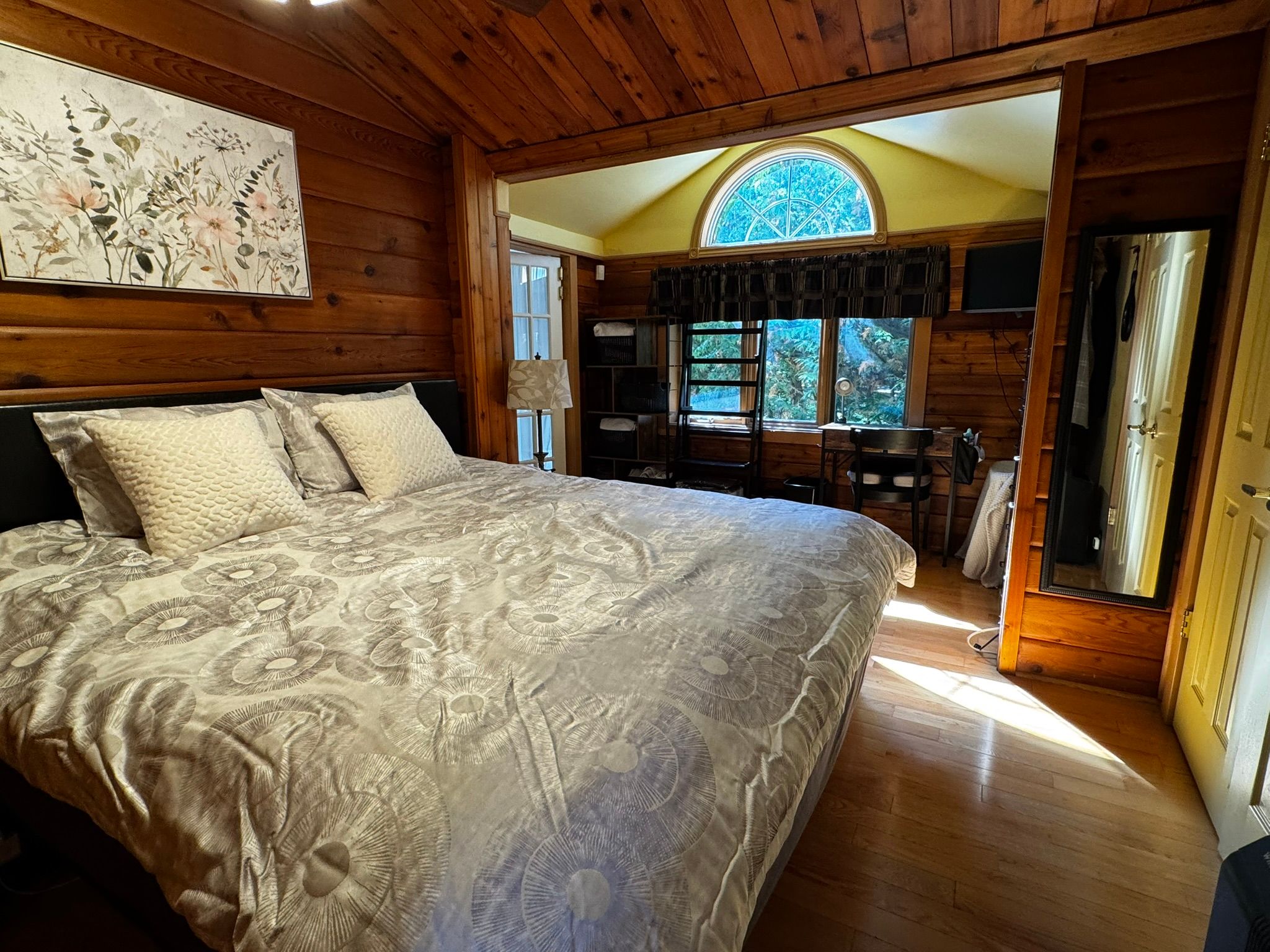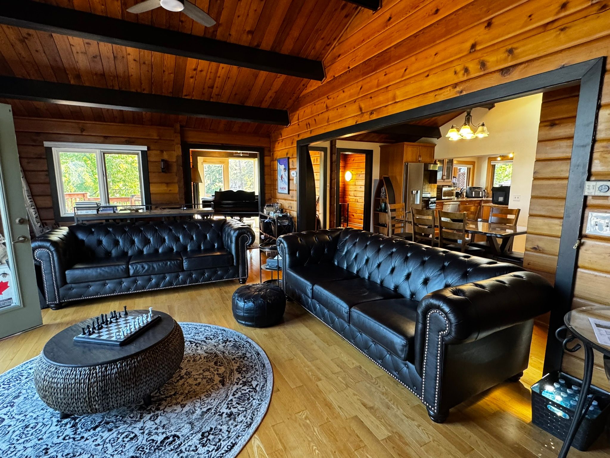 Location! Location! Location! This beautiful and well-maintained four-season chalet is directly across from northwinds beach and the georgian trail, and only 5 minutes from the ski hills at blue mountain. With stunning views of georgian bay and quick access to local ski clubs, it offers the perfect balance of beach and mountain living. Featuring over 2,500 sq ft of living space, 3+1 bedrooms, and 3 bathrooms, this home is designed for family and guests year-round. The backyard is an entertainers dream with a large deck, cedar hot tub, basketball court, golf greens, bbq, and fire pit. Recent updates include a new roof (2022), energy-efficient heat pump (2023), new fence (2023), solar panels (2024) for potential free hydro, and a generac generator. Inside, the main floor exudes log cabin charm with hardwood floors, soaring ceilings, exposed beams, and oversized windows that flood the rooms with natural light. The living room features a cozy gas fireplace with water views, while the dining area and bright winterized sunroom continue the rustic chalet feel. The finished ground-level offers a family room, second fireplace, guest bedroom, and large mudroom with direct driveway access - ideal for ski gear. A full permit to build a carport is included. Move-in ready and full of character, this chalet is your opportunity to enjoy the very best of blue mountain and georgian bay living all year long. Furniture may be negotiable.
