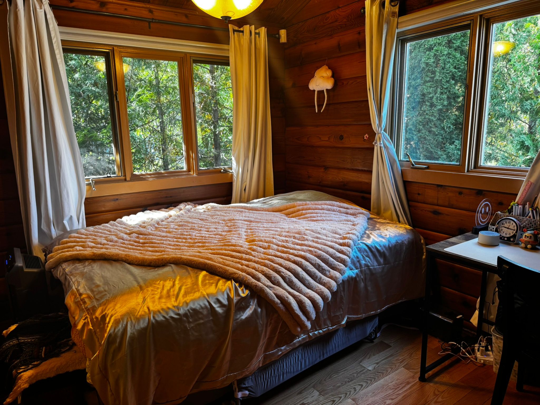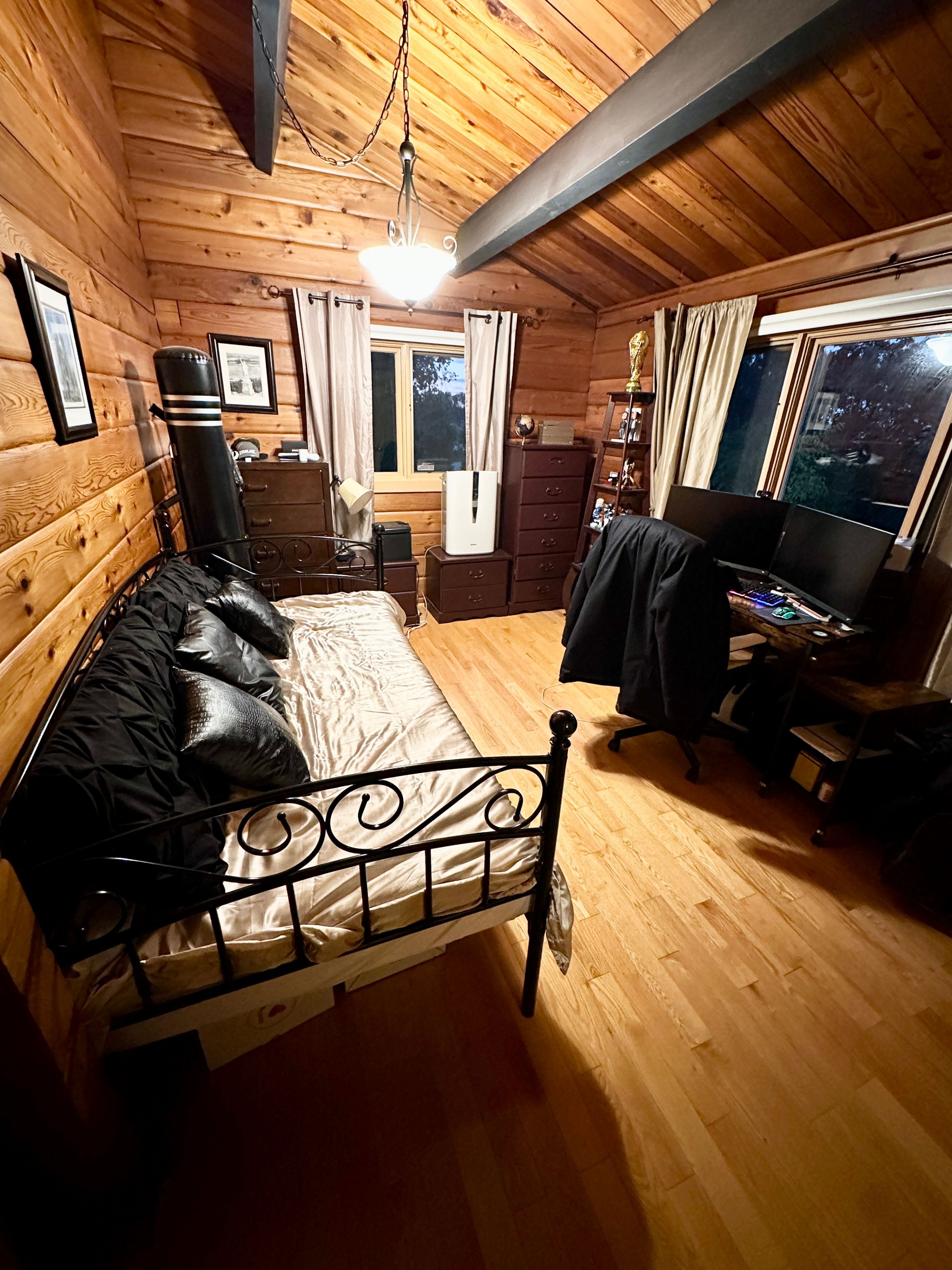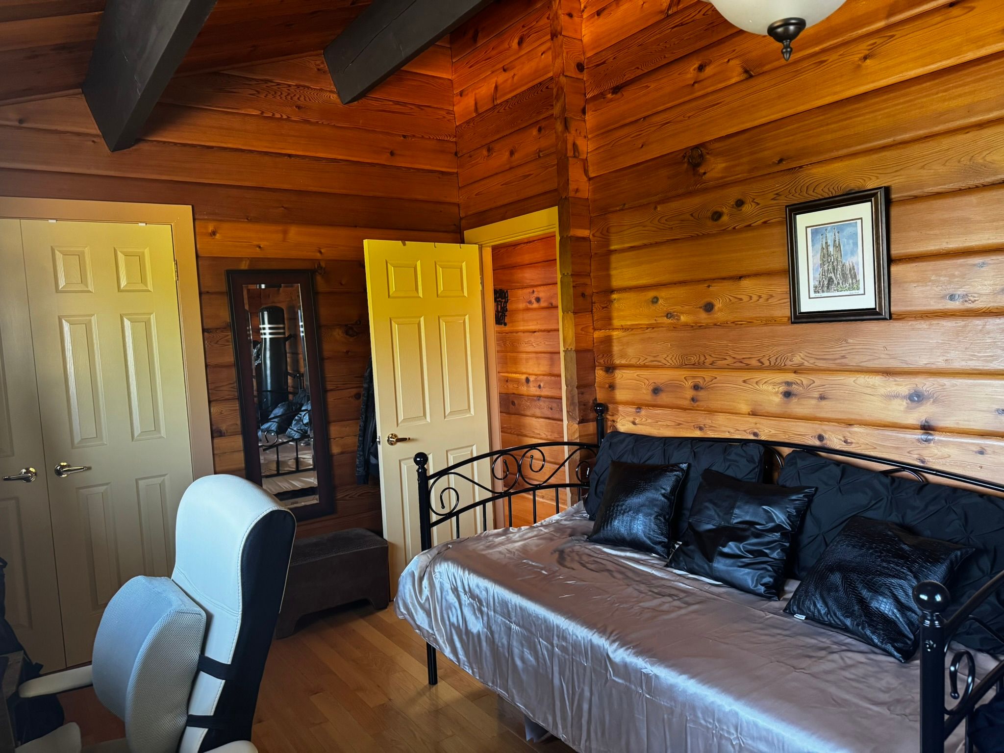 Location! Location! Location! This beautiful and well-maintained four-season chalet is directly across from northwinds beach and the georgian trail, and only 5 minutes from the ski hills at blue mountain. With stunning views of georgian bay and quick access to local ski clubs, it offers the perfect balance of beach and mountain living. Featuring over 2,500 sq ft of living space, 3+1 bedrooms, and 3 bathrooms, this home is designed for family and guests year-round. The backyard is an entertainers dream with a large deck, cedar hot tub, basketball court, golf greens, bbq, and fire pit. Recent updates include a new roof (2022), energy-efficient heat pump (2023), new fence (2023), solar panels (2024) for potential free hydro, and a generac generator. Inside, the main floor exudes log cabin charm with hardwood floors, soaring ceilings, exposed beams, and oversized windows that flood the rooms with natural light. The living room features a cozy gas fireplace with water views, while the dining area and bright winterized sunroom continue the rustic chalet feel. The finished ground-level offers a family room, second fireplace, guest bedroom, and large mudroom with direct driveway access - ideal for ski gear. A full permit to build a carport is included. Move-in ready and full of character, this chalet is your opportunity to enjoy the very best of blue mountain and georgian bay living all year long. Furniture may be negotiable.