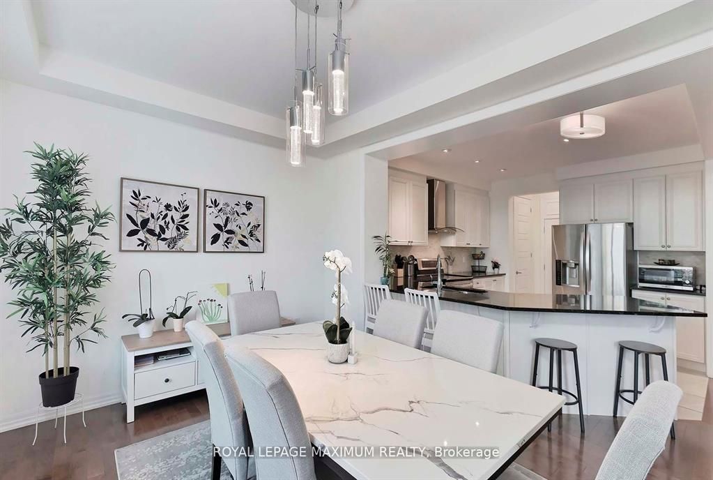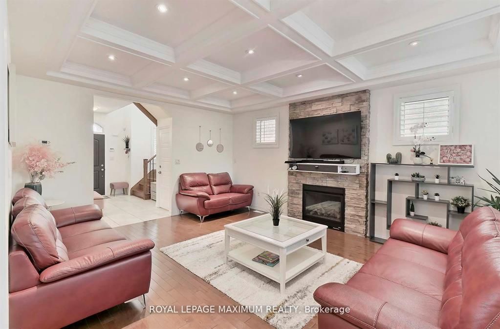 Welcome to this stunning 3+1 bedroom home!! This meticulously well kept home presents a grand entrance with a beautiful door, a feature stone wall with a fireplace, and coffered ceilings, open concept design boasts a modern white kitchen with quartz countertop, 2 pantries! The dining area overlooks the walkout to a roof covered patio where you can enjoy the elegant curb appeal entertaining with friends and family. A walkout to the garage from the kitchen, hardwood floors, 2nd floor laundry, primary bedroom has a walk in closet and ensuite, 2nd bedroom has a w/i closet, pot lights, wrought iron spindle railing, wooden staircase, california shutters throughout, roof replaced & upgraded (2025), window covering newly re a gorgeous basement fully equipped with kitchen, bathroom, separate entrance with laundry.