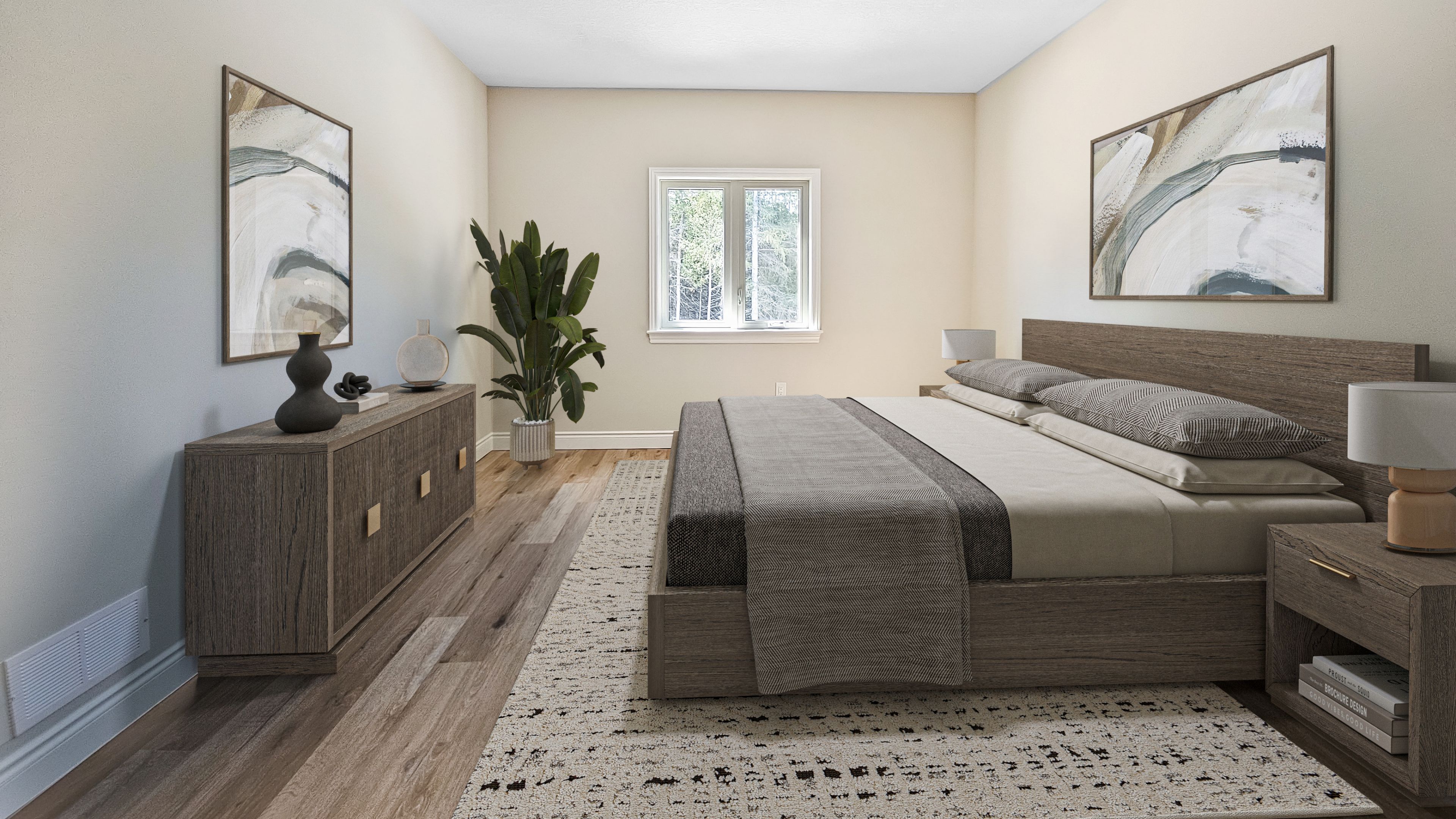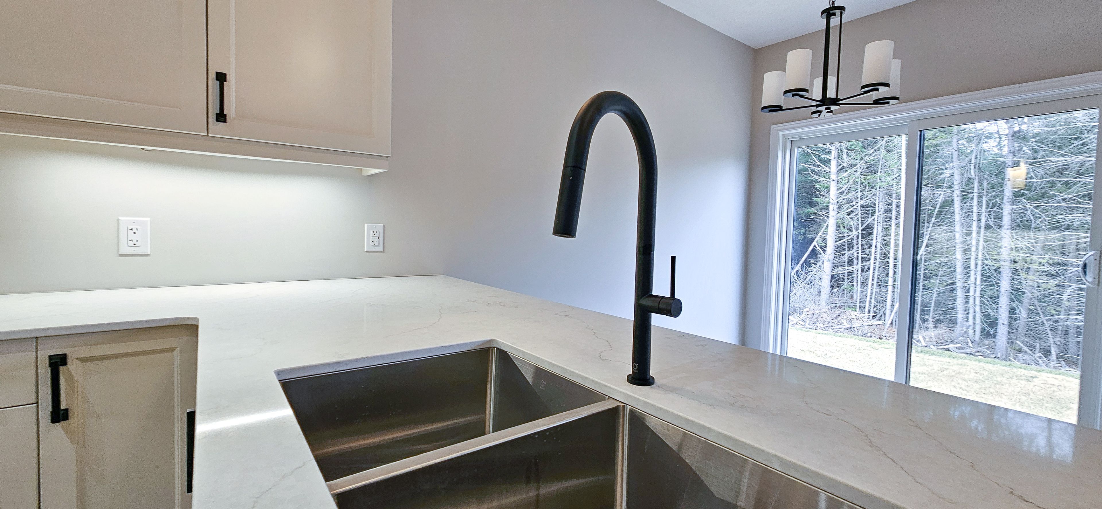 • Modern kitchen with quartz countertops and upgraded cabinets for functionality.