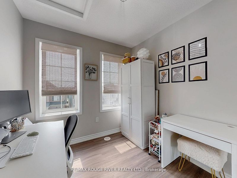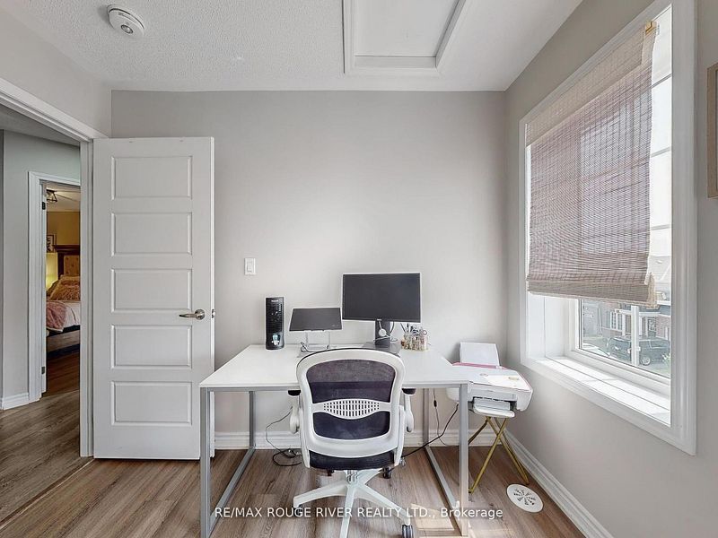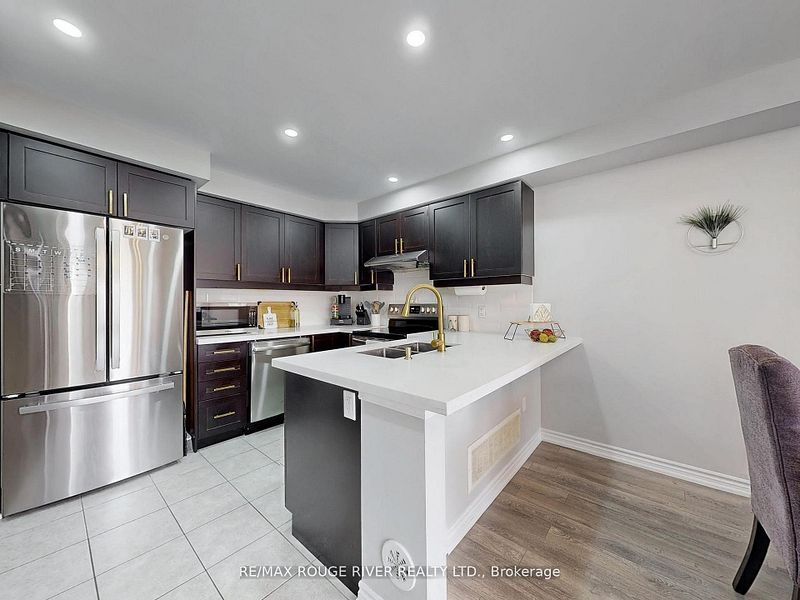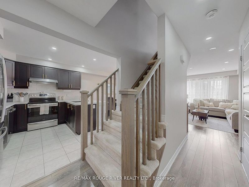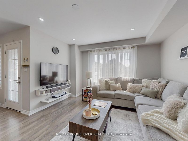 Welcome to this immaculate three storey freehold townhome in milton's hawthorne south enclave. All brick exterior with coveted three parking. This bright, beautifully maintained home offers 3 bedrooms, 3 bathrooms, and a versatile main floor den with direct garage access. Laminate floors throughout. The second level features an open layout with ceiling pot lights, dining area walkout to spacious balcony and an elegant kitchen with stainless steel appliances, longer upgraded cabinets and a breakfast bar. Upstairs you will find three spacious bedrooms and two full baths. No sidewalk at front. Close to top schools, parks, trails, kelso conservation and many other amenities.