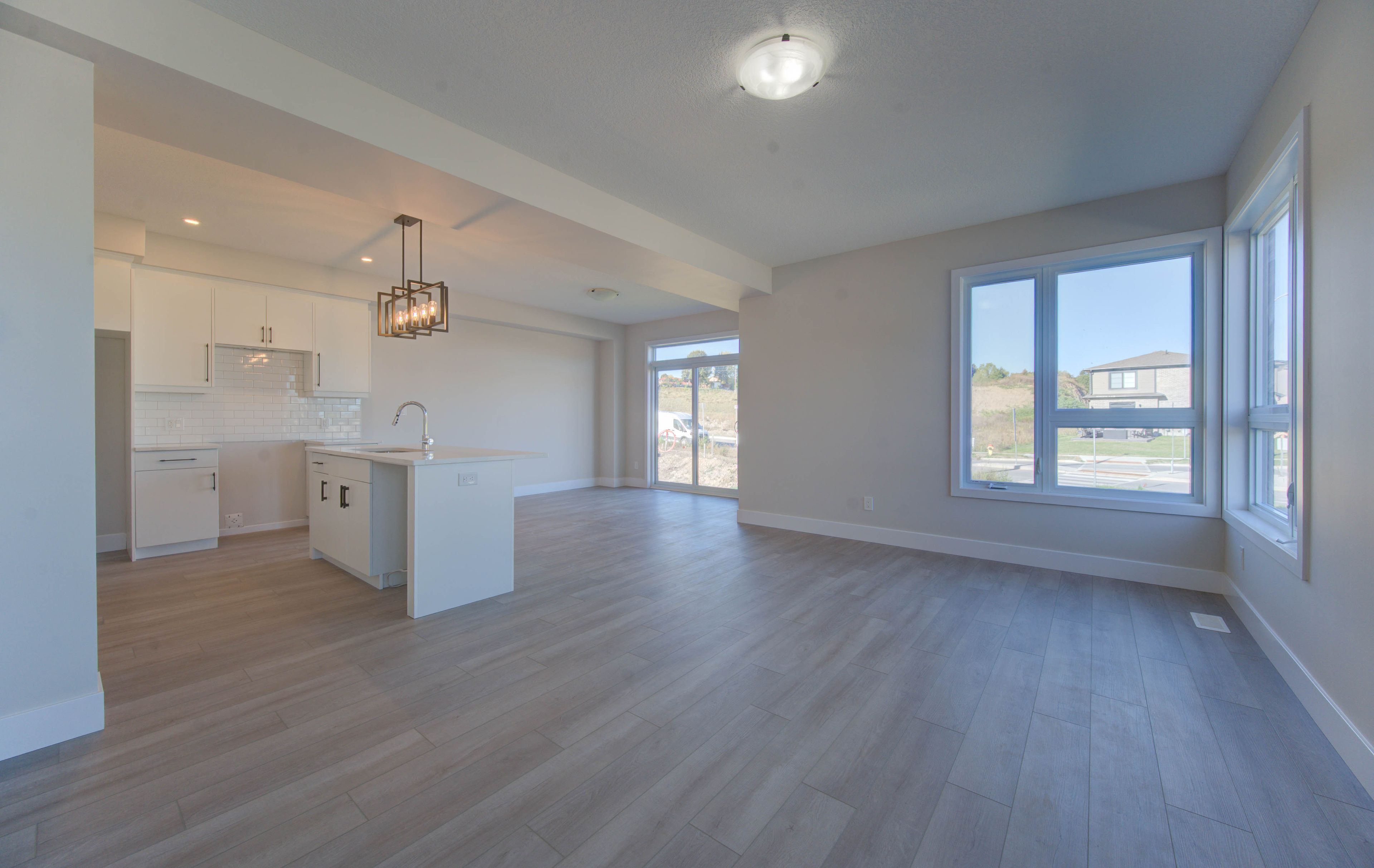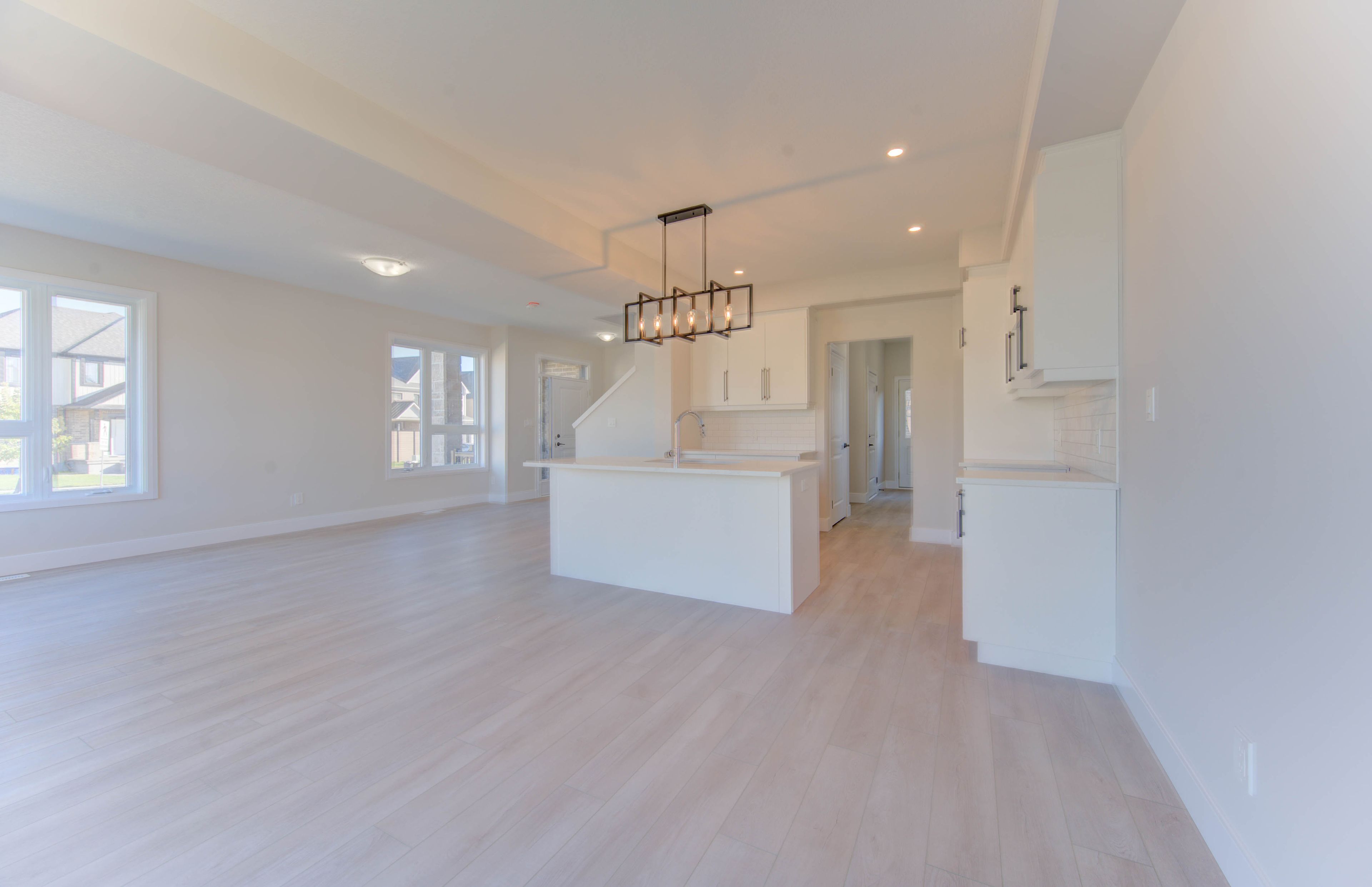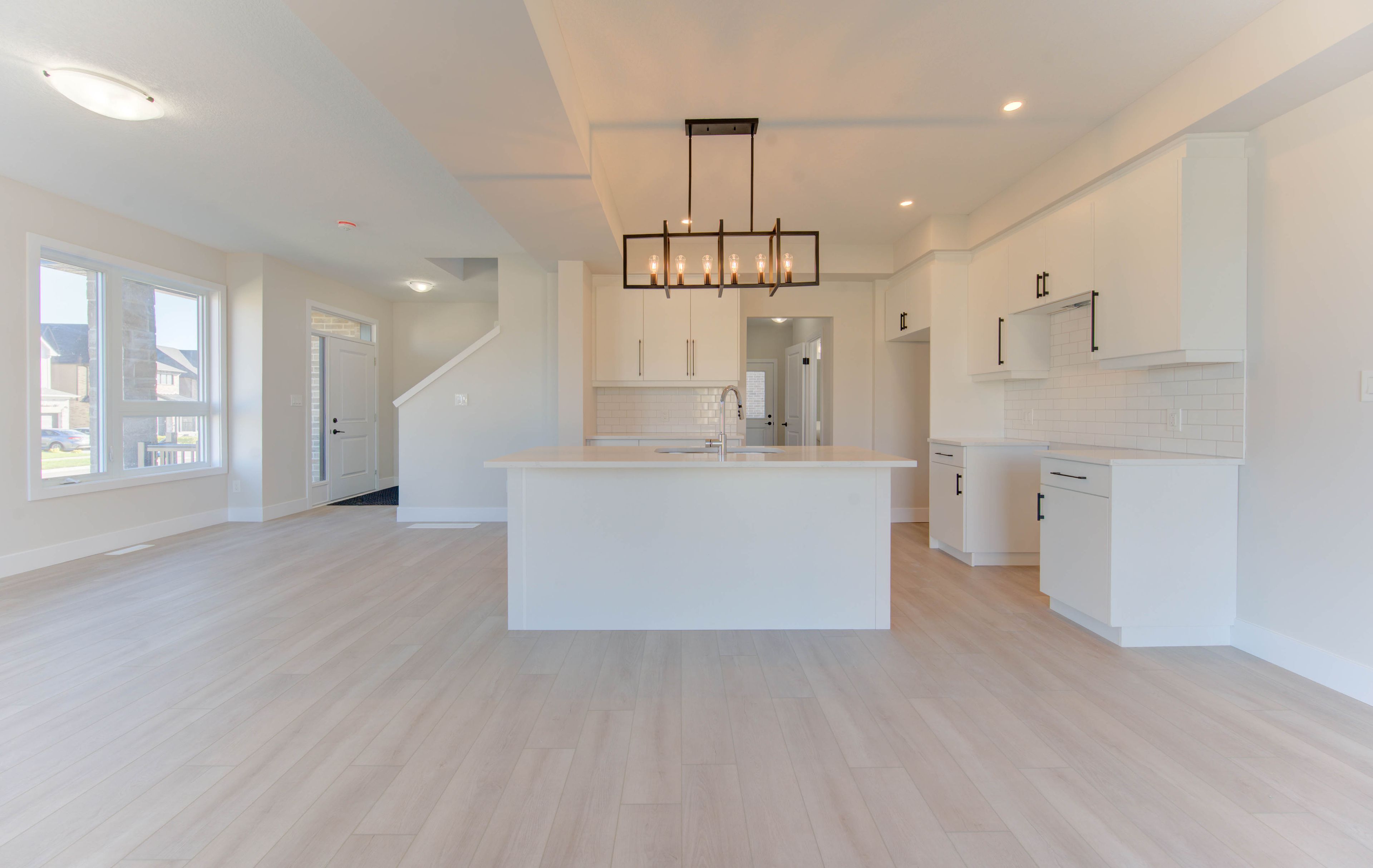 • Open-concept main floor with high ceilings and spacious kitchen.