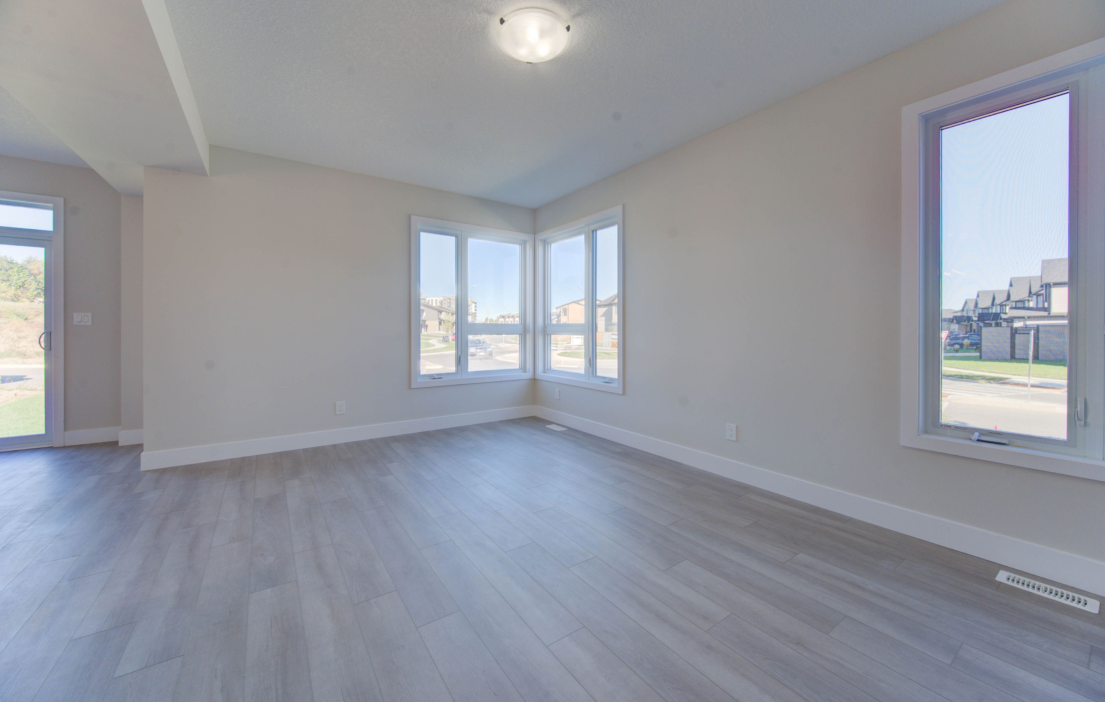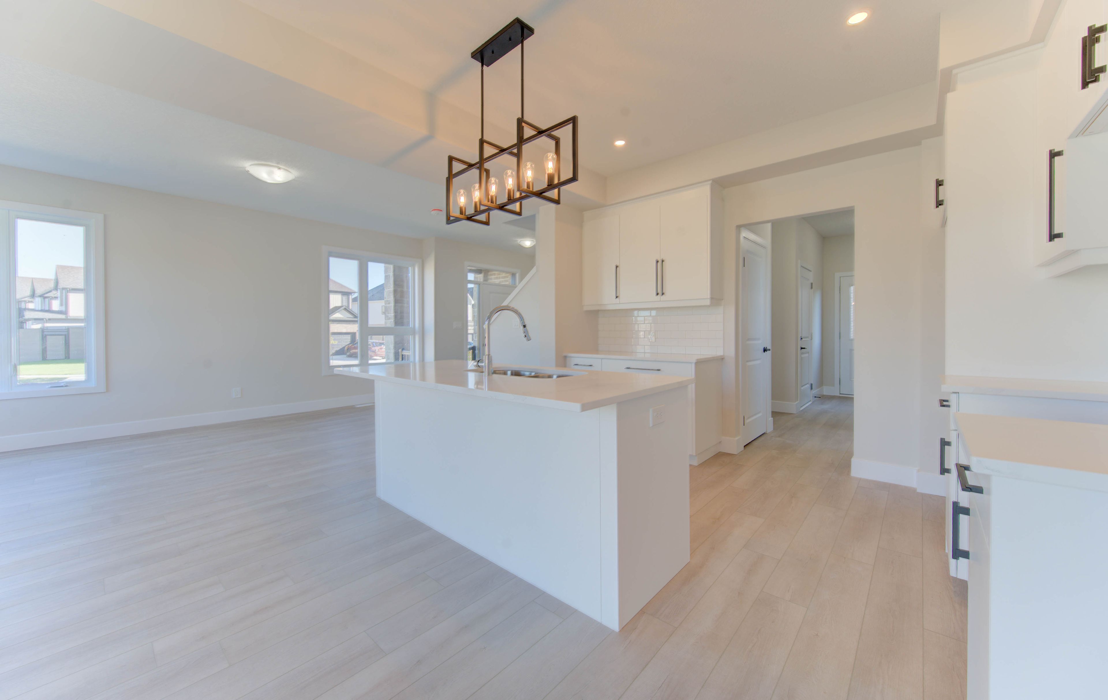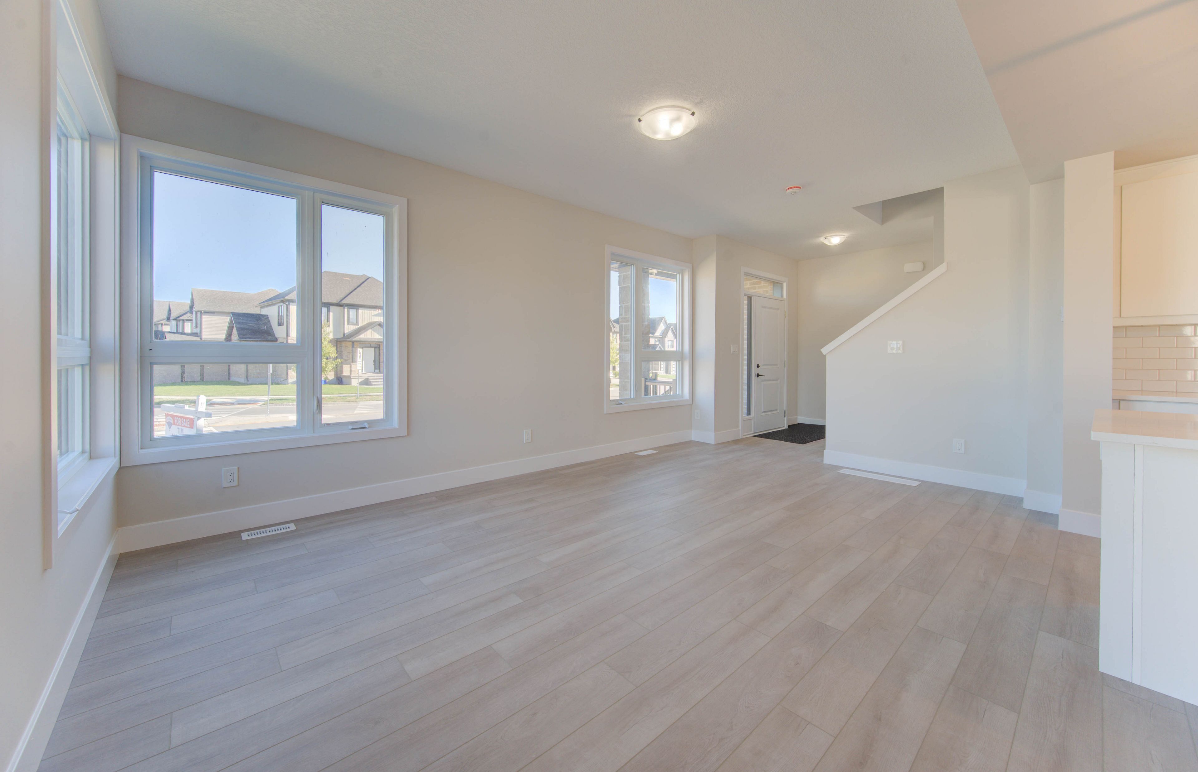• Open-concept main floor with high ceilings and spacious kitchen.