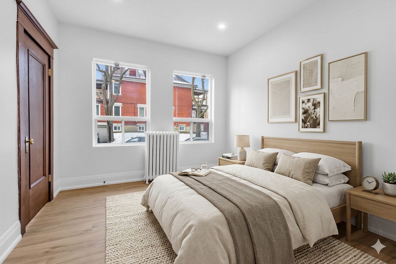• Two renovated bathrooms featuring a soaker tub and stylish finishes.