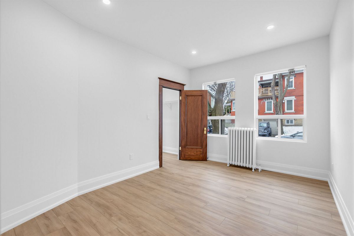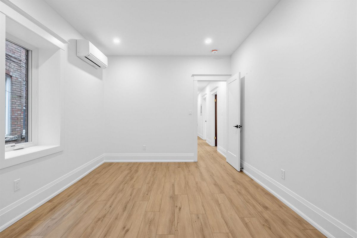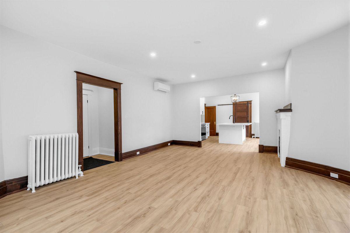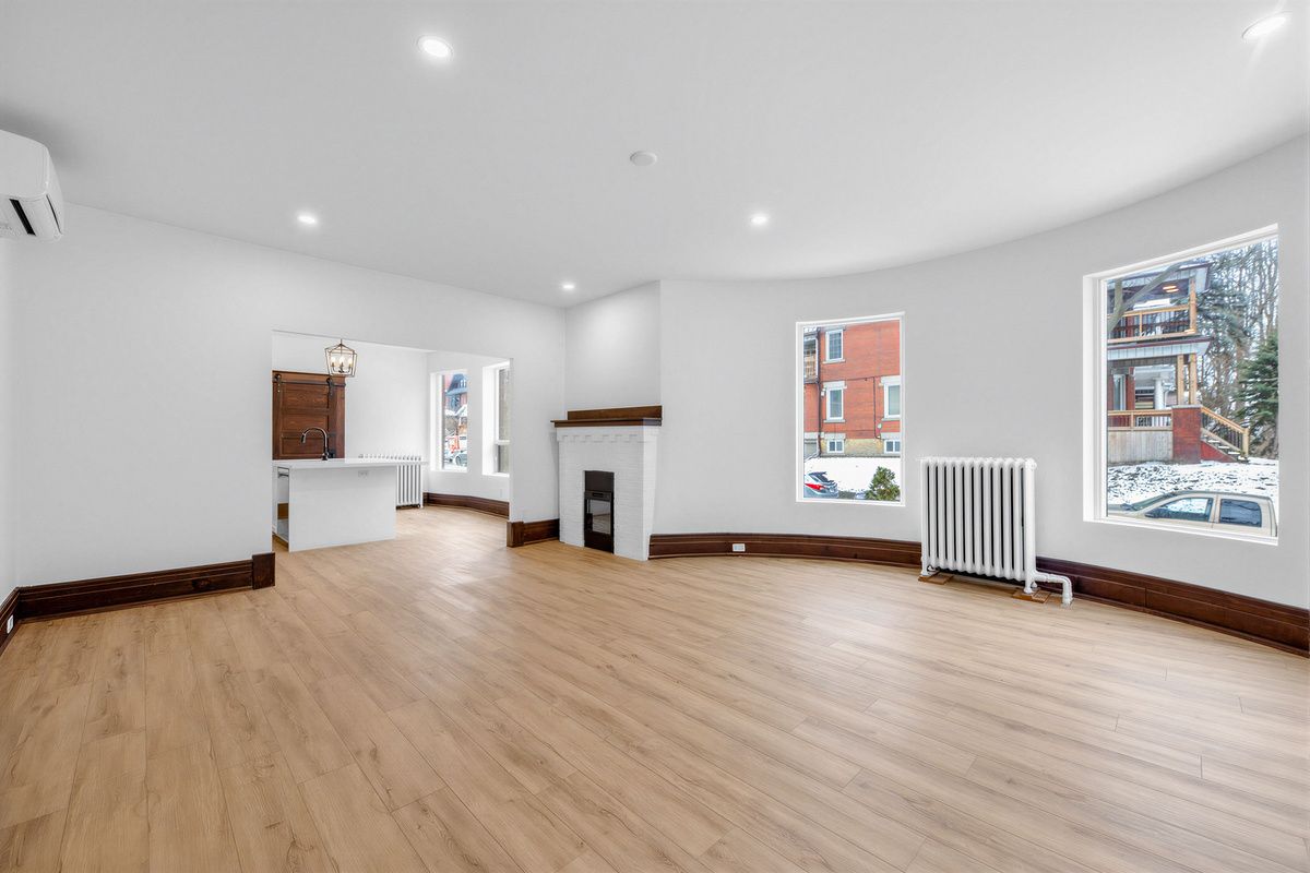 An exceptional opportunity to lease a beautifully renovated, 1,200 sq ft suite on the main floor of a character building on one of toronto's most coveted addresses - parkside drive, sitting directly across from the sweeping green expanse of high park. With three bedrooms, two bathrooms, soaring ceilings, and an abundance of natural light, this is the kind of space that simply doesn't come up at this price in this neighbourhood. The centrepiece is a spectacular curved living room rotunda - wraparound windows framing unobstructed treetop views of high park, rich wood baseboards, and a fireplace that makes this the kind of room you never want to leave. The chef's kitchen is equally impressive, featuring a large centre island, full-height shaker cabinetry, stainless steel appliances, subway tile backsplash, sliding barn door, and a statement pendant light over the breakfast area. Two beautifully renovated bathrooms - one with a deep soaker tub, one with a glass-enclosed shower, double vanity, and floor-to-ceiling tile - serve three well-proportioned bedrooms, two with walk-in closets. Wide-plank flooring and pot lights throughout. Long-term street parking available from the city for just $23/month. Steps to roncesvalles village, ttc, and sunnyside beach. A truly rare find.