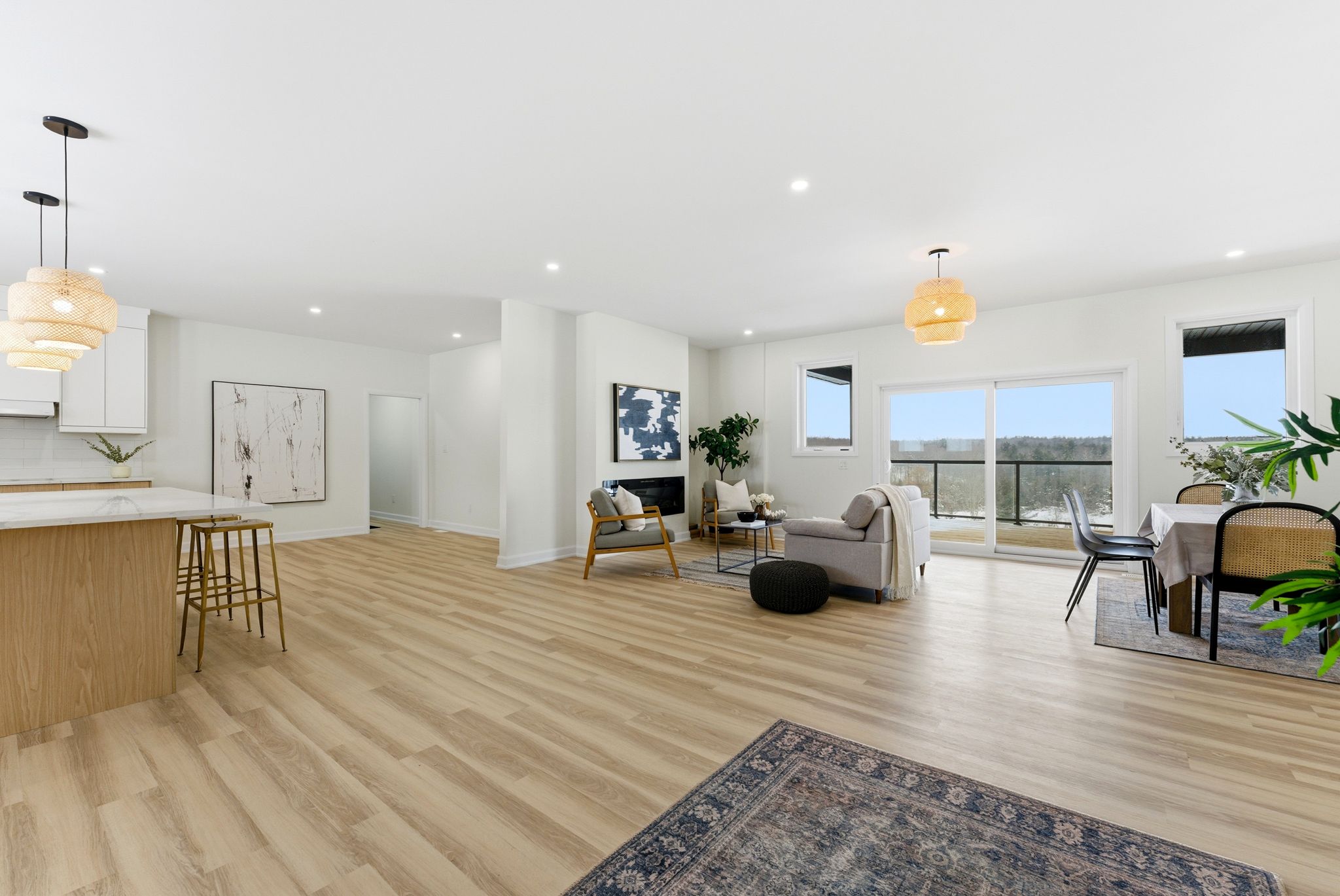 Welcome to 171 pine hill crescent, a custom bungalow set on over 3. 5 acres of private, scenic land in belleville. Built in 2024, this thoughtfully designed home offers a rare combination of modern luxury, expansive living space, and peaceful rural surrounding. From the moment you arrive, the setting impresses with panoramic views and mature trees. Inside, the main level features a bright, open-concept layout anchored by a stunning kitchen with sleek cabinetry, generous counter space, and an oversized island ideal for entertaining. The kitchen flows into the dining area and spacious living room, where large windows and a fireplace create a warm and inviting atmosphere while showcasing the beautiful natural views. The main floor is designed for both comfort and convenience, offering three well-appointed bedrooms including a spacious primary retreat complete with a walk-in closet and a private 4-piece ensuite. Two additional bedrooms are ideal for family, guests, or a home office, complemented by additional main-floor bathrooms and a practical laundry room. Downstairs, the fully finished lower level significantly expands the living space with a large recreation room, a fourth bedroom with a powder bath, and multiple bonus rooms. Featuring a separate living area offering a kitchen, living room with a fireplace, an additional bedroom, full bathroom, and laundry room, the basement functions as a self-contained living area while still remaining connected to the home, ideal for multi-generational living, extended family, or guests. Outside, the property invites you to enjoy the quiet beauty of the surroundings with space to relax, entertain, or simply take in the views. This is a rare opportunity to own a nearly new luxury home on a substantial acreage, offering privacy, quality craftsmanship, and versatile living options in a sought-after location. Whether you're looking for a refined family home or a peaceful retreat with room to grow, this property truly delivers it all.