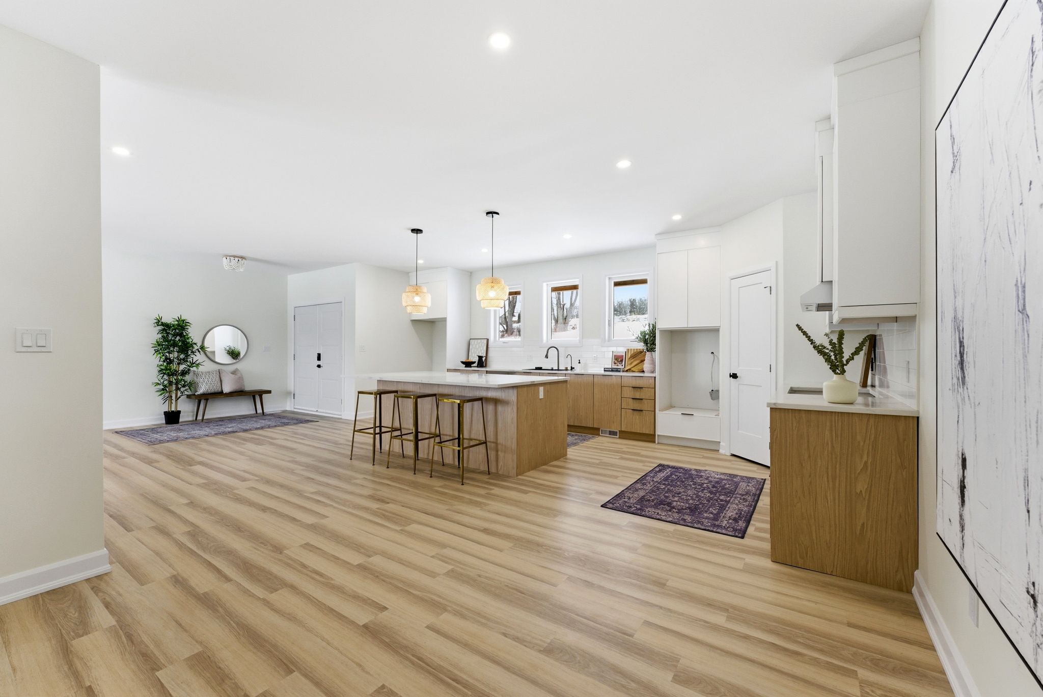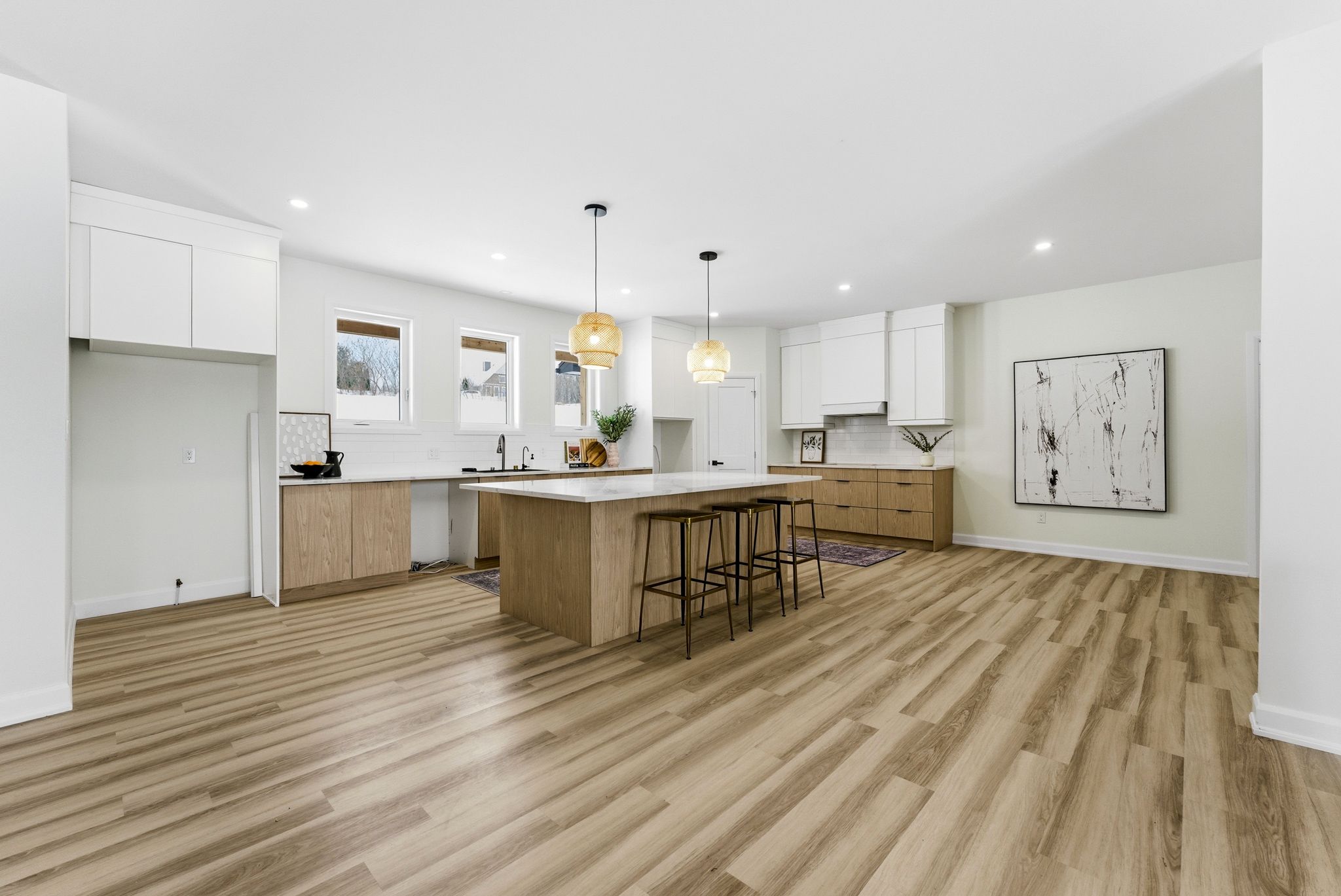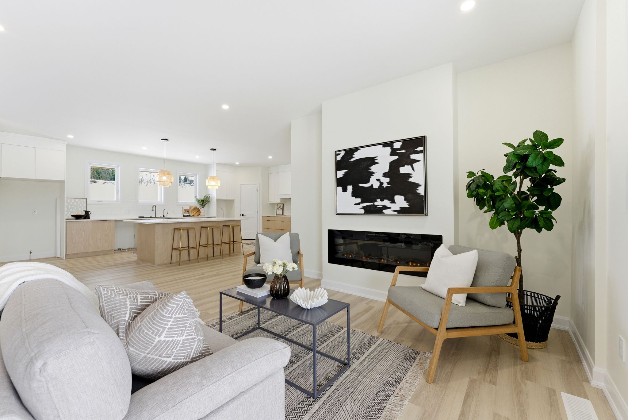 • Modern open-concept layout with a stunning kitchen and oversized island.