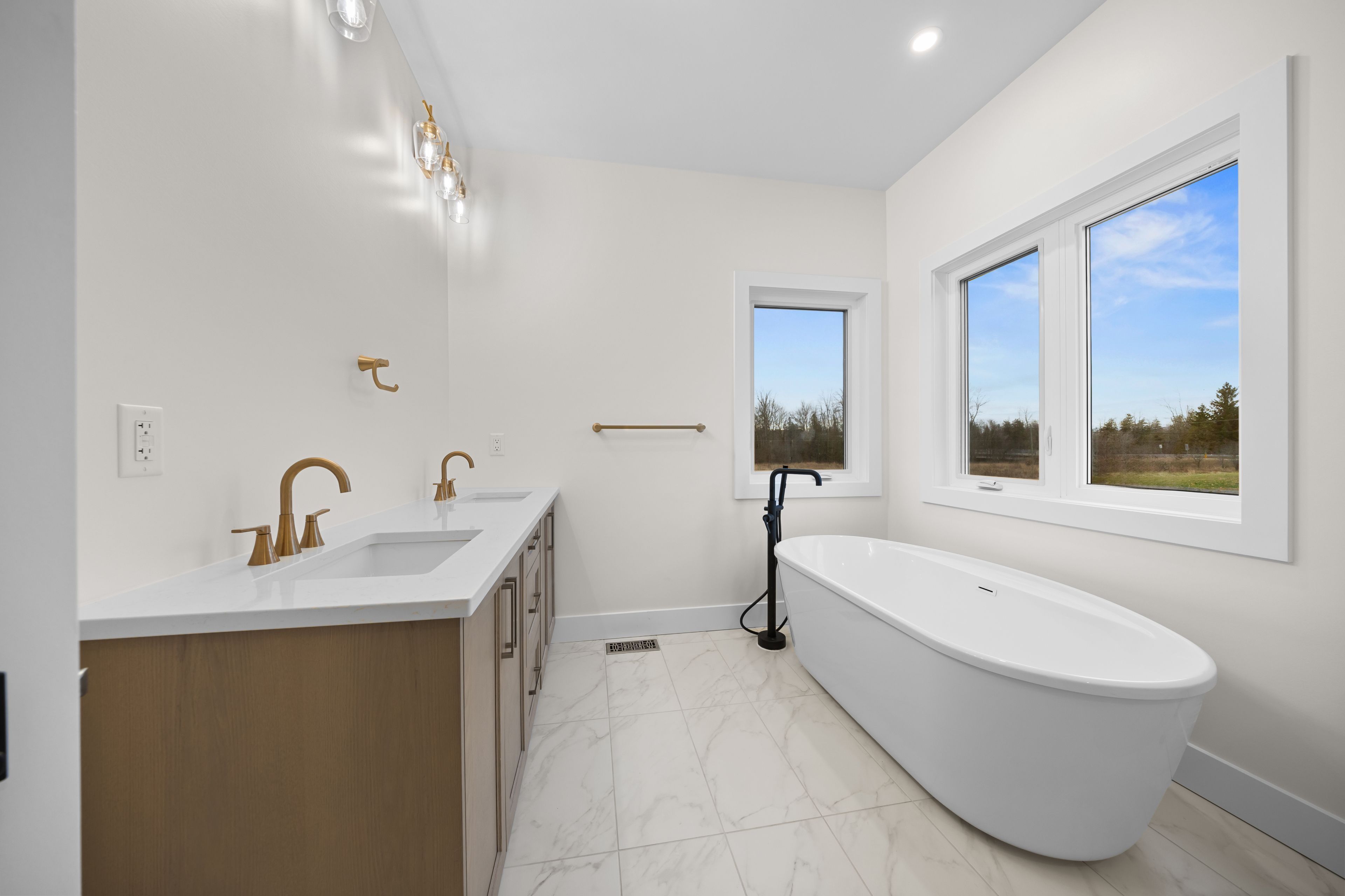 Immediate occupancy! Fabulous walkout lower level, backing on kemptville creek. This brand-new archstone homes masterpiece in the peaceful community of oxford mills-just minutes from kemptville-offers a perfect blend of luxury, comfort, and natural beauty. This thoughtfully designed 3-bedroom, 2-bath home backs onto the serene kemptville creek and comes fully covered by a tarion warranty. Ideally located within walking distance to oxford on rideau public school, brigadoon restaurant, and the picturesque oxford mills dam, it provides both convenience and charm. Inside, premium upgrades include luxury vinyl tile throughout the main living areas, ceramic tile in wet spaces, and an upgraded kitchen featuring a large island, quartz countertops, range hood cover in kitchen and a spacious pantry, all flowing into an inviting living room with a cozy propane fireplace. The exterior offers a welcoming front porch and an expansive back deck with gorgeous, private creek views-perfect for relaxing or entertaining. Additional highlights include a two-car garage and a bright walkout lower level with a roughed-in bathroom, offering excellent potential for customized future living space. A portion of every sale also supports the beth donavan hospice.