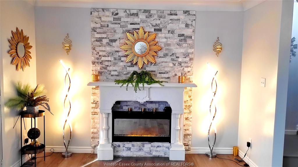 • Charming electric fireplace adds warmth to the living room.