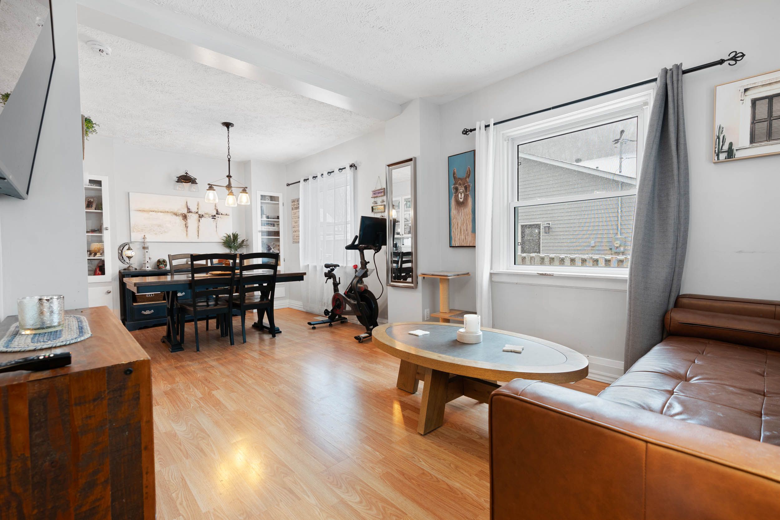 • Cozy addition with natural light, gas fireplace, and laundry area.