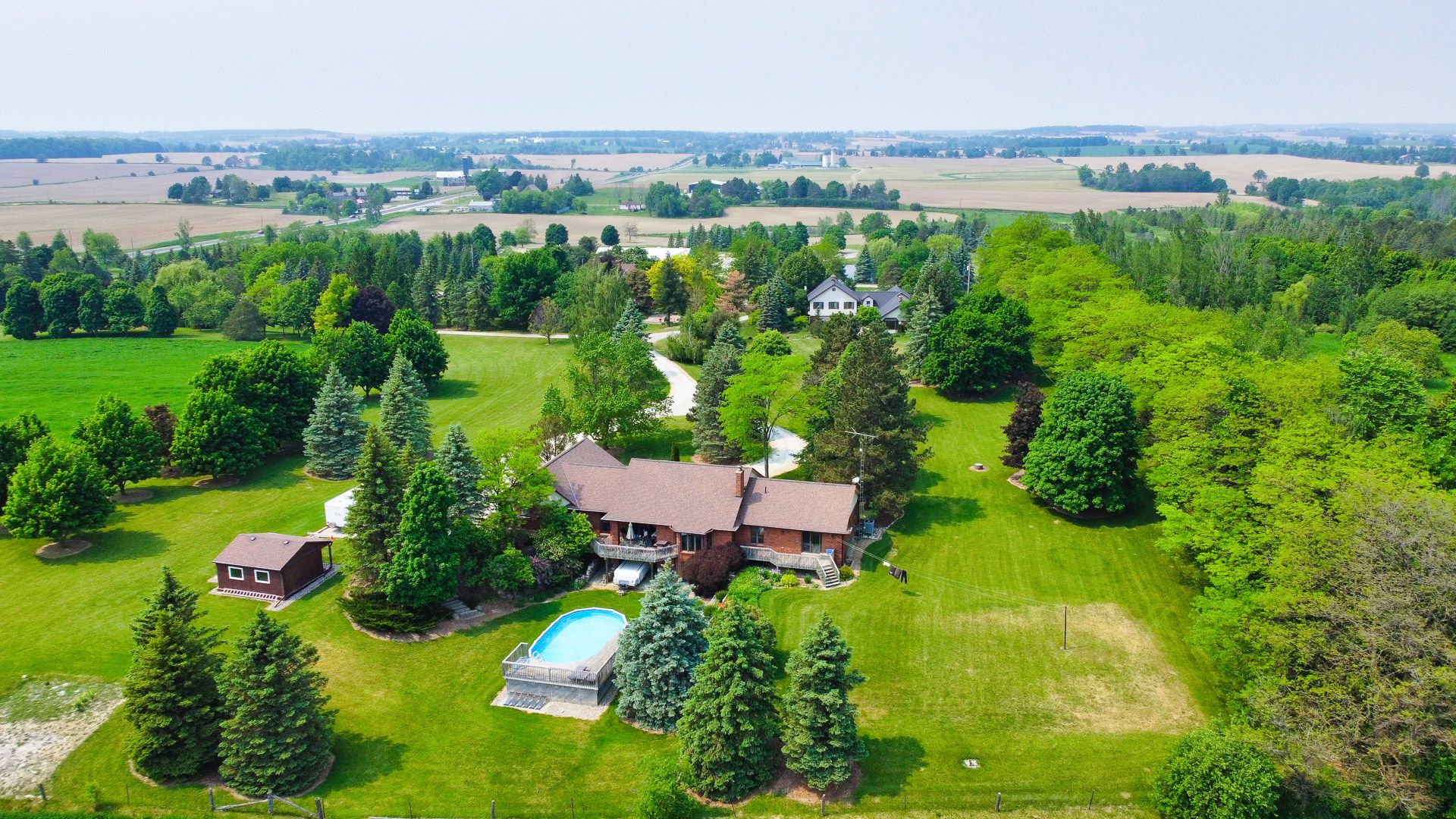 Location, location, location! Majestic opportunity to own beautifully maintained 50. 5 acres farmland, zoned agricultural with 3 fully detached homes, 6,000 sq ft workshop, 2,250 accessory shed and approx 1 acre stocked pond at the corner of hwy 27 and 3rd line located just a few minutes from hwy 400, north of schomburg. Income opportunity from property being farmed and extended family living together. Great place to live & work and don't miss this investment with potential future development opportunity!