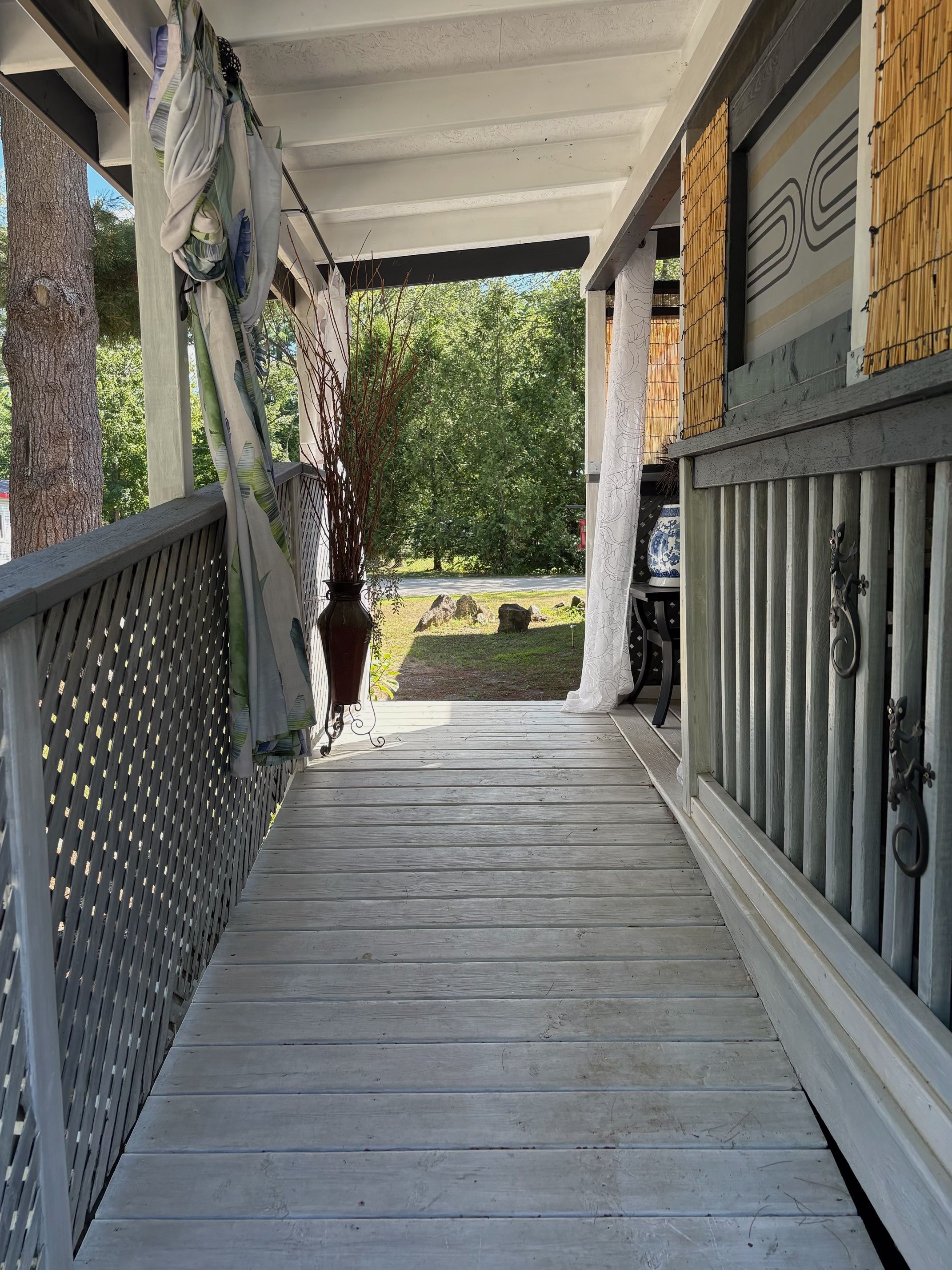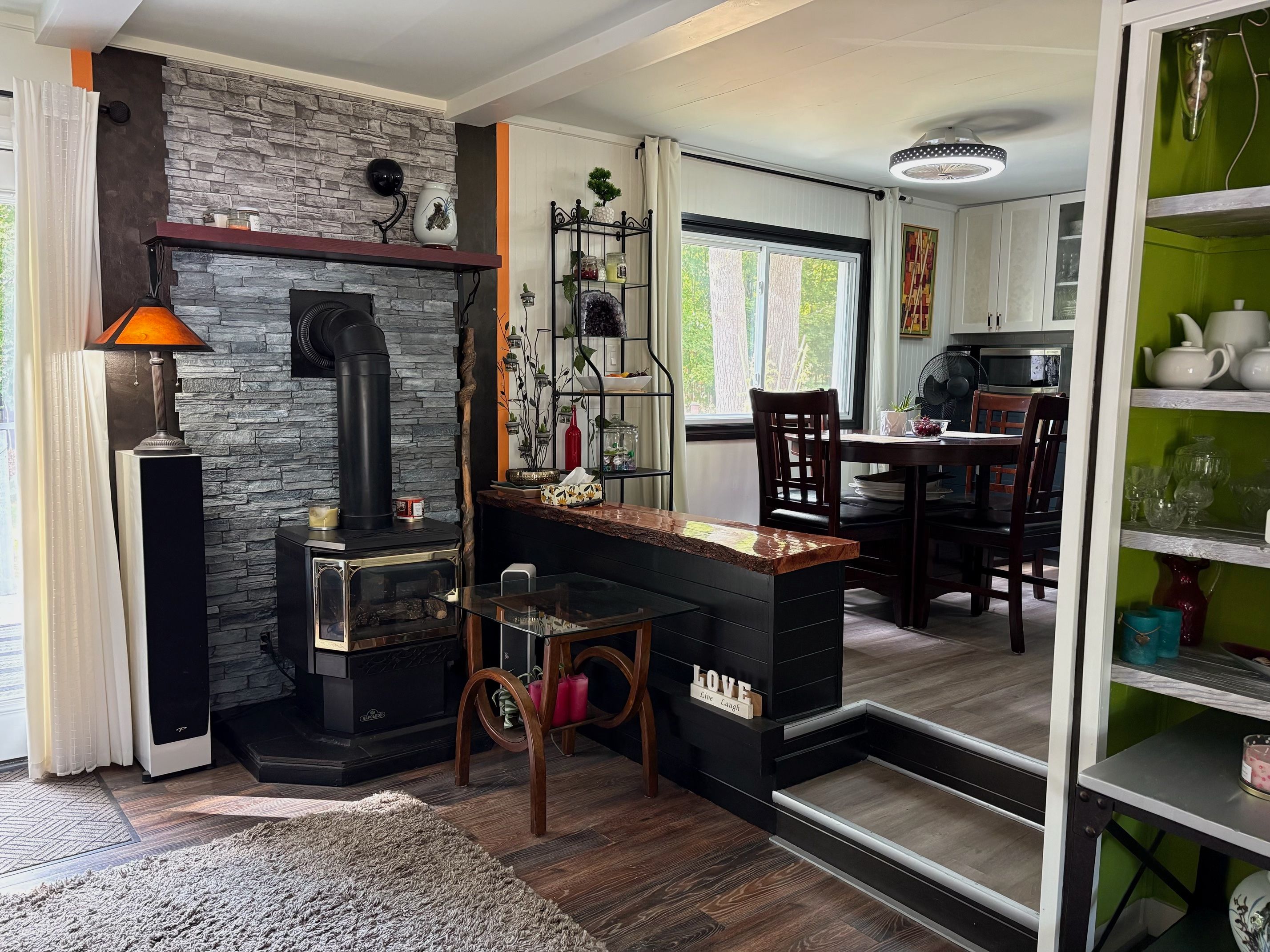 Escape to affordable, year-round living in muskoka! Discover the perfect blend of comfort, charm, and convenience at 1713 highway 11 south, unit #402. This home is a beautifully updated 3-bedroom, 1-bath home tucked into a massive, private lot in the peaceful community of big pine acres, just 8 minutes from downtown gravenhurst. Step into this move-in-ready gem and enjoy fresh modern finishes, hard-to-find outdoor space, and a warm, inviting vibe that makes you feel instantly at home. Whether you're starting, scaling down, or dreaming of a year-round muskoka retreat, this home checks all the boxes. You'll love the multiple decks, screened-in sunroom, cozy firepit area, and two handy sheds, all wrapped in tasteful landscaping, with fresh interior and exterior paint, motion-sensor lights inside and out, and bamboo privacy fencing that adds a resort-like touch. Inside, find updated flooring, modern lighting, a granite countertop, a jacuzzi tub, and beautiful cedar accent walls that create a cozy, rustic feel. (for the full list, check out the documents for the feature sheet.) with parking for 6, a partially fenced yard, and a welcoming, low-key neighbourhood, this is more than a mobile home; it's a lifestyle upgrade that won't break the bank. All the big-ticket updates are done. Just move in and enjoy muskoka living at its best!