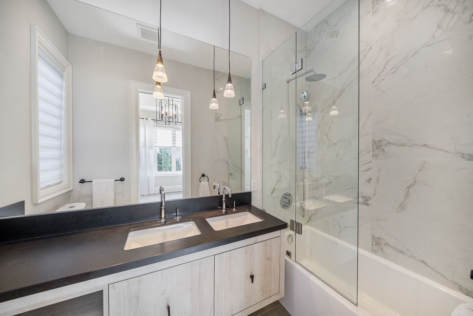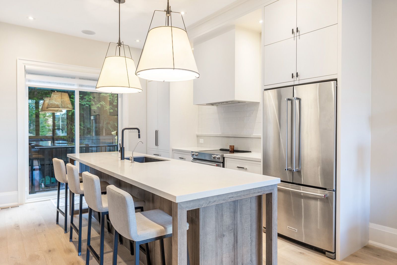A rare opportunity to own a stunning, fully custom duplex offering two completely self-contained, modern residences ideal as a multi-generational home or an exceptional investment property. Each side boasts thoughtfully designed living spaces with 10-foot ceilings on the main and second floors, and 9-foot ceilings in the finished basements, creating a bright and airy atmosphere throughout. Enjoy hardwood flooring, oversized windows, and custom built-in closets that elevate everyday living. The heart of each home is the chef-inspired kitchen, complete with feature islands, built-in stainless steel appliances, and sleek finishes that blend style with functionality. Upstairs, you'll find 2 spacious bedrooms and 2 full bathrooms on each side, while the finished basements offer large, versatile open rooms perfect as a 3rd bedroom, guest suite, or additional living space plus beautifully designed bathrooms and custom laundry rooms. Step outside to your private oasis with a professionally landscaped yard, ideal for relaxing or entertaining. Located just steps from historic main street, enjoy unparalleled access to local cafes, restaurants, walking trails, boutique hotels, and vibrant seasonal events. Whether you're looking for a forever home, multigenerational living, or a turnkey investment, this duplex delivers unmatched flexibility, quality, and location. *seller's can provide fence between sides prior to closing if requested*