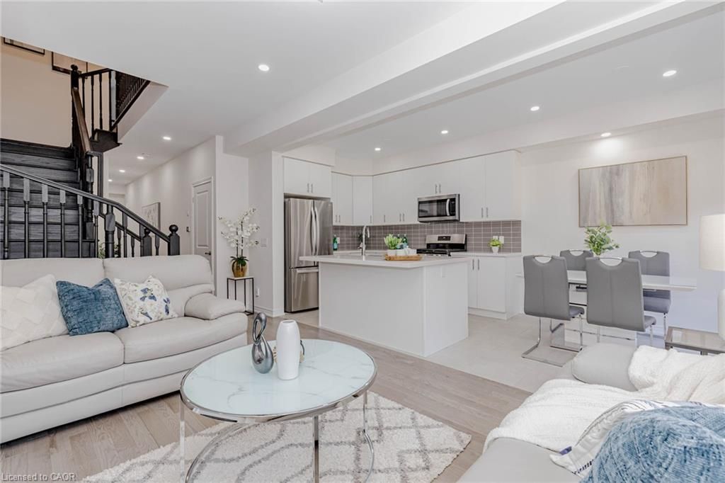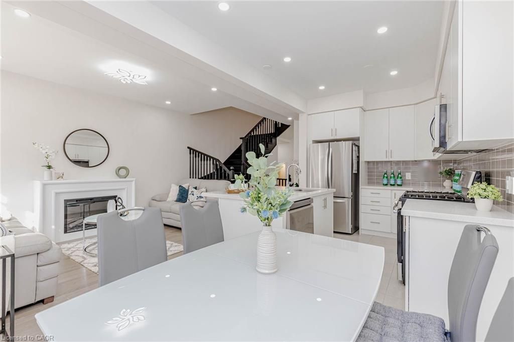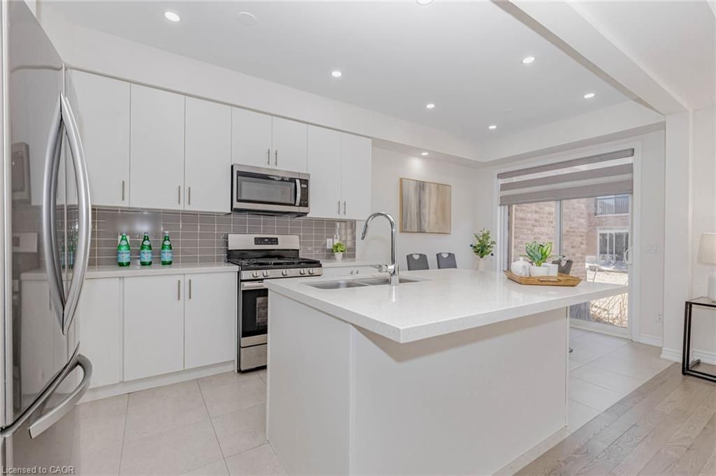 Modern luxury meets ultimate convenience at 172 beckview drive. Welcome to this stunning owner occupied, december 2023-built executive townhouse situated in the premier huron south community of kitchener. Offering approximately 1,800 sq. Ft. Of living space, this home is the perfect blend of contemporary design and family functionality. The bright, open-concept main floor features 9-ft smooth ceilings, elegant led lighting, and rich hardwood flooring throughout. The chef-inspired kitchen is a true centerpiece, upgraded with premium quartz countertops, a large center island, stylish tile backsplash, and high-end stainless steel appliances. The inviting living area, anchored by a cozy fireplace, flows seamlessly into the dining space. The upper level boasts a solid hardwood staircase leading to three generously sized bedrooms. The luxurious primary suite serves as a private retreat, complete with a spacious walk-in closet and a spa-like ensuite. The professionally finished basement features 9-ft ceilings and a full 3-piece bathroom, offering incredible versatility as a 4th bedroom, private home office, or a high-end media room. Prime location: steps from the massive rbj schlegel park and the scenic trails of huron natural area. Minutes to longo's plaza and local amenities. Located within the catchment for highly-regarded schools, including huron heights secondary. This move-in-ready masterpiece offers the "new build" feel without the wait.