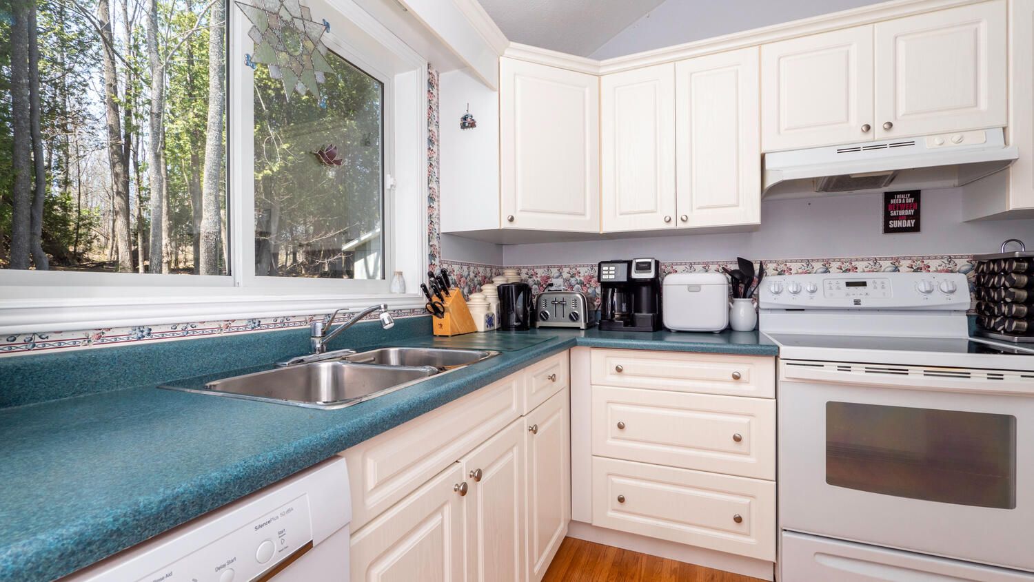 • Attached garage and two garden sheds for extra storage.