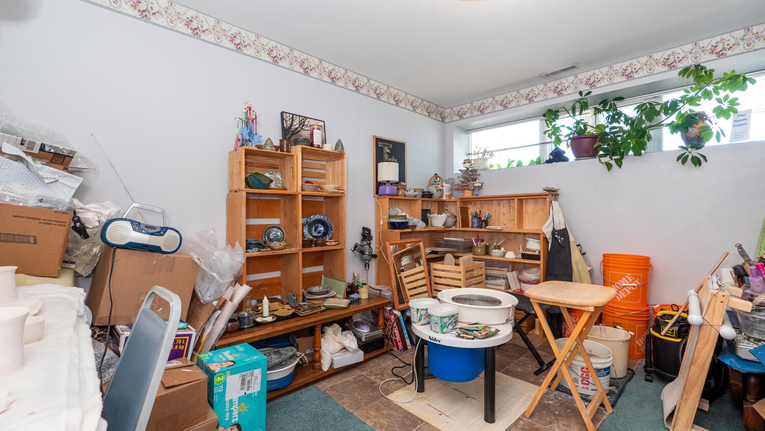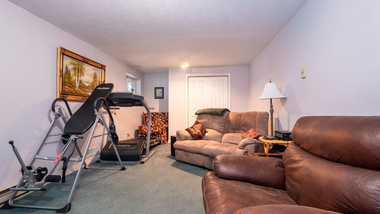 • Lower level features family room, laundry, and hobby room.