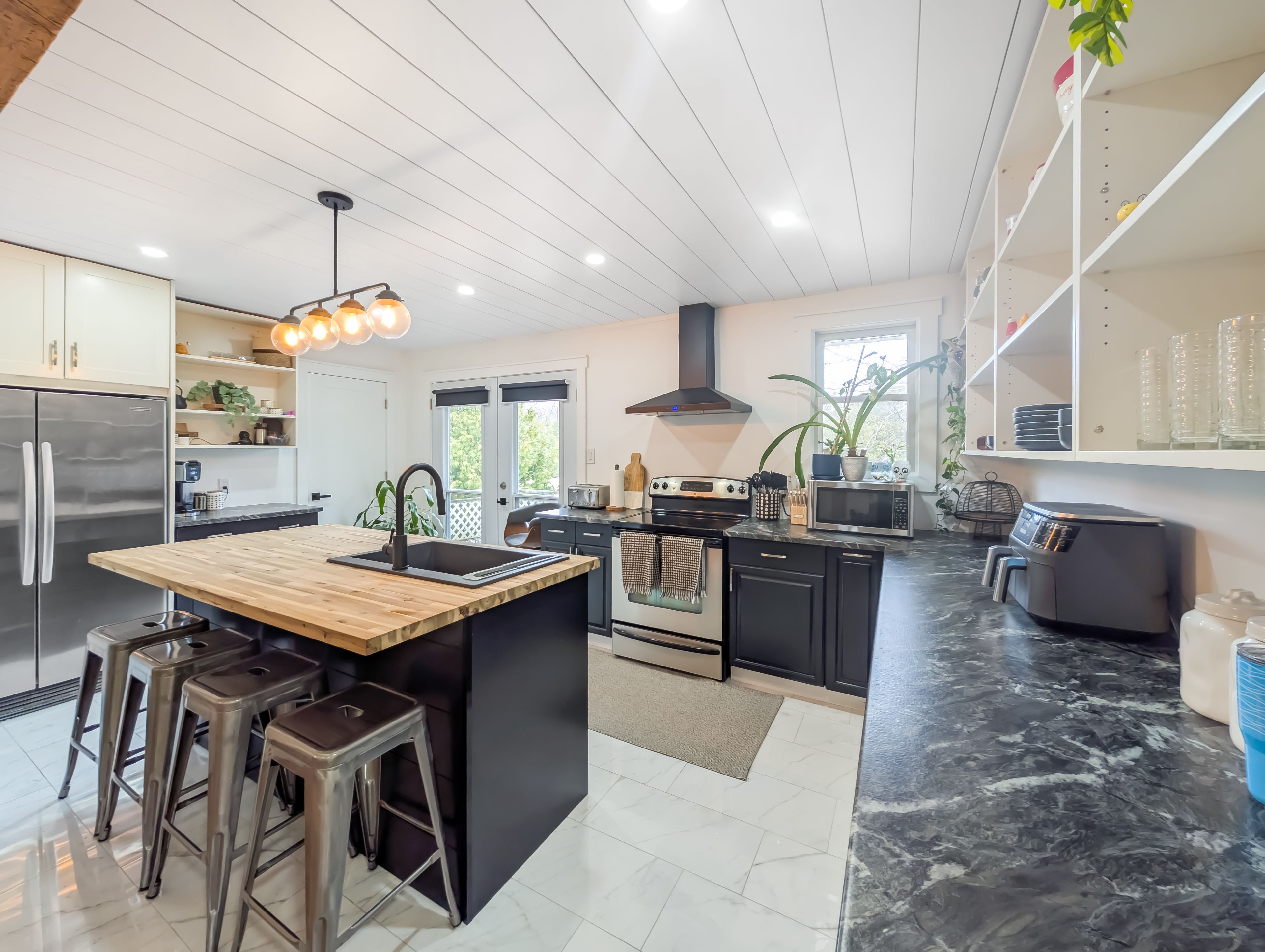 Nestled in the serene landscape of oliphant, this exquisite home, set on a generous 3-acre property with a picturesque pond perfect for winter ice skating, offers a unique blend of rustic charm and modern sophistication. Live in and rent part of the home for extra income. Recently renovated, the upper level of this home exudes a welcoming ambiance, with attention to detail and quality finishes evident throughout. The open-plan living and dining areas, bathed in natural light, provide a perfect setting for relaxation and entertaining. The modern kitchen, boasting stainless steel appliances and a large island, is a chef's delight and the heart of family gatherings. Each bedroom offers a cozy retreat, promising comfort and tranquility. The lower level presents immense potential for transformation into self-contained in-law suites or a lucrative rental units, adding versatility and value to this already impressive property. This flexibility makes it an excellent investment for the future. The sprawling grounds of this property are a nature lover's paradise. The private pond, a centerpiece of the landscape, transforms into a winter wonderland, ideal for ice skating and creating unforgettable family moments. The vast open spaces are perfect for gardening, outdoor sports, or simply enjoying the beauty of nature. Large shop, cabin and sheds create lots of potential and storage spaces. Located just a 10-minute bike ride from the stunning shores of lake huron, this home is perfect for those seeking a tranquil lifestyle close to nature, yet within easy reach of local amenities. The proximity to lake huron enhances the allure of this property, offering breathtaking sunsets, sandy beaches, and a plethora of recreational activities like fishing, boating, and swimming. Lots of updates including updates to the decks, drilled well in 2024, west side of roof redone and propane furnace installed.
