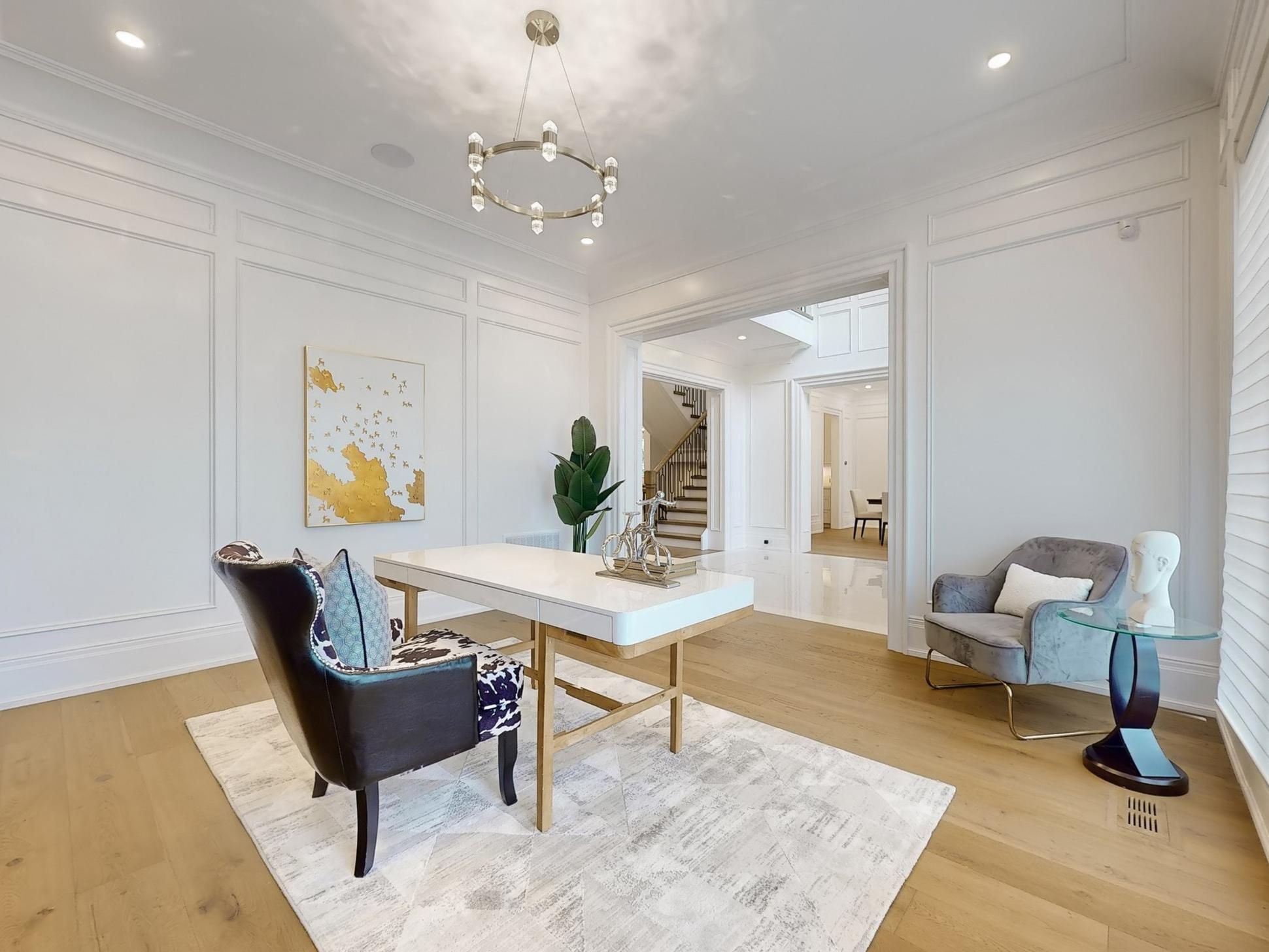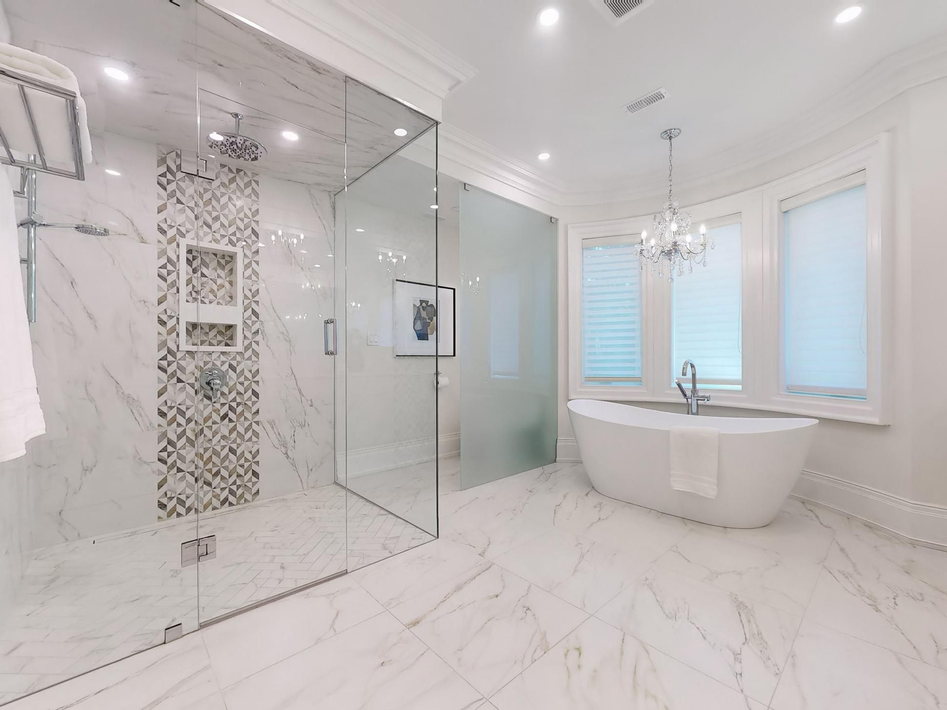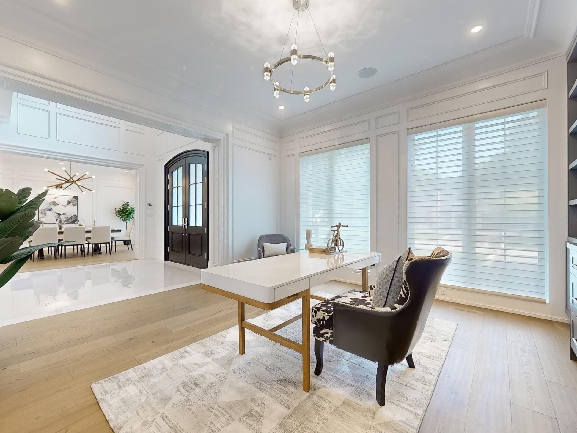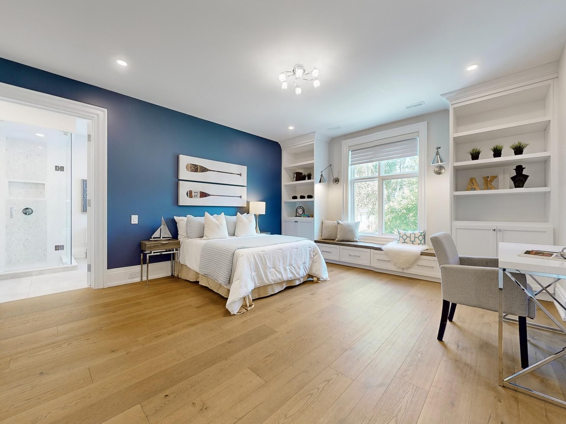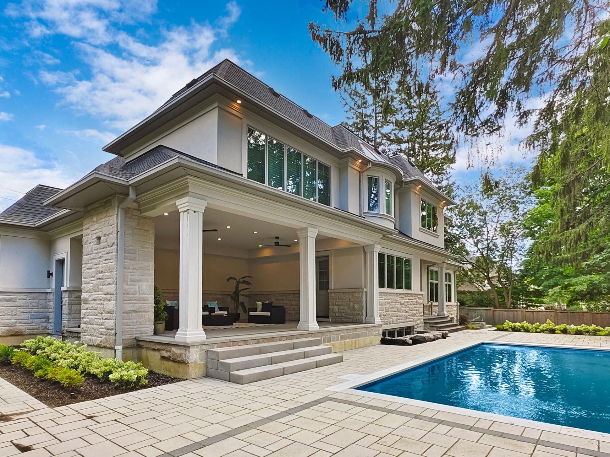This incredibly keeren designed home built in 2022! Located in prestigious eastlake neighbourhood. This home boasts approx. 6300sf luxury living space! Featuring top-notch architectural refinements with 4+1 bdrms, 8 baths (6 full, 2 half). Exterior facade and walk-up area built with indiana stone from the united states, pella windows and doors, 71/2"*3/4 grandeur white oak colour engineered hardwood floor through out. The first floor boasts 10' ceiling, a double-height entry w/a chandelier lift/down/w/a skylight. Spacious main flr office perfect for working from home. The great rm area includes a cozy gas fireplace, breathtaking views of the stunning backyard pool. Kitchen equipped with b/i high-end wolf gas stove & hood, b/i miele 30'' fridge, freezer, oven & micro, 2 b/i asko dishwashers and 24" marvel wine fridge. A lg 60* 91 centre island, marble calacatta porceline countertop and backsplash, ample upper & lower cabinetry space. The interior showcases detailed trim work, plaster crown molding, a motorized blinds system on main flr and master bdrm, heated floors in the basement and all ensuite upstairs. Massive windows flooding every space with light. The 2nd floor offers 4 luxurious bdrms, each with its own ensuite and w. I. C. Primary bdrm w/a lg dress rm w/a skylight & elegant 5pc ensuite. The residence is further equipped with 2 carrier air conditioning units and 2 furnaces w/humidifiers. The basement includes a guest bdrm w/ensuite, rec, home theatre, gym & glass-enclosed wine rm. Designed landscaping at front & backyard. The fully fenced rear yard is a true oasis w/salterwater pool w/waterfall, an outdoor covered porch w/stone gas fireplace & bbq area. Irrigation system, security system w/hd outdoor cameras, an indoor sound system and google home automation. Six routers allow network signal transmitted within entire house. Hwt owned. Walking distance to town, parks & the lake. Ot high school, maple grove, ej james, st. Mildreds, linbrook, appleby, maclachlan.