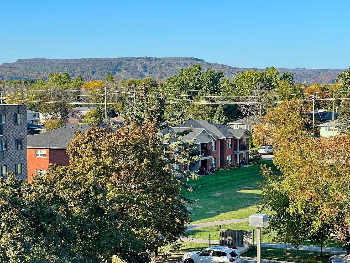 Winter does not have to be this hard! You don't have to shovel the walk, clean the car off warm it up, feel isolated because no one wants to come out and see you. Next winter could be so much easier here at the galleries, no shoveling a warm clean car in the underground parking and many friends right here in the building. Affordable elegance at the galleries collingwood's hidden gem. Step into comfort and convenience in one of collingwood's most desirable addresses. The galleries. This spacious 2-bedroom, 1-bath condo offers breathtaking views of the escarpment and unforgettable sunsets, all from the warmth of your own home. Features you'll love. Generously sized rooms, including a versatile laundry/storage space, underground parking spot #82 and ground-level locker #505, pet-friendly building (size restrictions apply). Condo fees include covering water, sewer, heat, and a/c. New concierge service for added ease, rentable guest suite for visiting friends and family library/community room for quiet moments or social gatherings. Fitness centre and sauna to keep you refreshed year-round. This is the most affordable unit in the building perfect for down-sizers or anyone seeking a low-maintenance lifestyle in a vibrant community. Ready for occupancy before the snow flies, so you can settle in just in time for winter coziness. Location, lifestyle, and value all in one. Dont miss your chance to own at the galleries. Schedule your viewing today!