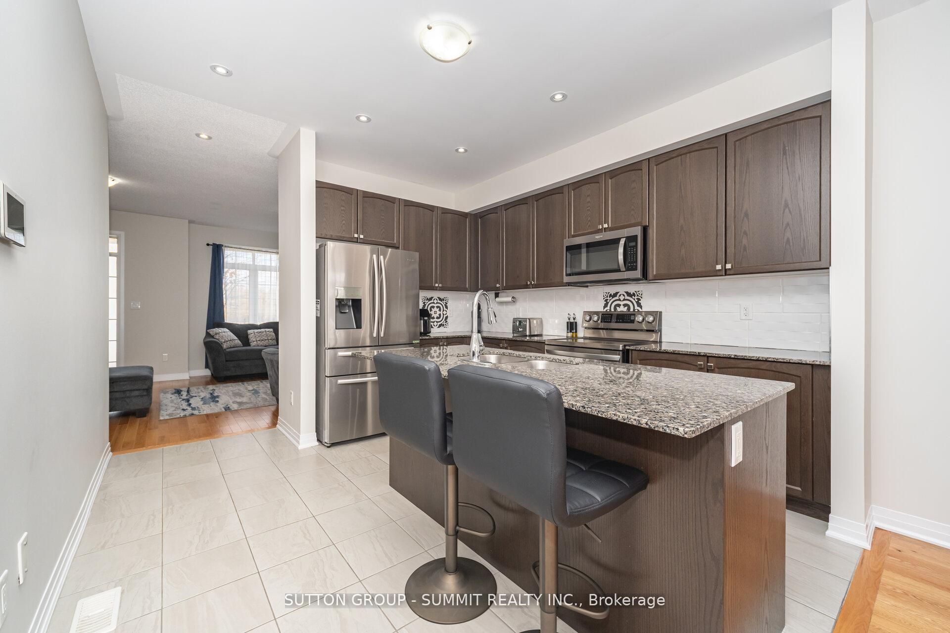 Beautiful 3 bed, 3 bath townhome by cachet homes located in one of most desirable neighborhoods in orangeville. 1693 sqft. Open concept main floor boasts gorgeous kitchen with s/s appliances, granite island & breakfast bar, upgraded cabinets & lighting and w/out to backyard. Large living room with gas fireplace, walk out to balcony, 9' ceilings and hardwood floors. Master suite with walk-in closet and spa like 4pc ensuite.