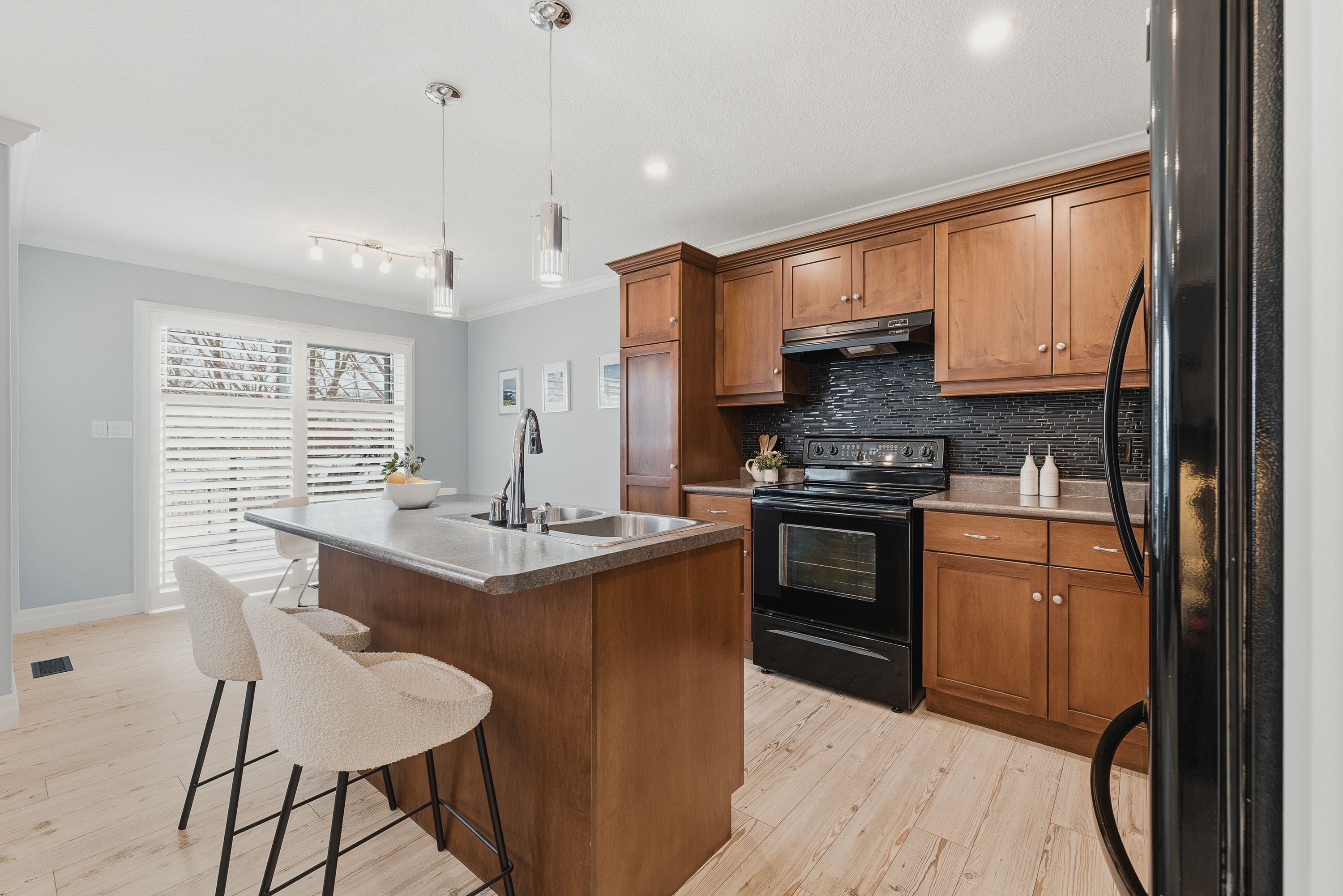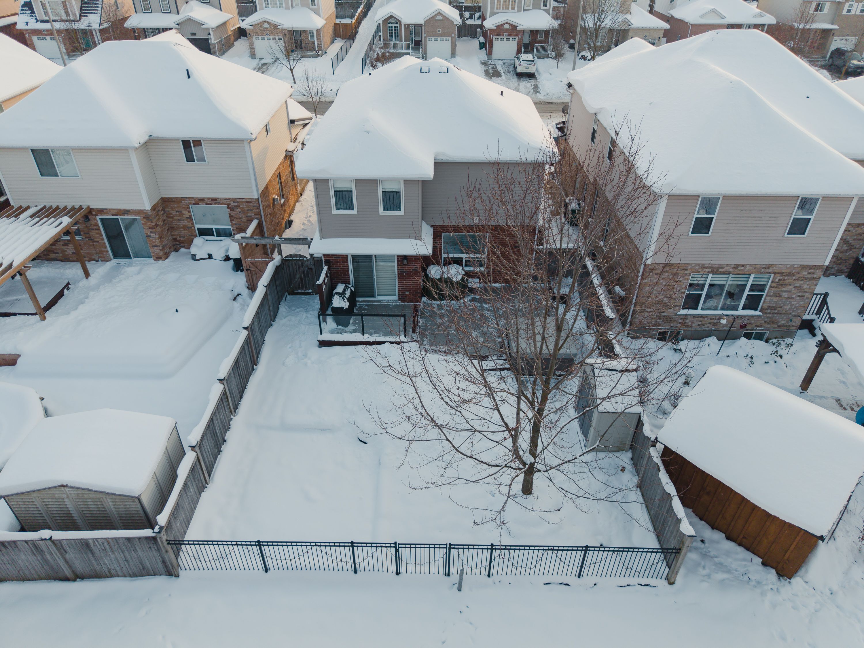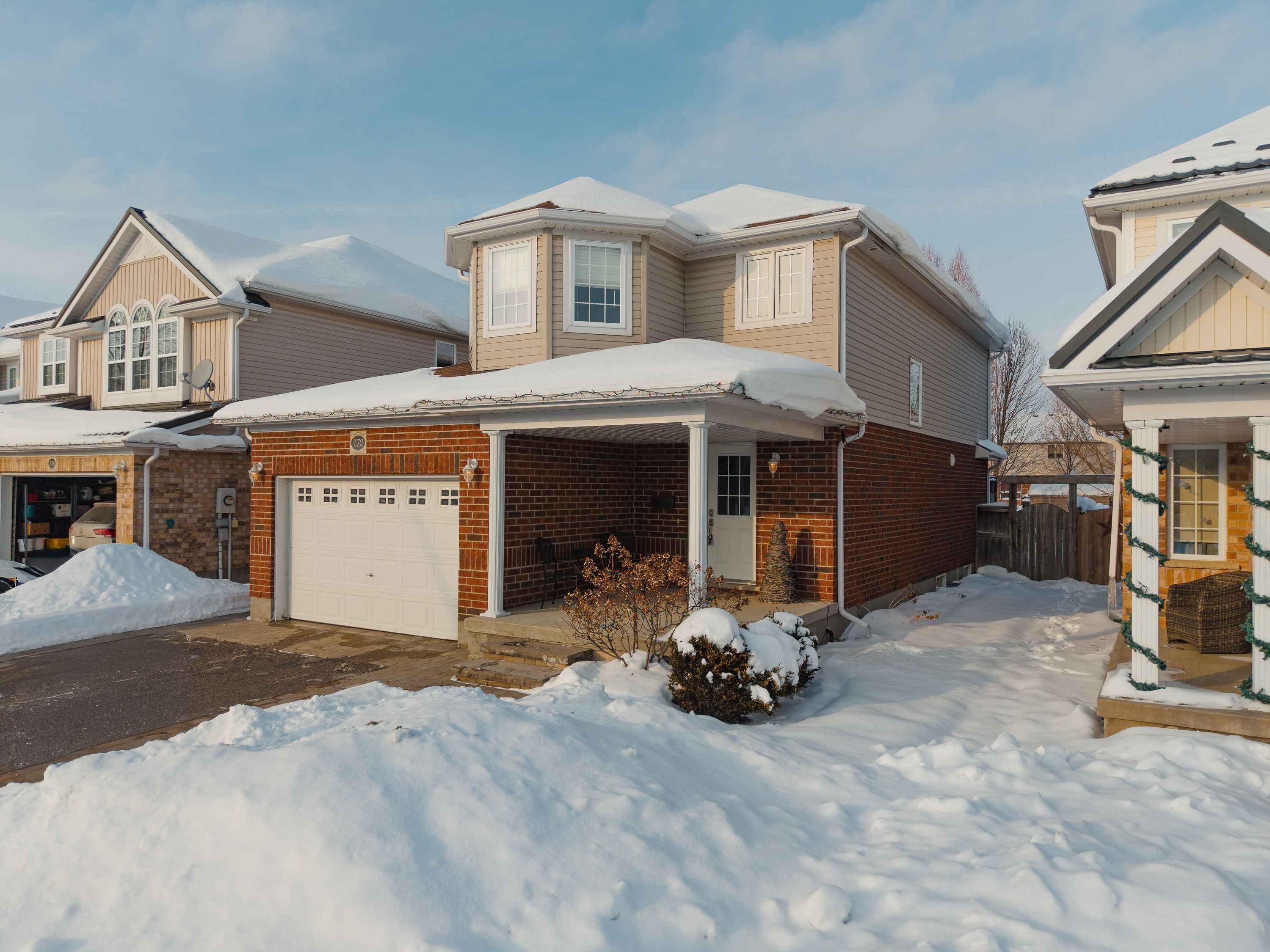 Welcome to 172 porchlight drive, where privacy, comfort, and thoughtful updates come together in one of elmira's most family-friendly neighbourhoods. This well-maintained two-storey home offers a bright, functional layout with a finished basement and updates that make everyday living feel easy. The main floor was refreshed in 2020 with updated flooring, trim, casing, and paint, giving the space a clean, modern flow that still feels warm and inviting. Upstairs, the primary bedroom was expanded in 2019, creating a more spacious retreat, while custom closet organizers in every closet keep life organized and clutter-free. The finished lower level adds valuable flex space, perfect for movie nights, a home office, or a playroom. The backyard is a true highlight. Backing onto green space with no direct rear neighbours, it offers rare privacy and a peaceful setting. Mature trees provide a lush backdrop in the warmer months, while the maintenance-free deck and hot tub make entertaining effortless. A fully fenced yard, widened driveway with interlocking stone (2025), and backyard shed round out the outdoor features. Located just steps to schools, parks, trails, and the woolwich memorial centre, this home blends everyday convenience with a quiet, community-focused lifestyle. A home that's been thoughtfully improved and lovingly maintained-172 porchlight drive is ready to be enjoyed.
