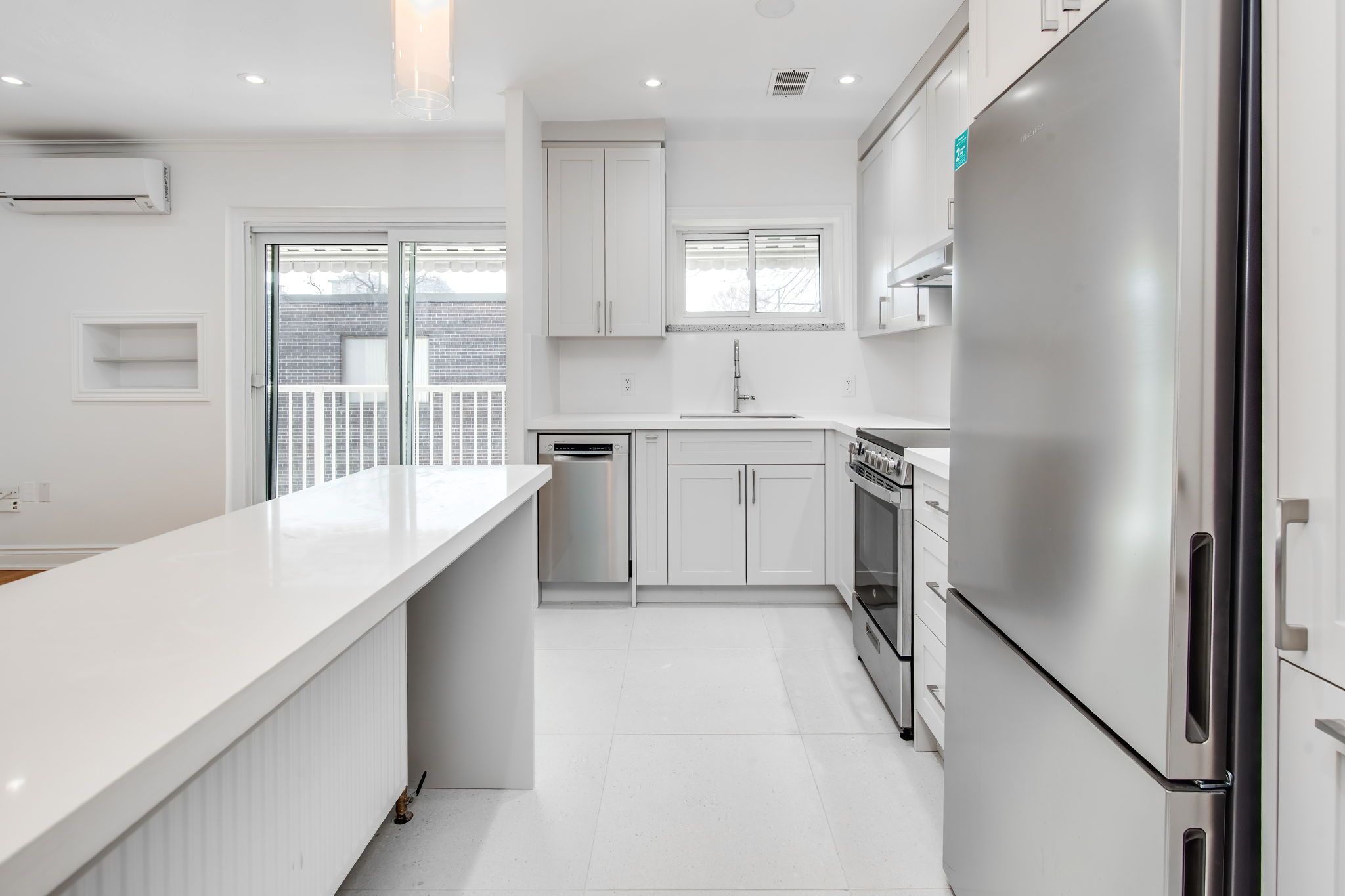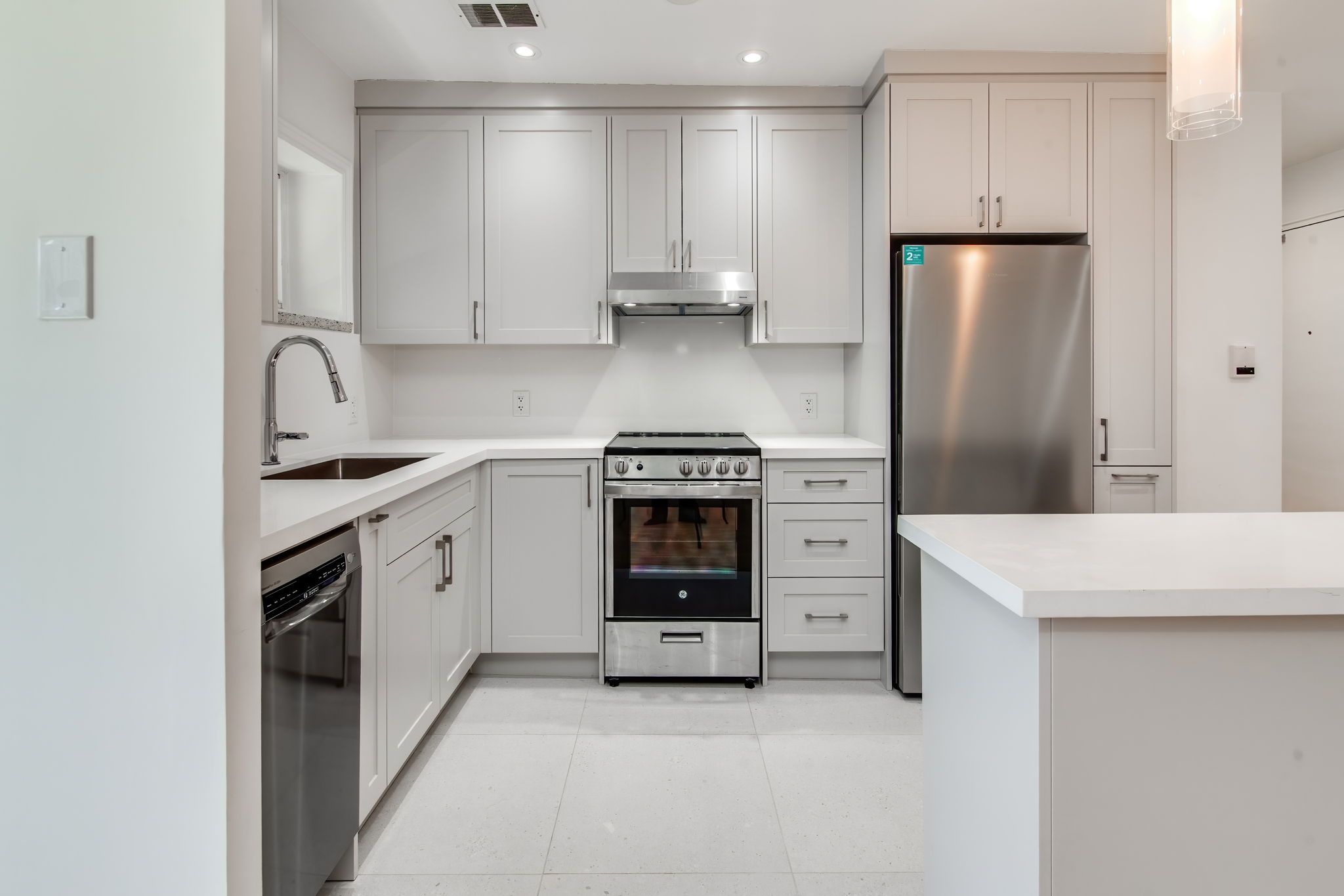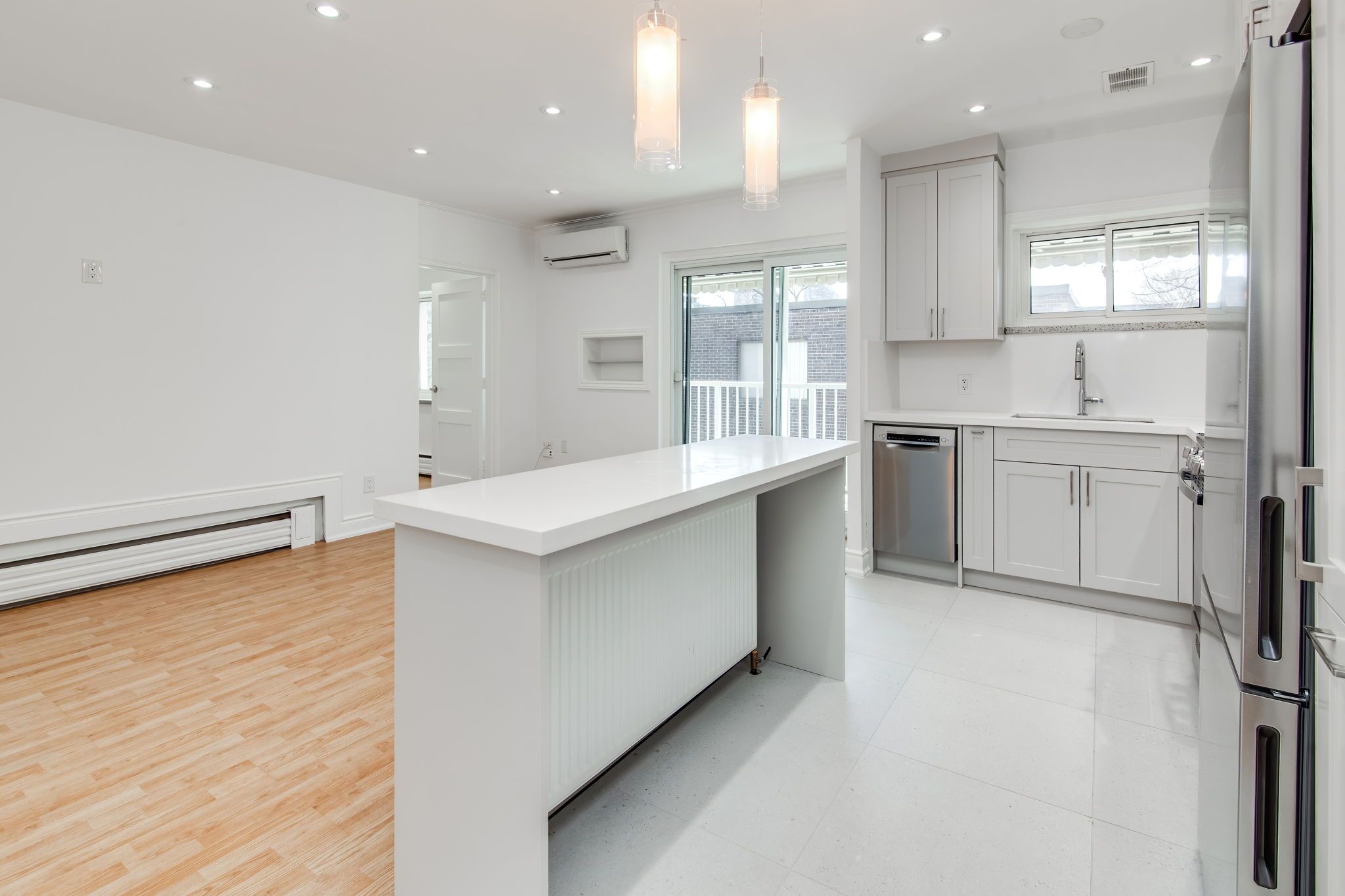 • Newly renovated kitchen with stainless steel appliances and a center island.