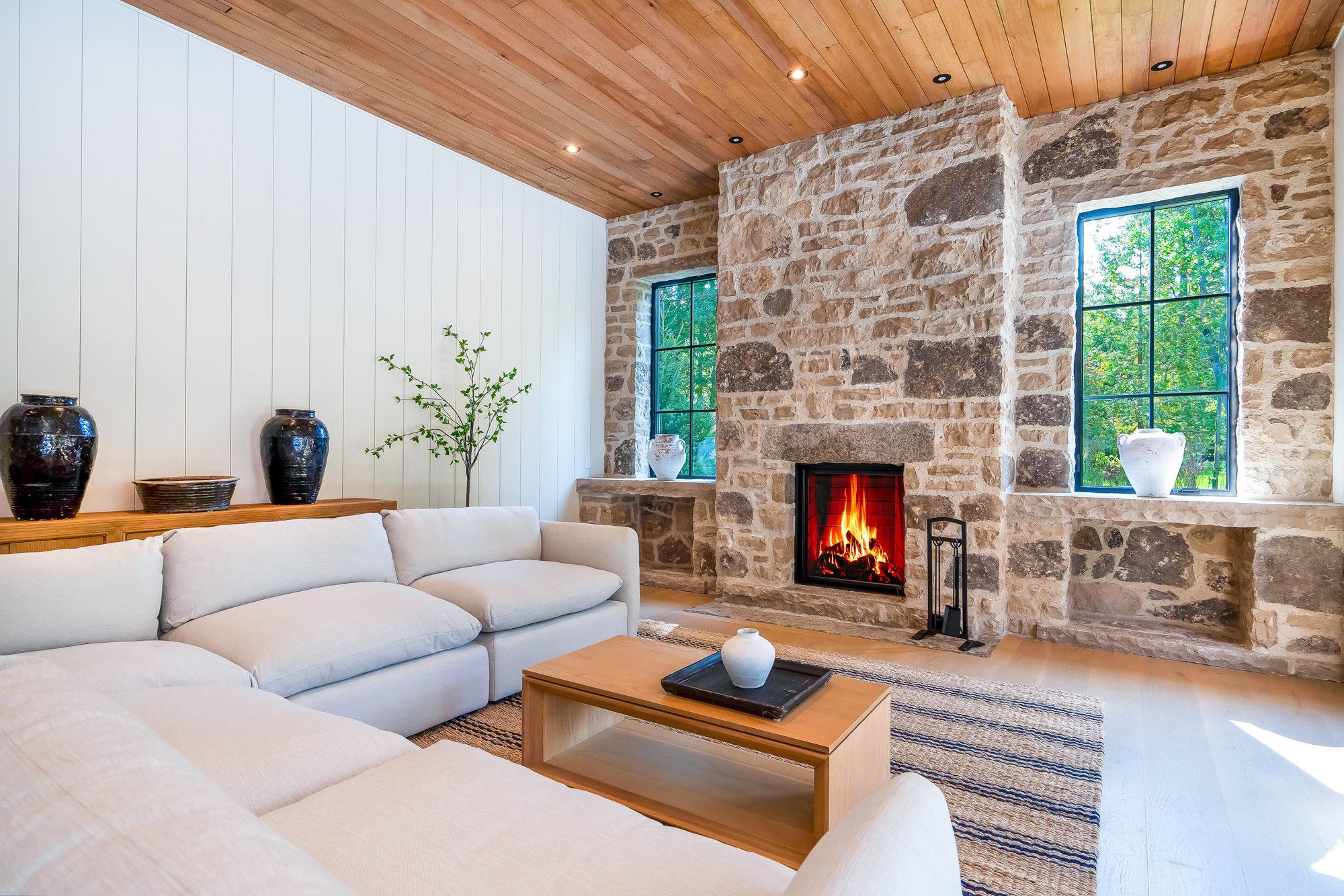 Luxury design build near craigleith / alpine: this custom-built masterpiece by coastal impressions blends timeless european architecture with modern luxury, offering 5589 finished sq ft (3546 ag + 2043 bg) on a beautifully landscaped 80 x 192 lot. The exterior showcases board and batten with hand-laid stonework reminiscent of old-world craftsmanship, while the interior features 8. 5 engineered white oak flooring, soaring 10' / 12' ceilings with vaulted areas up to 18', & graceful barreled archways. The gourmet kitchen opens to a warm family room with a large gas fireplace + a separate dining area and is highlighted by a custom white oak island with quartz countertops, bar seating, + state of the art top-tier thermador professional series appliances, including a 7-burner gas cooktop stove, dual wall ovens, refrigerator, + freezer and wine tower, dishwasher, and combined speed oven/microwave. There are two 30" franke sinks + a hidden cupboard door leading to a back hallway with pantry and office adding both charm and function. Beyond a small bar area, double white oak doors open to the dramatic après-ski lounge featuring a stunning custom stone wall, a wood-burning rumford fireplace, + three sets of double doors leading to the outdoor living space. The main floor offers three bedrooms, each with ensuite, + a powder room. The main-level primary suite is a true retreat with vaulted ceilings, a spa-like ensuite, and extra-large walk-in closet. The lower level has a large built-in bar / island, gym with rubber flooring, a spacious family room with gas fireplace, two additional bedrooms, + a four-piece bath. Outdoor living shines with 1,000 sq ft of space: custom kitchen with built-in bbq, surrounded by 36 trees and eight perennial gardens. Additional features include heated floors in primary ensuite + lower bath, a 22kw generac generator, and oversized two-car garage. Walkable to craigleith and alpine, this home defines refined four-season living in the blue mountains.