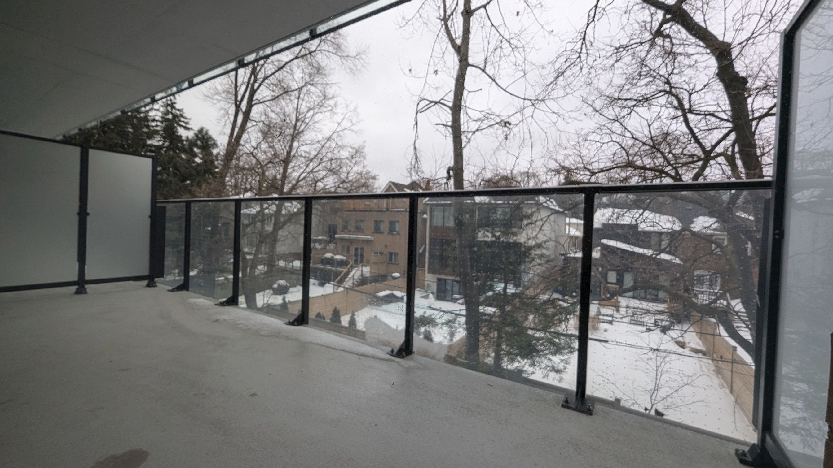 Experience refined boutique living in this modern, new and accessibly friendly 2bed+den, 2-bath residence in one of toronto's most desirable neighbourhoods. Offering a total of 981 sf. Of living space, this home blends comfort with simplicity. Experience an open-concept layout with light plank hardwood flooring throughout, exposed concrete ceilings, and floor to ceiling windows that let the setting sun flow throughout. The modern kitchen is compact yet highly functional, with integrated appliances and clean lines. The primary suite offers a floor to ceiling windows, a walk-in closet completed with a 4-piece ensuite. The 2nd washroom showcases a frameless glass shower, rainfall shower head, and modern vanity. The stacked, full size, in-suite laundry closet adds convenience. Outdoor living space can be enjoyed year round by a covered terrace complete with hose bib and natural gas hook up for your bbq or favorite fire feature. Amenities include a 24-hour concierge, complete fitness centre w children's play area, a co-working business centre with available private rooms, an outdoor terrace with bbq, as well as a pet washing station. Conveniently situated steps to the leaside lrt, boutique shops, cafes, restaurants, parks, and top-rated schools. This is an exceptional opportunity for those seeking a modern, well-appointed home in a vibrant yet established community.