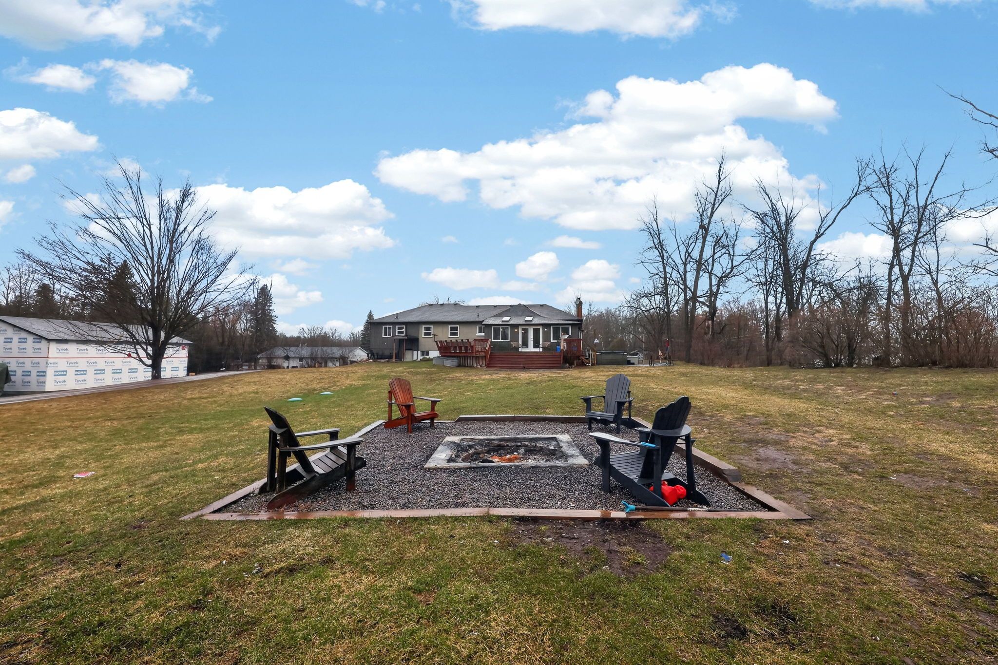 • Beautiful landscaping with fruit trees and open space for relaxation.
