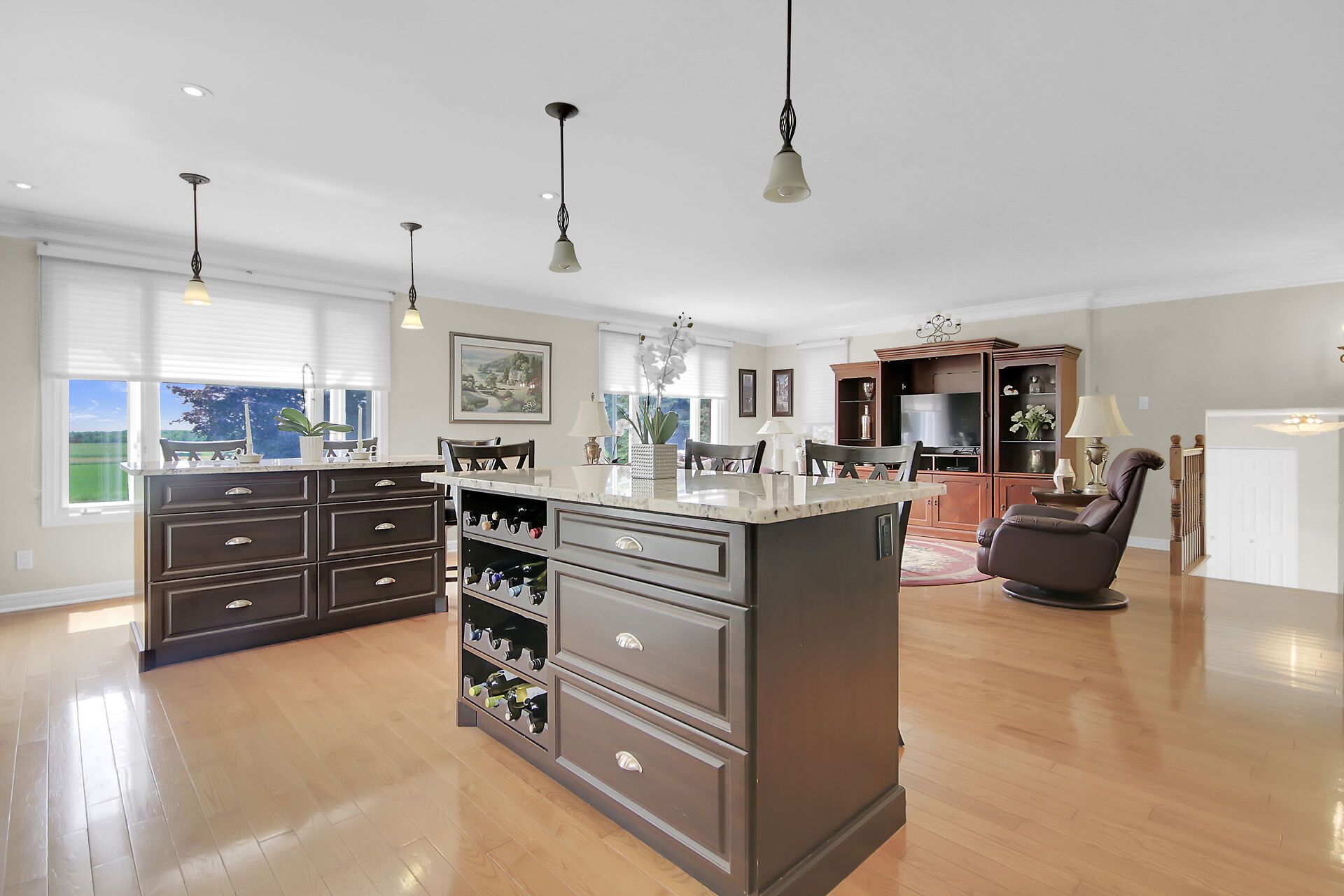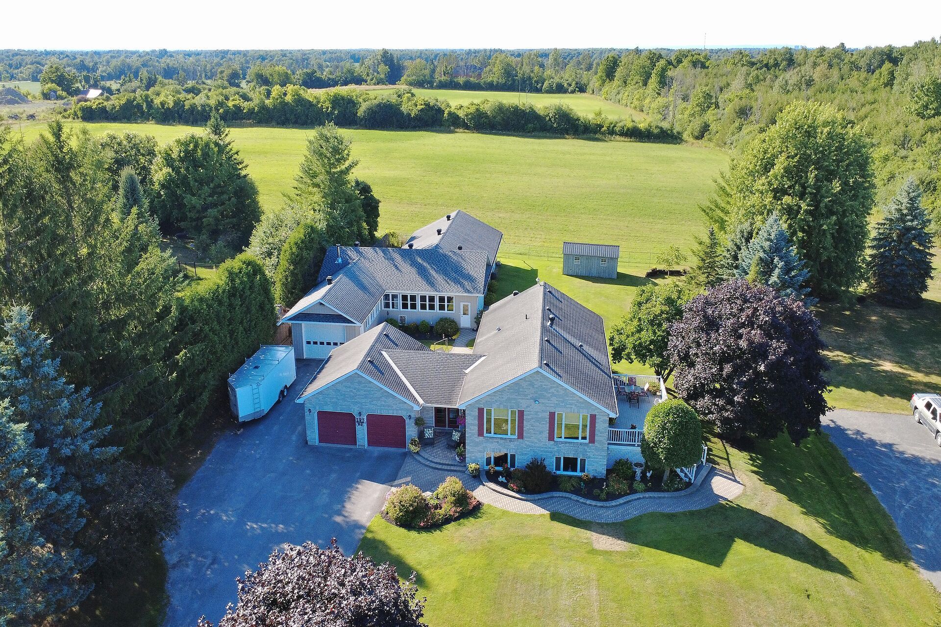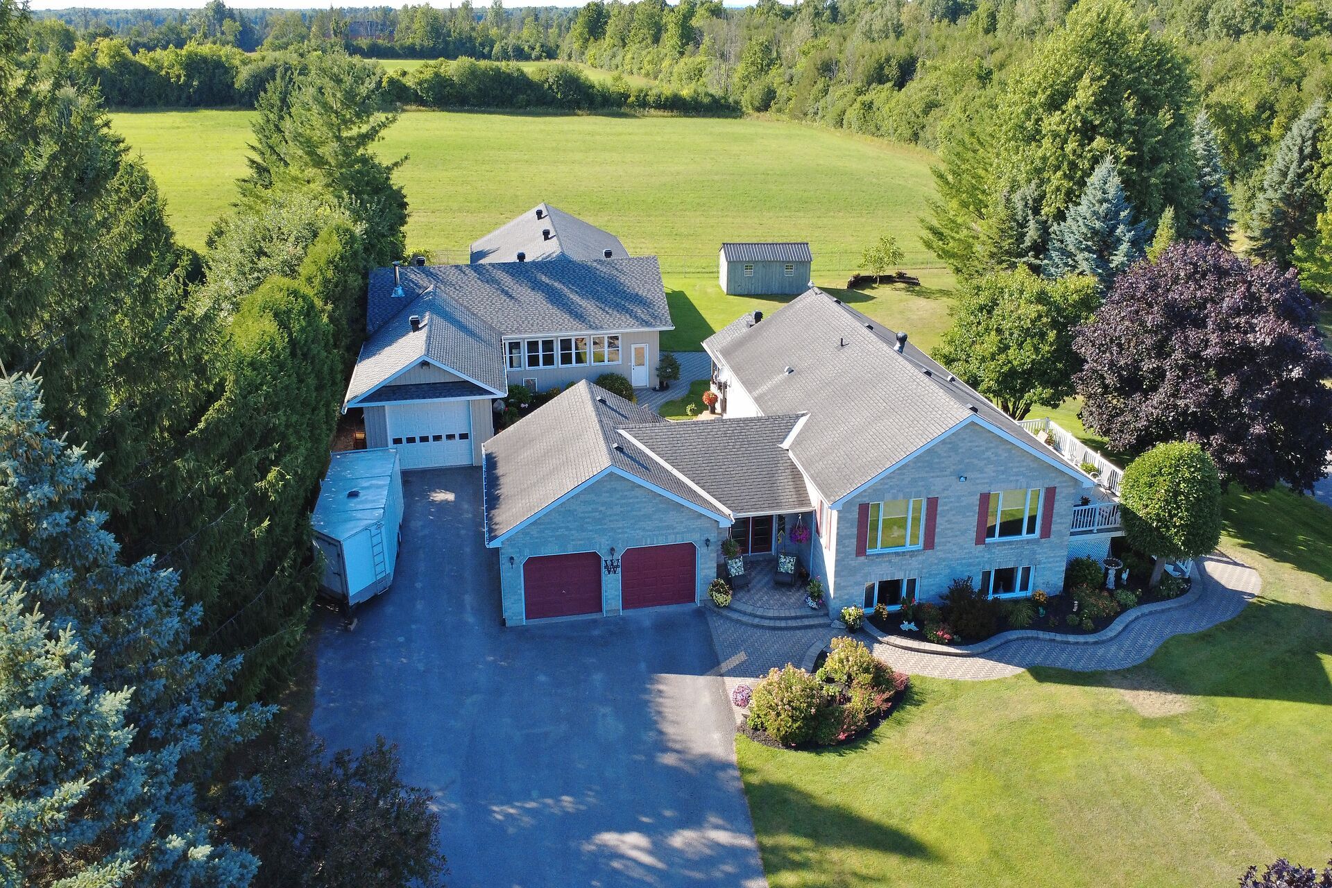 1721 carsonby road east craftsman bungalow surrounded by rolling countrysidewelcome to this meticulously maintained all-brick craftsman bungalow, set amidst gentle slopes and beautiful rural landscapes. Combining timeless quality with modern comforts, this two-bedroom, one-and-a-half-bathroom home offers exceptional functionality and charm. An expansive entrance with a two-piece powder room leads into the open-concept main living area. The custom kitchen features a built-in oven, new cooktop, and microwave hood fan, seamlessly connecting to the dining and family room. Hardwood flooring, abundant natural light, and sweeping countryside views create an inviting space, with direct access to a spacious composite deck for outdoor living. The primary bedroom boasts a sizeable walk-in closet, outdoor entrance to enjoy a private jacuzzi enclosure designed with overhead protection while maintaining airflow and open views and shares a jack & jill style four-piece ensuite, ensuring both privacy and convenience. The lower level offers a large family room with a custom bar, perfect for entertaining, and a cozy propane fireplace. This level also includes a finished home office, an unfinished storage area plumbed for a future bathroom, and additional potential for customization. An insulated attached garage provides everyday convenience, while the impressive detached workshop measuring 17 x 53 and 69 x 29 combined (approx 3000 square feet) offers propane heat, 100-amp electrical service, insulation, and additional wood stove heating, ideal for hobbyists or trades. Furnace/heat pump 2025. Centrally located, this property is just 13 minutes to kanata, 10 minutes to barrhaven, and 10 minutes to manotick, offering peaceful country living with quick access to city amenities. Propane approx $100/month, tank rental $95/year. New furnace installed 2025.