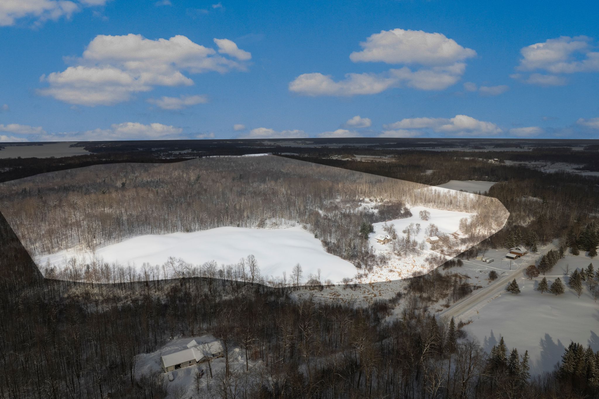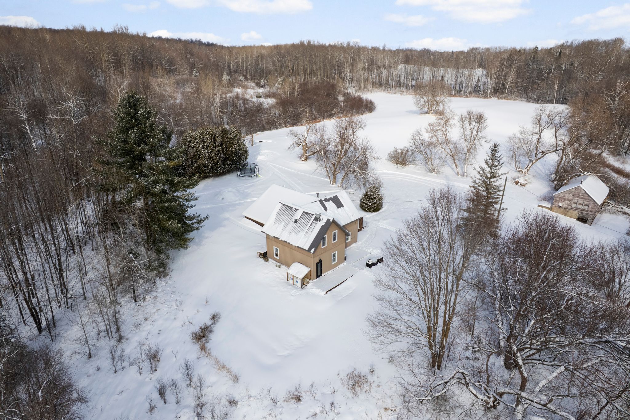 • 10 acres of tilled land and 56 acres of bush for hunting.