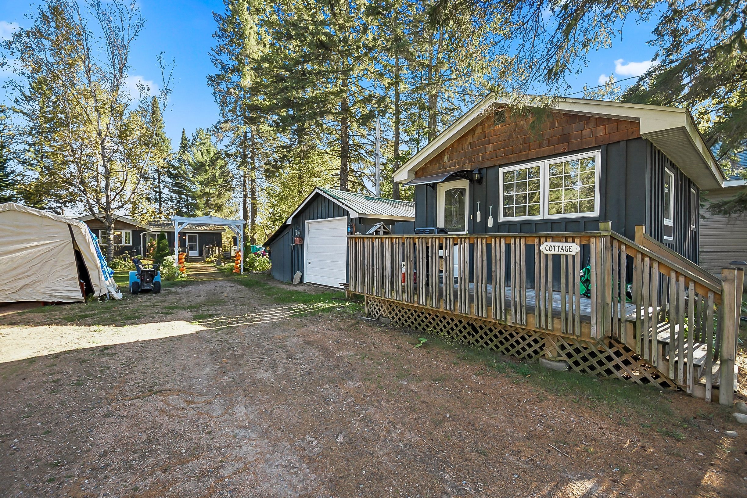 Year round cottage in kearney on the iconic magnetawan river that connects you to a 3 lake chain with 7 miles of boating into perry, hassard and beaver lake. Hwy access with all paved roads, walk, drive or boat in to town to restaurants, lcbo, snack bar, gas, community centre, beaches, skating rink and much more. There are things to do year round in kearney and you are on the corridor to visit algonquin park! This 2 bedroom, 1 bathroom main cottage offers a detached garage, hot tub on lakeside deck with water toy shed with 2 docks. There is a second storage shed that can be converted in to a bunkie, plus a year round one bedroom, one bath cottage! There are no short term rental by-laws here, the small cottage can be rented out year round to pay your mortgage! It is on the airbnb program now. Great location and good package for first time cottage buyers, investors or first time home owners. The main cottage is heated with a wood stove and baseboard heat with all the comforts of home including laundry, bell hi-speed internet and good cell service. Kearney is a popular winter haven for snowmobilers and for atv enthusiasts and is known for the best fireworks in the district and for their annual dog sled races every february. This is a rare find ... Do not miss out on this one folks it will not last long on the market.