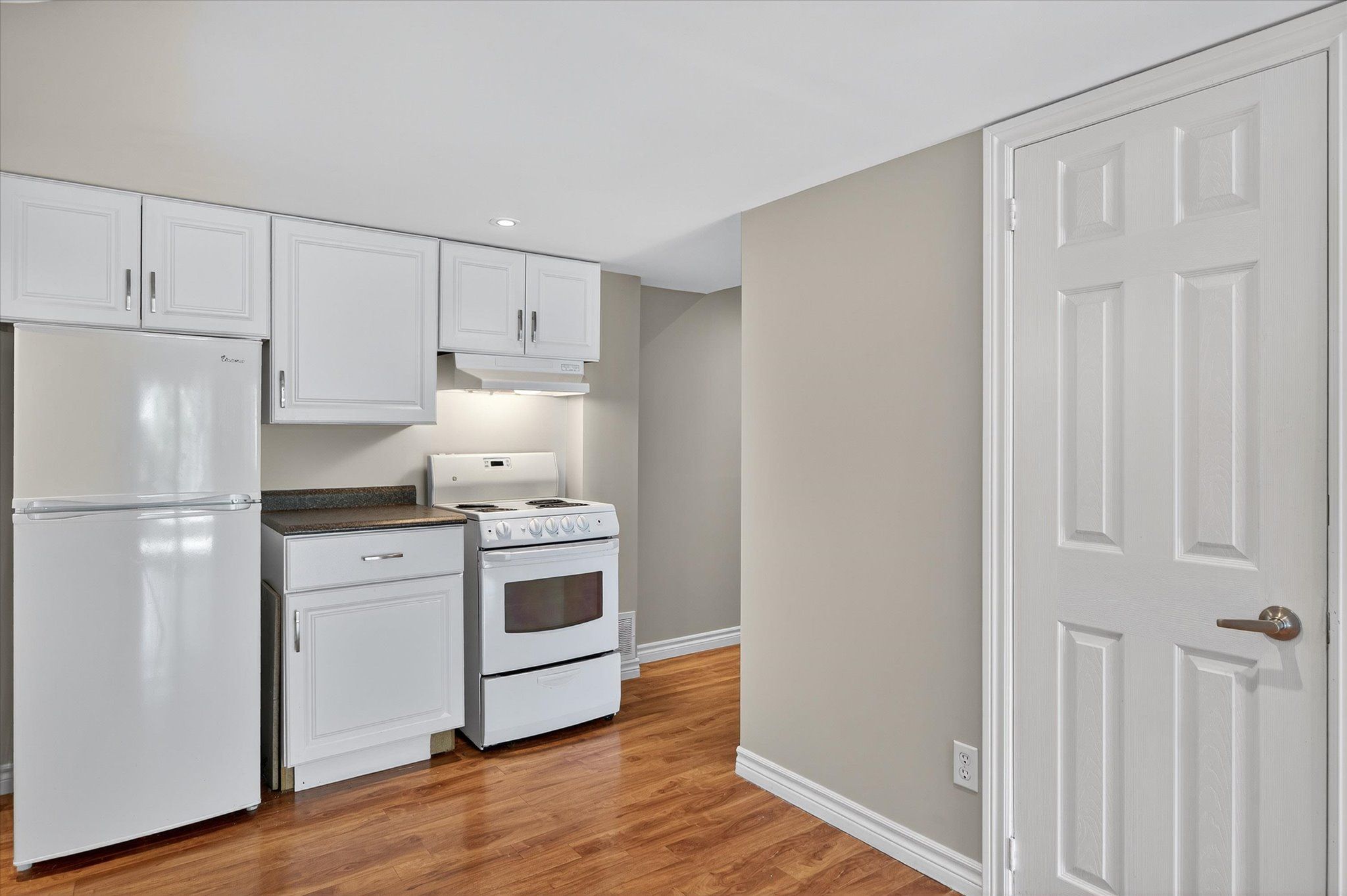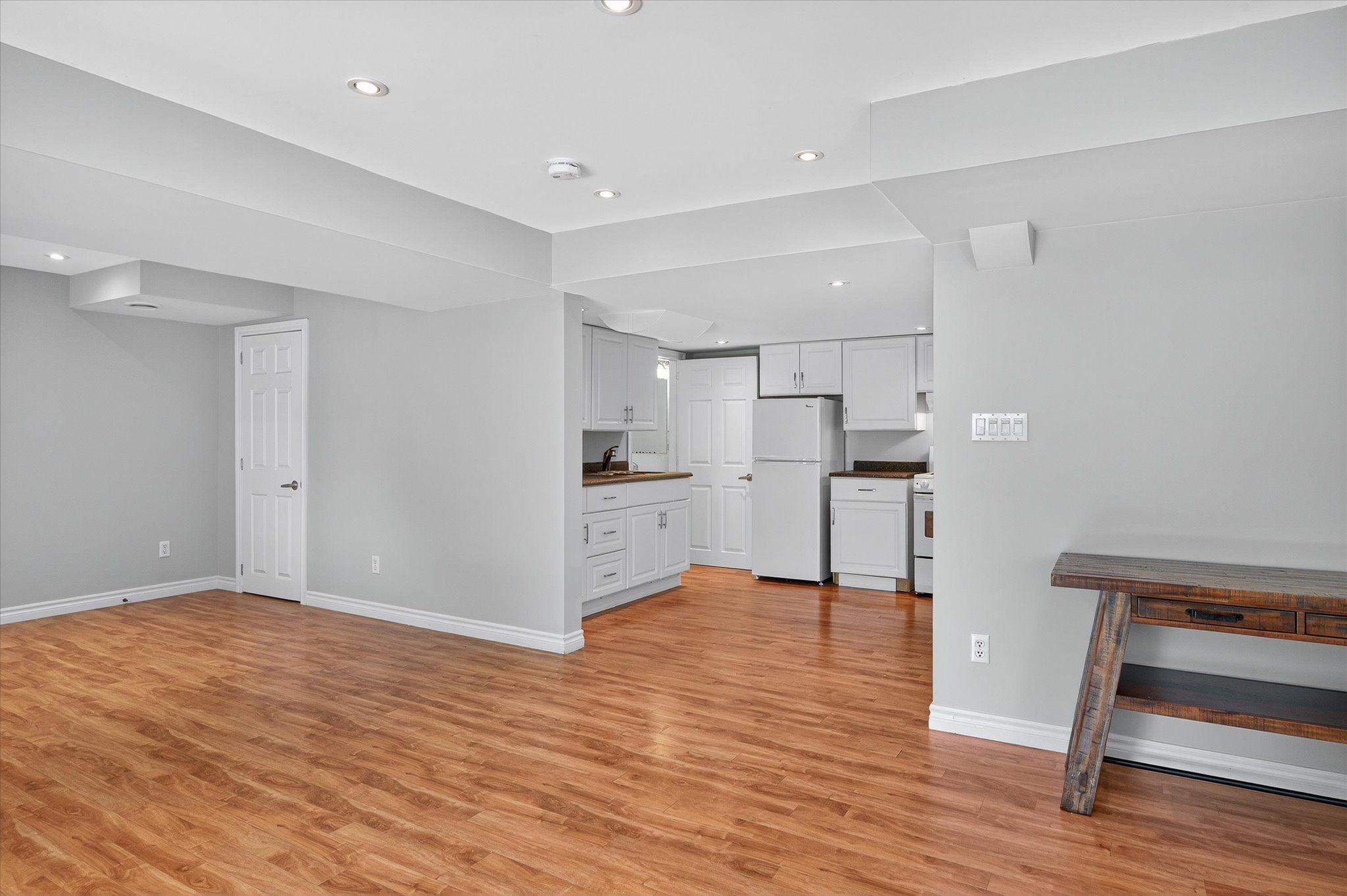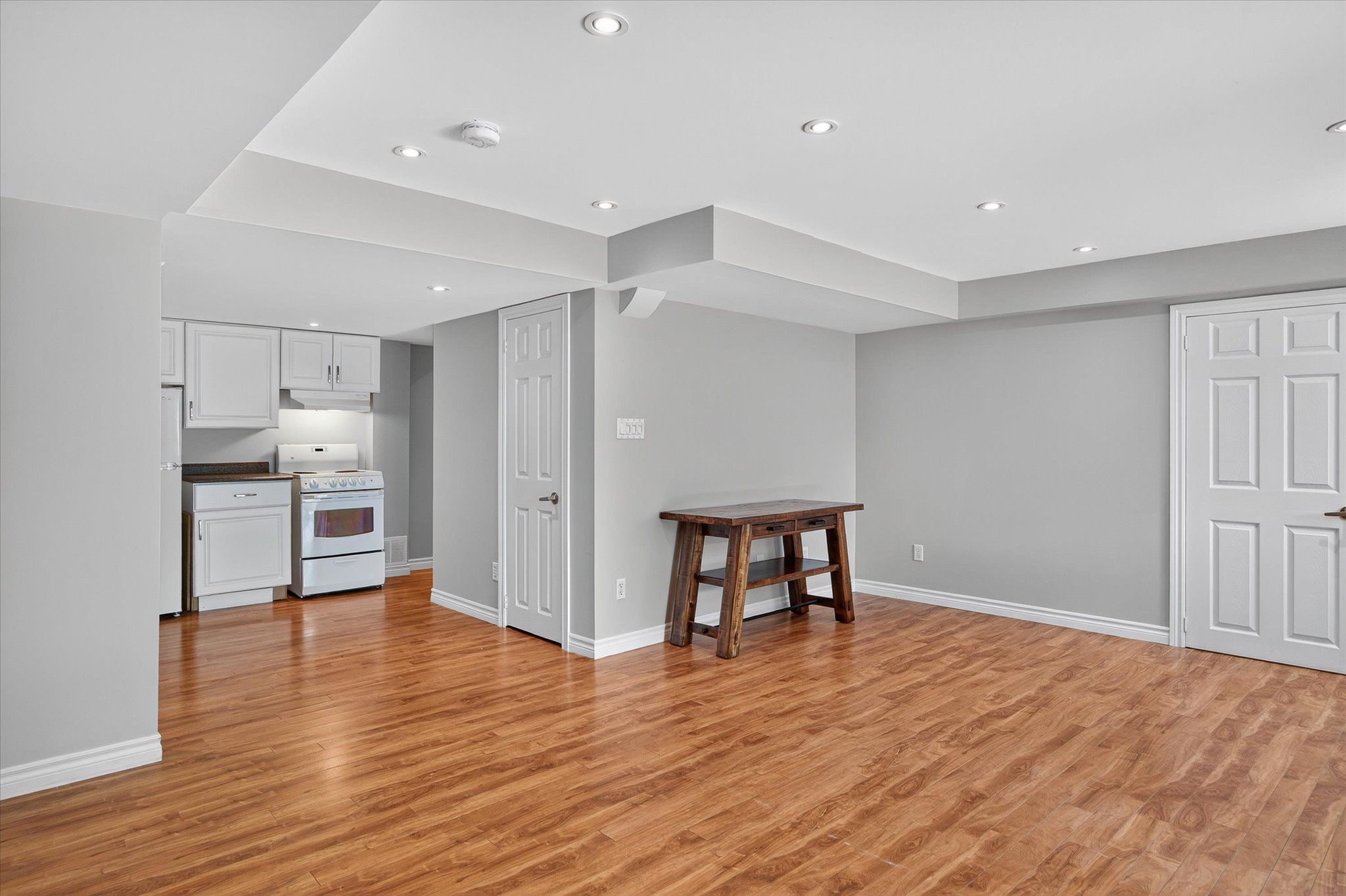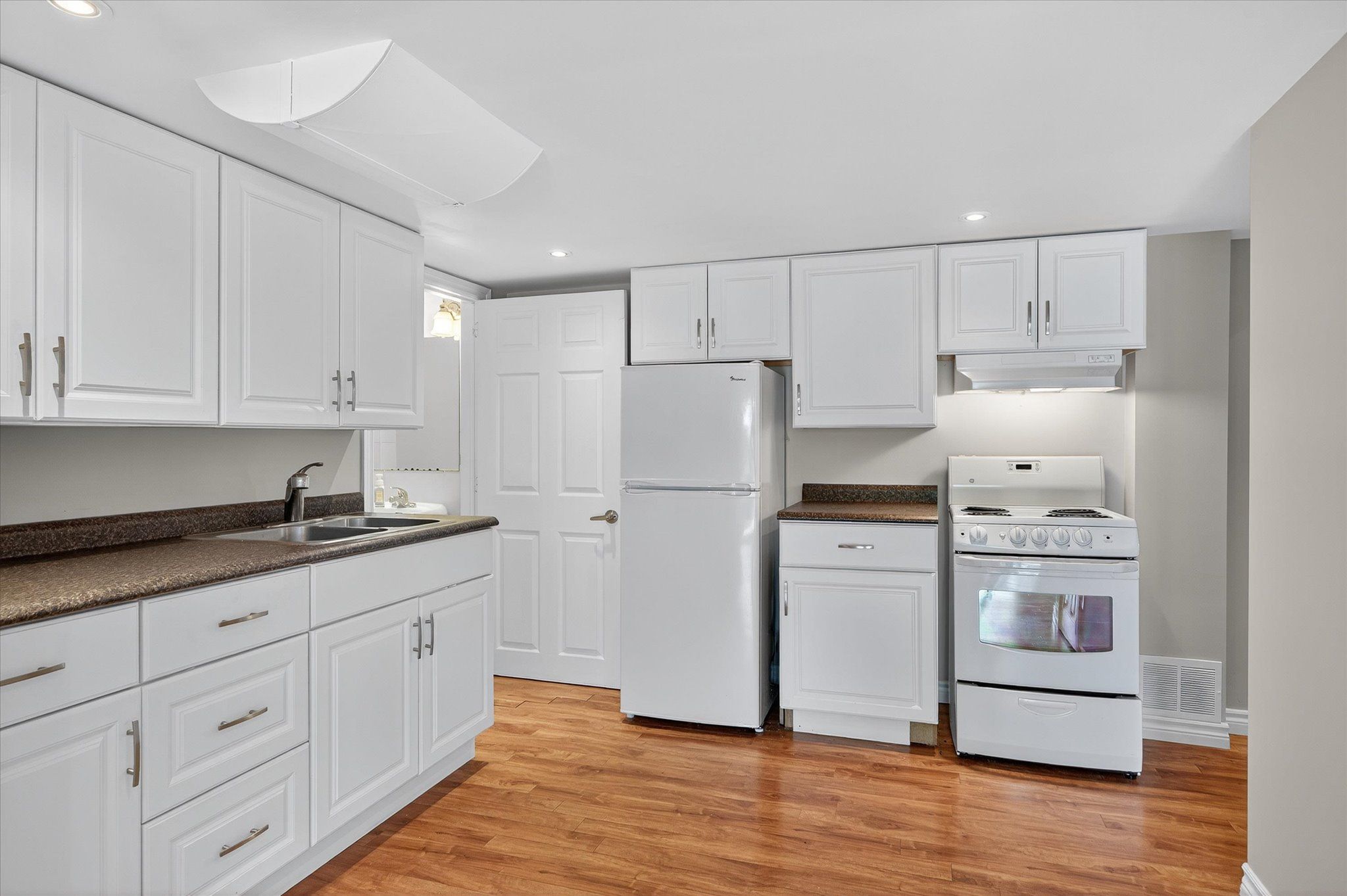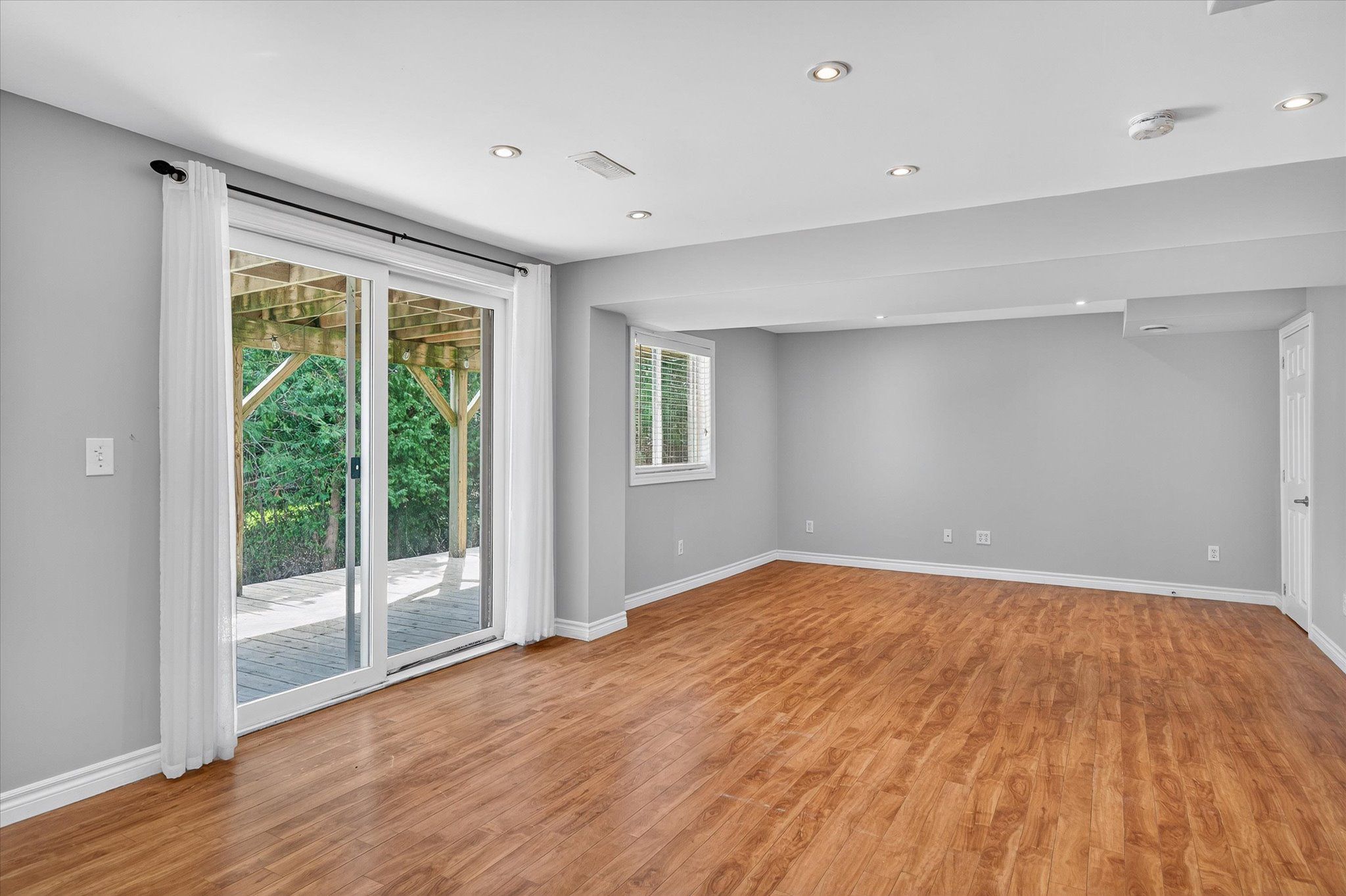 • Spacious open-concept kitchen and bright dining area with deck access.