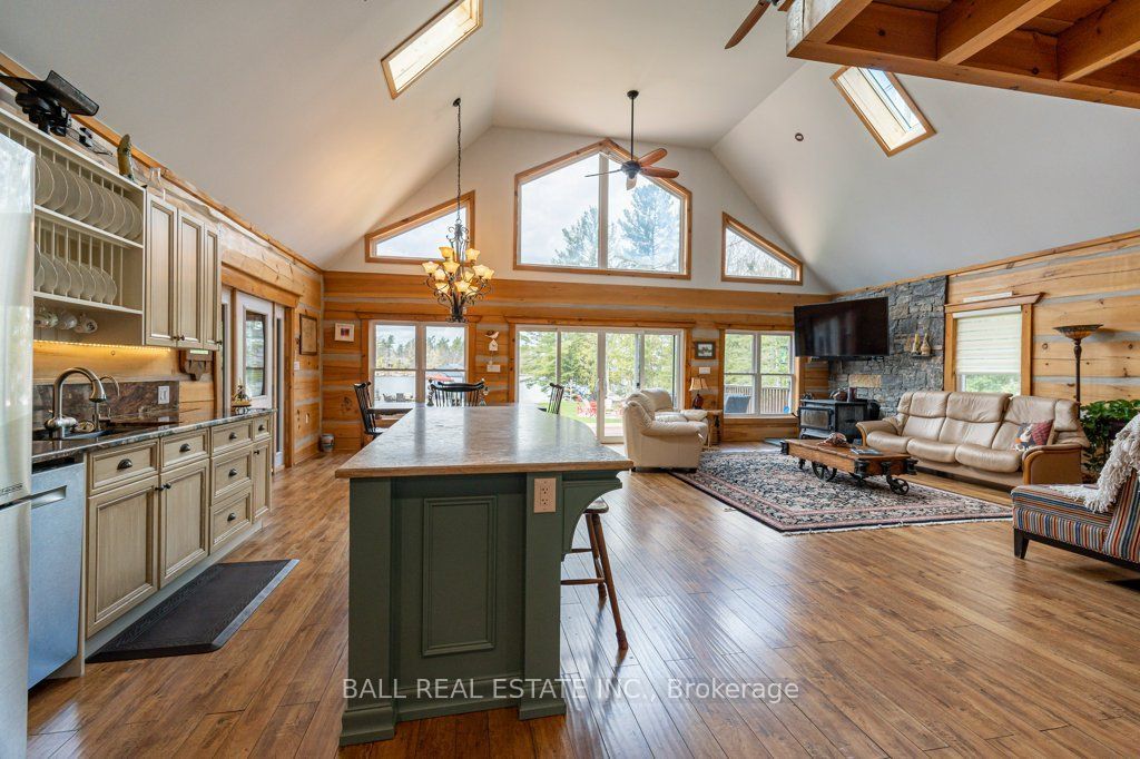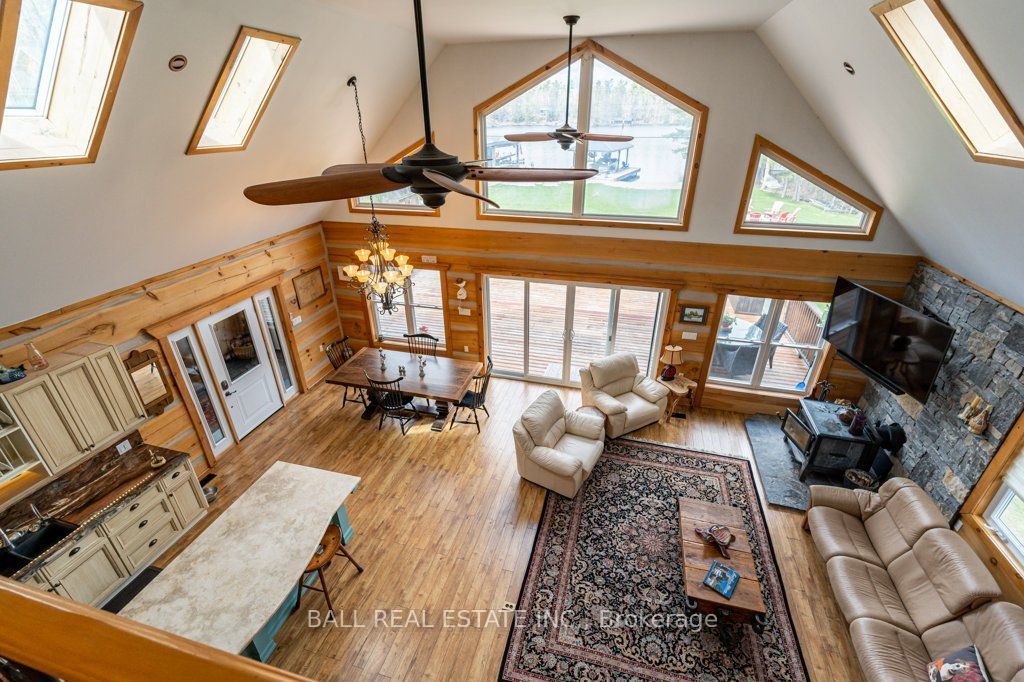Timber-frame retreat on stoney lake - sandy beach, indoor hot tub & 2+ acres! Perfectly positioned on 149ft of pristine waterfront along the coveted southeast shore of stoney lake, this stunning timber-frame retreat offers an effortless blend of comfort and refined lake living. Step inside to soaring ceilings and an open-concept living room designed for gathering. Expansive windows frame tranquil lake views, while a spacious deck extends the living space outdoors - perfect for morning coffee and sunset dinners. The loft-style primary suite overlooks the water and features a private ensuite bath - a peaceful retreat after a day on the lake. A second primary bedroom with its own ensuite makes hosting family and guests effortless. In total, the home offers 3+1 bedrooms plus bonus room and 3 full bathrooms, along with a finished basement, laundry room, and flexible space for movie nights or additional sleeping quarters. At the heart of the home is a double kitchen with two islands - ideal for entertaining, holiday weekends, and large family gatherings. For year-round enjoyment, an indoor hot tub allows you to relax in every season. Golf enthusiasts will appreciate being just 10 minutes from the renowned wildfire golf club - a first-class course known for its exceptional design and stunning natural setting. A true kawartha lakehouse - warm, welcoming, and ready for its next chapter.