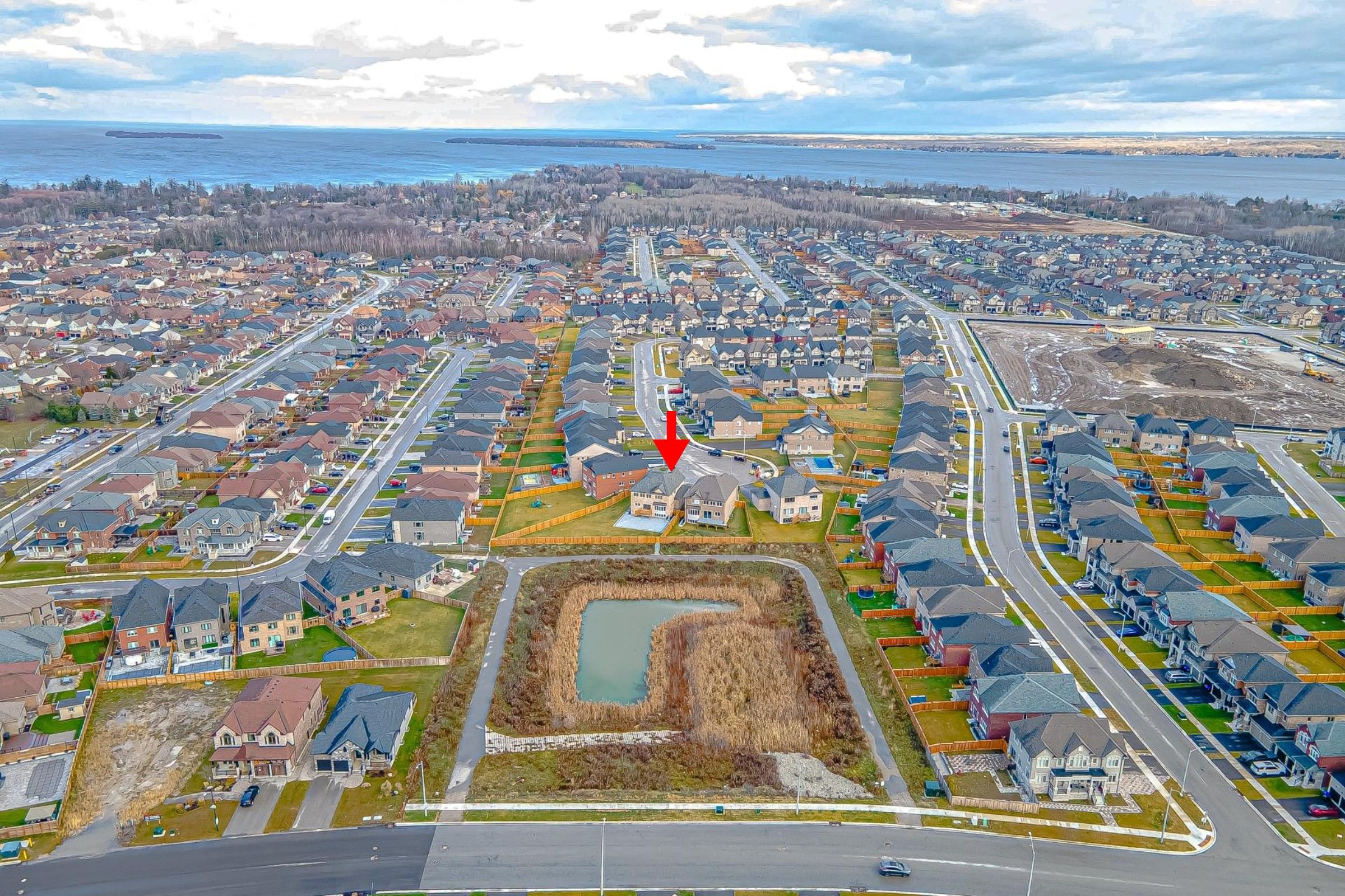 A rare opportunity to own a residence situated in the end of a cul-de-sac street-hild safe in innisfil, set on a massive pie-shaped lot backing to a pond, blessed with an unobstructed western exposure! Detached house 3437 sq feet in new belle shores community by pristine homes 4 bedrooms with 4 washrooms with special feature for the kitchen with white cabinets and quartz counter top with the center island , den and living room ,family room with the gas fireplace . Primary bed room with 5 pc ensuite and closets . Main floor has ceramic and hardwood flooring minutes away from the beach, approved future go station, shopping, country club and marina. Walkup basement, under tarion warranty, no sidewalk. Best lot in area! Perfect pool lot!
