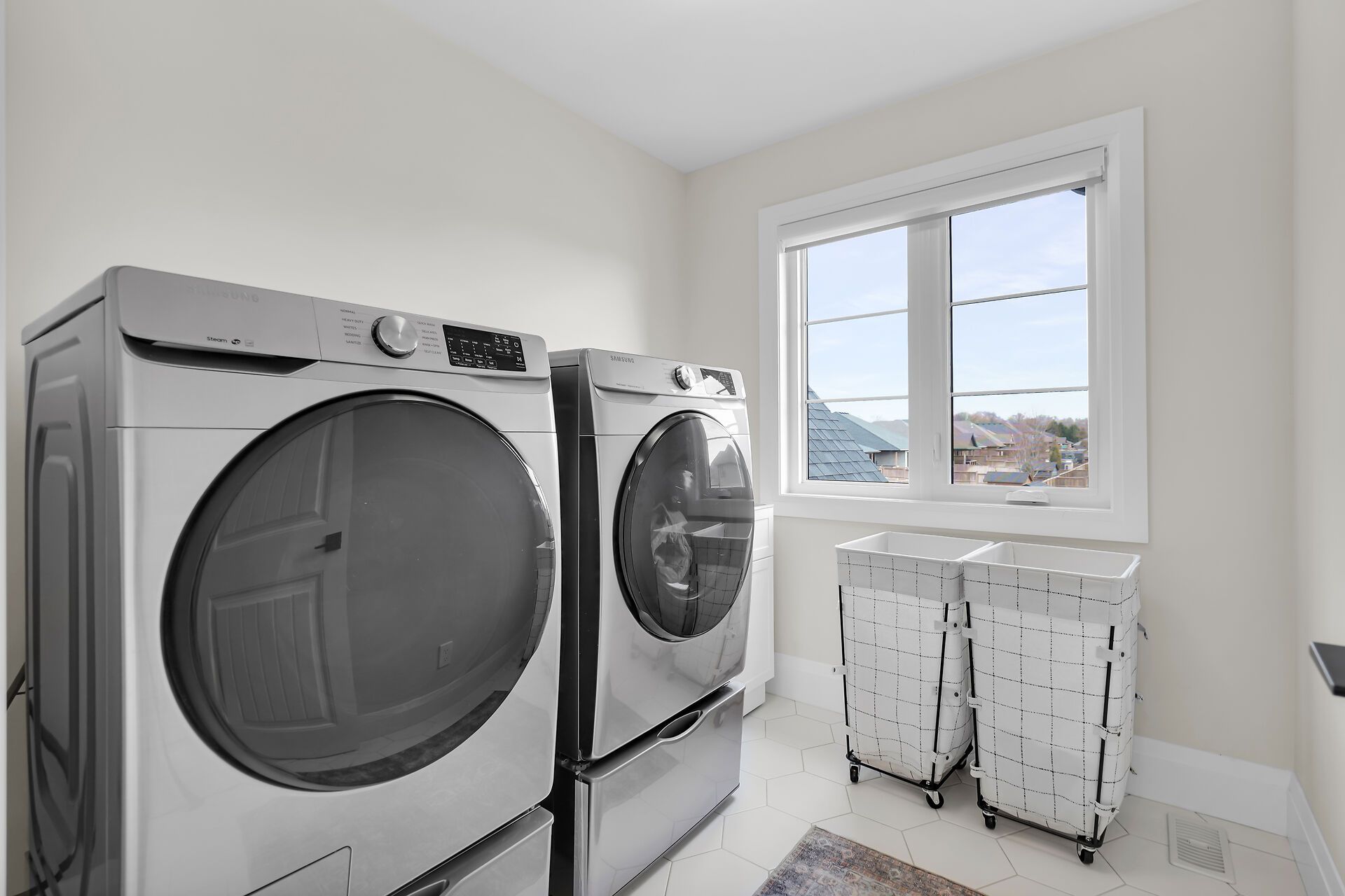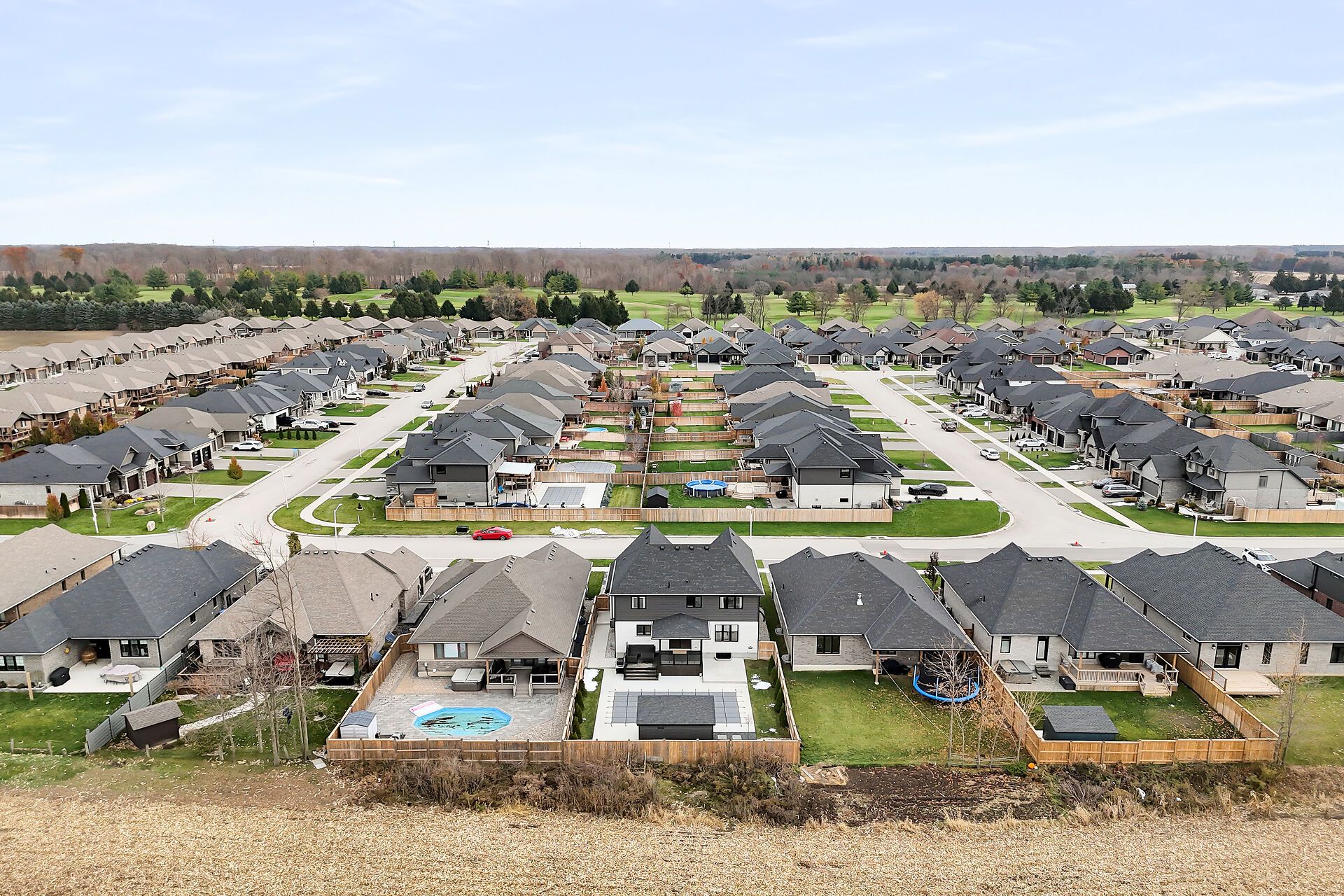 Welcome to 173 collins way, a beautifully upgraded two-storey home with pool offering approx. 3,500 sq. Ft. Of finished living space in one of strathroy's most desirable neighbourhoods southgrove meadows. Perfectly positioned next door to caradoc sands golf course and backing onto peaceful open farmland, this property screams luxury living with everyday comfort. The main floor features a versatile formal dining room that can double as a home office, along with an impressive open-concept great room, dinette, and chef's kitchen. The great room showcases a natural gas fireplace with shiplap surround, several windows overlooking oasis backyard, while the kitchen boasts custom cabinetry with quartz countertops, a custom range hood, stainless steel appliances. Fully built-in walk-in pantry with additional access to the mudroom and heated garage with epoxy flooring. Upstairs you'll find 4 spacious bedrooms, including a stunning primary suite with a massive walk-in closet and spa-inspired ensuite featuring dual vanities, a freestanding tub, and a walk-in tiled shower. A second-floor laundry room adds convenience, along with a large main bathroom ideal for kids or guests. The fully finished lower level adds exceptional bonus living space. Enjoy a spacious second great room/rec room with luxurious plush carpeting, perfect for movie nights, kids' play space, a home gym, or additional entertaining. The lower level also features a 5th bedroom ideal for guests, teens, or extended family, along with a beautifully finished full bathroom for added convenience. Outside is an entertainer's dream with a two-tier deck with glass railing, a beautiful inground heated saltwater pool, pool house/ bar and a concrete pad wrapping around the side of the home connecting to the concrete double driveway. The property is professionally landscaped and equipped with an irrigation system and sand point for low-maintenance care. A rare offering combining luxury, location, and lifestyle.
