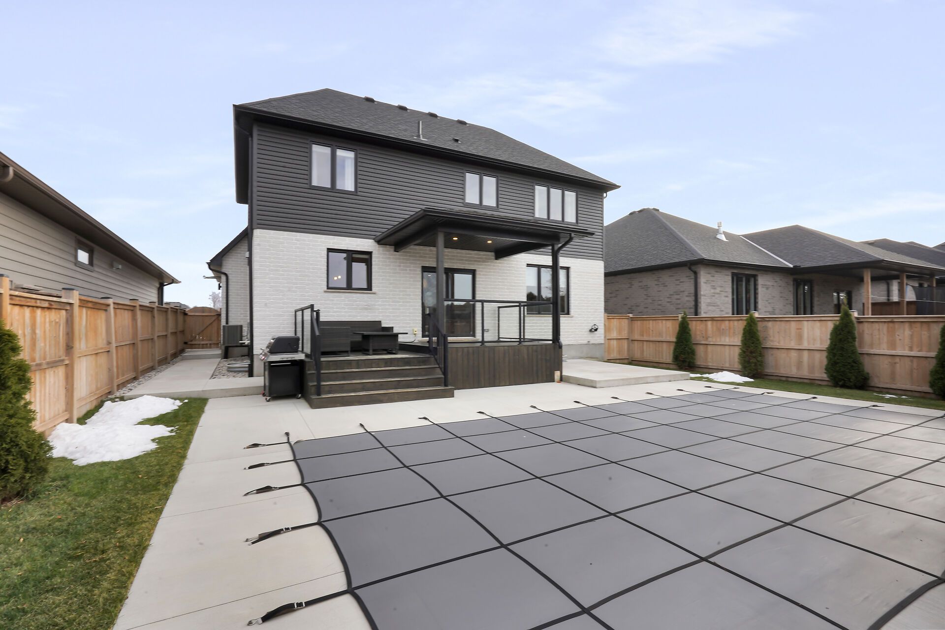 Welcome to 173 collins way, a beautifully upgraded two-storey home with pool offering approx. 3,500 sq. Ft. Of finished living space in one of strathroy's most desirable neighbourhoods southgrove meadows. Perfectly positioned next door to caradoc sands golf course and backing onto peaceful open farmland, this property screams luxury living with everyday comfort. The main floor features a versatile formal dining room that can double as a home office, along with an impressive open-concept great room, dinette, and chef's kitchen. The great room showcases a natural gas fireplace with shiplap surround, several windows overlooking oasis backyard, while the kitchen boasts custom cabinetry with quartz countertops, a custom range hood, stainless steel appliances. Fully built-in walk-in pantry with additional access to the mudroom and heated garage with epoxy flooring. Upstairs you'll find 4 spacious bedrooms, including a stunning primary suite with a massive walk-in closet and spa-inspired ensuite featuring dual vanities, a freestanding tub, and a walk-in tiled shower. A second-floor laundry room adds convenience, along with a large main bathroom ideal for kids or guests. The fully finished lower level adds exceptional bonus living space. Enjoy a spacious second great room/rec room with luxurious plush carpeting, perfect for movie nights, kids' play space, a home gym, or additional entertaining. The lower level also features a 5th bedroom ideal for guests, teens, or extended family, along with a beautifully finished full bathroom for added convenience. Outside is an entertainer's dream with a two-tier deck with glass railing, a beautiful inground heated saltwater pool, pool house/ bar and a concrete pad wrapping around the side of the home connecting to the concrete double driveway. The property is professionally landscaped and equipped with an irrigation system and sand point for low-maintenance care. A rare offering combining luxury, location, and lifestyle.