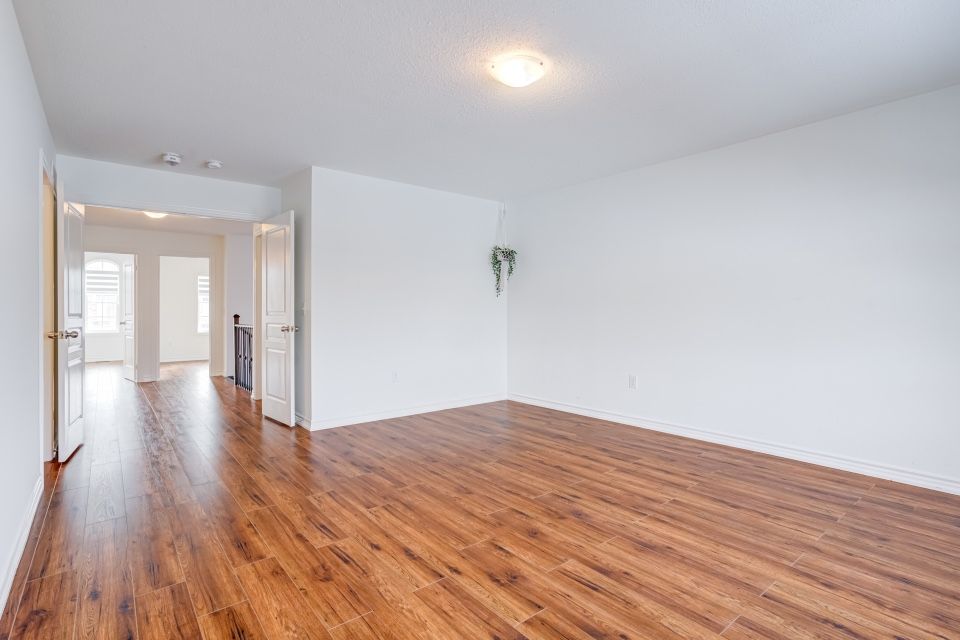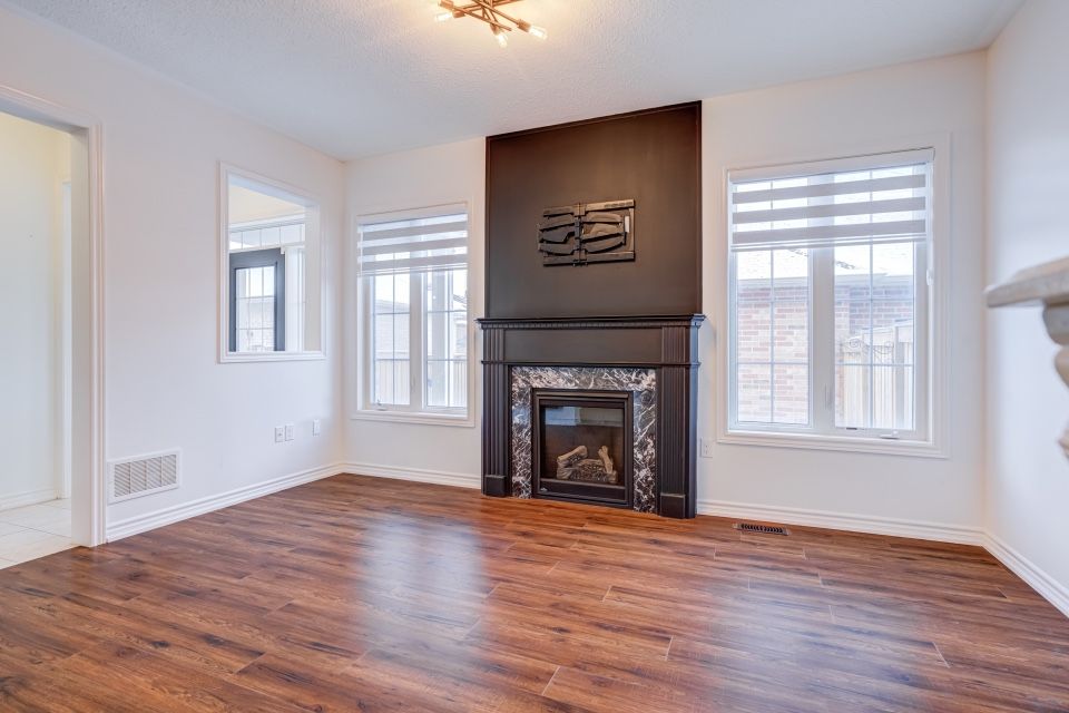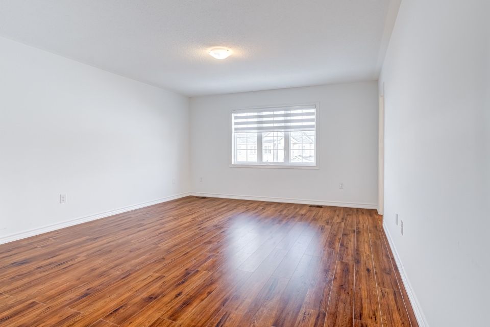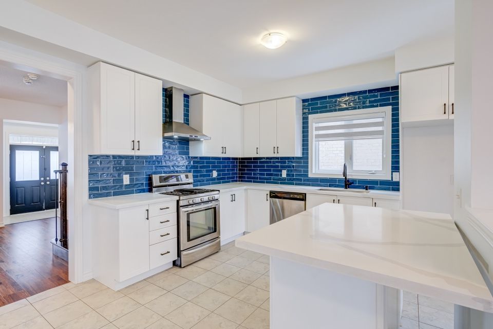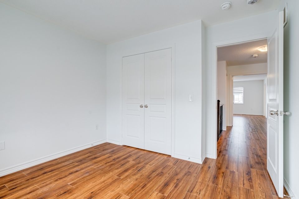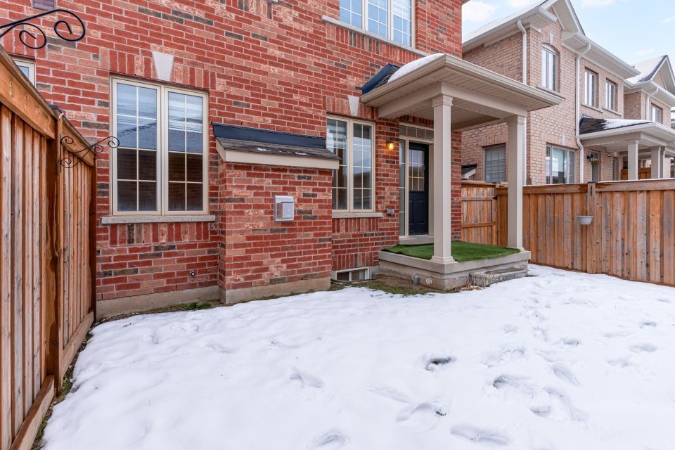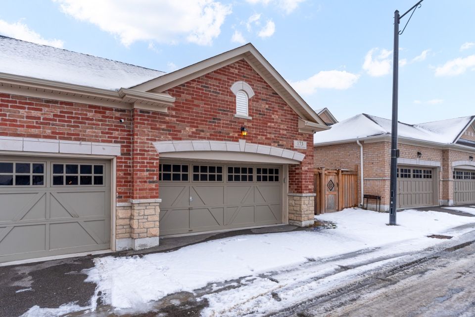 Welcome to 173 etheridge avenue, a refined brick-and-stone townhome offering exceptional space, comfort, and versatility in a desirable milton community. A stately double-door entrance welcomes you home, complemented by ample visitor/street parking directly outside or added convenience. Inside, a bright foyer with 9-foot ceilings leads to an open-concept main floor where the living and dining areas are accented by elegant wainscoting and flow seamlessly into a spacious family room with a cozy gas fireplace. The kitchen is thoughtfully designed with quartz countertops, a stylish backsplash, an undermount sink, gas stove/oven combo with exhaust hood, and a generous breakfast area-ideal for both everyday living and entertaining. Laminate flooring enhances the living spaces, while ceramic tile finishes the kitchen, breakfast area, and powder room. A private backyard leading to the detached double-car garage completes the main level. The second floor offers three well-appointed bedrooms with laminate flooring, windows, closets, and blinds throughout. A convenient laundry room with tub and window adds everyday ease, while the primary suite features a walk-in closet and a bright ensuite with a large walk-in shower, double sinks, and a window. A well-designed main bathroom serves the additional bedrooms. The finished basement provides impressive additional living space with an open-concept recreation area, pot lighting, laminate flooring, and windows. A bedroom and full bathroom create flexibility for guests or extended family, while ample storage, two cold rooms, and existing rough-ins for a future kitchenette add long-term value.