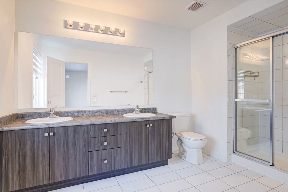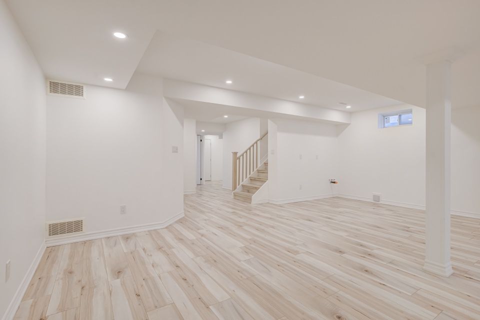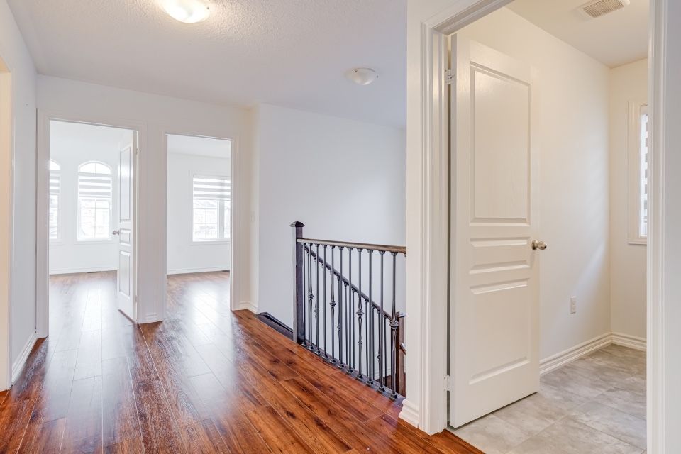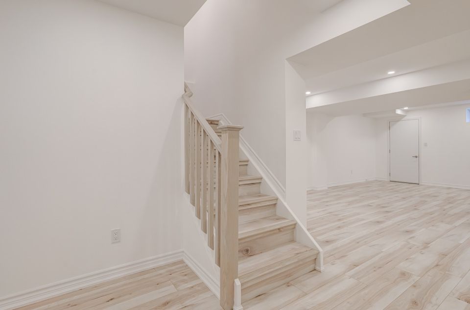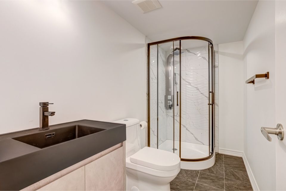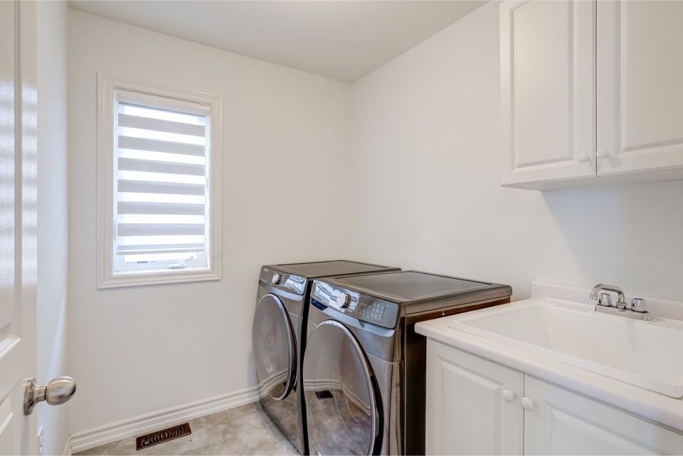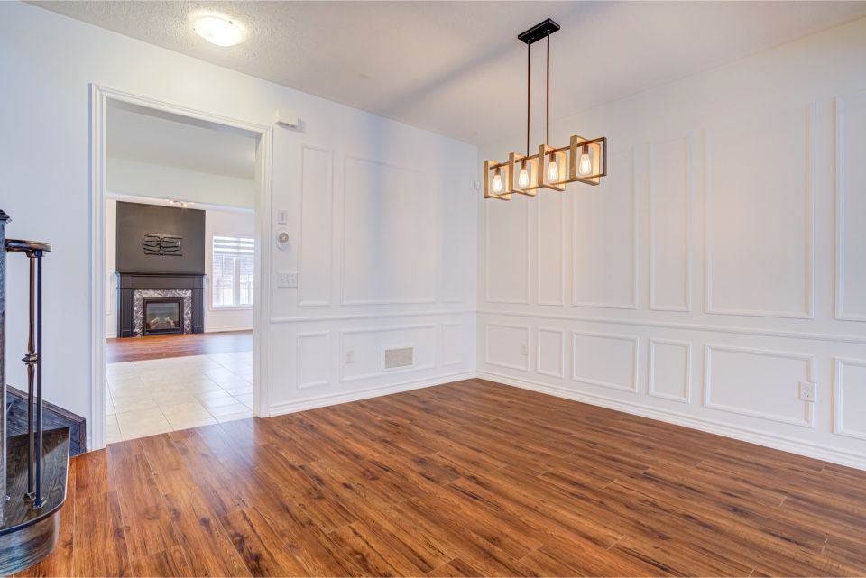 Welcome to 173 etheridge avenue, a refined brick-and-stone townhome offering exceptional space, comfort, and versatility in a desirable milton community. A stately double-door entrance welcomes you home, complemented by ample visitor/street parking directly outside or added convenience. Inside, a bright foyer with 9-foot ceilings leads to an open-concept main floor where the living and dining areas are accented by elegant wainscoting and flow seamlessly into a spacious family room with a cozy gas fireplace. The kitchen is thoughtfully designed with quartz countertops, a stylish backsplash, an undermount sink, gas stove/oven combo with exhaust hood, and a generous breakfast area-ideal for both everyday living and entertaining. Laminate flooring enhances the living spaces, while ceramic tile finishes the kitchen, breakfast area, and powder room. A private backyard leading to the detached double-car garage completes the main level. The second floor offers three well-appointed bedrooms with laminate flooring, windows, closets, and blinds throughout. A convenient laundry room with tub and window adds everyday ease, while the primary suite features a walk-in closet and a bright ensuite with a large walk-in shower, double sinks, and a window. A well-designed main bathroom serves the additional bedrooms. The finished basement provides impressive additional living space with an open-concept recreation area, pot lighting, laminate flooring, and windows. A bedroom and full bathroom create flexibility for guests or extended family, while ample storage, two cold rooms, and existing rough-ins for a future kitchenette add long-term value.