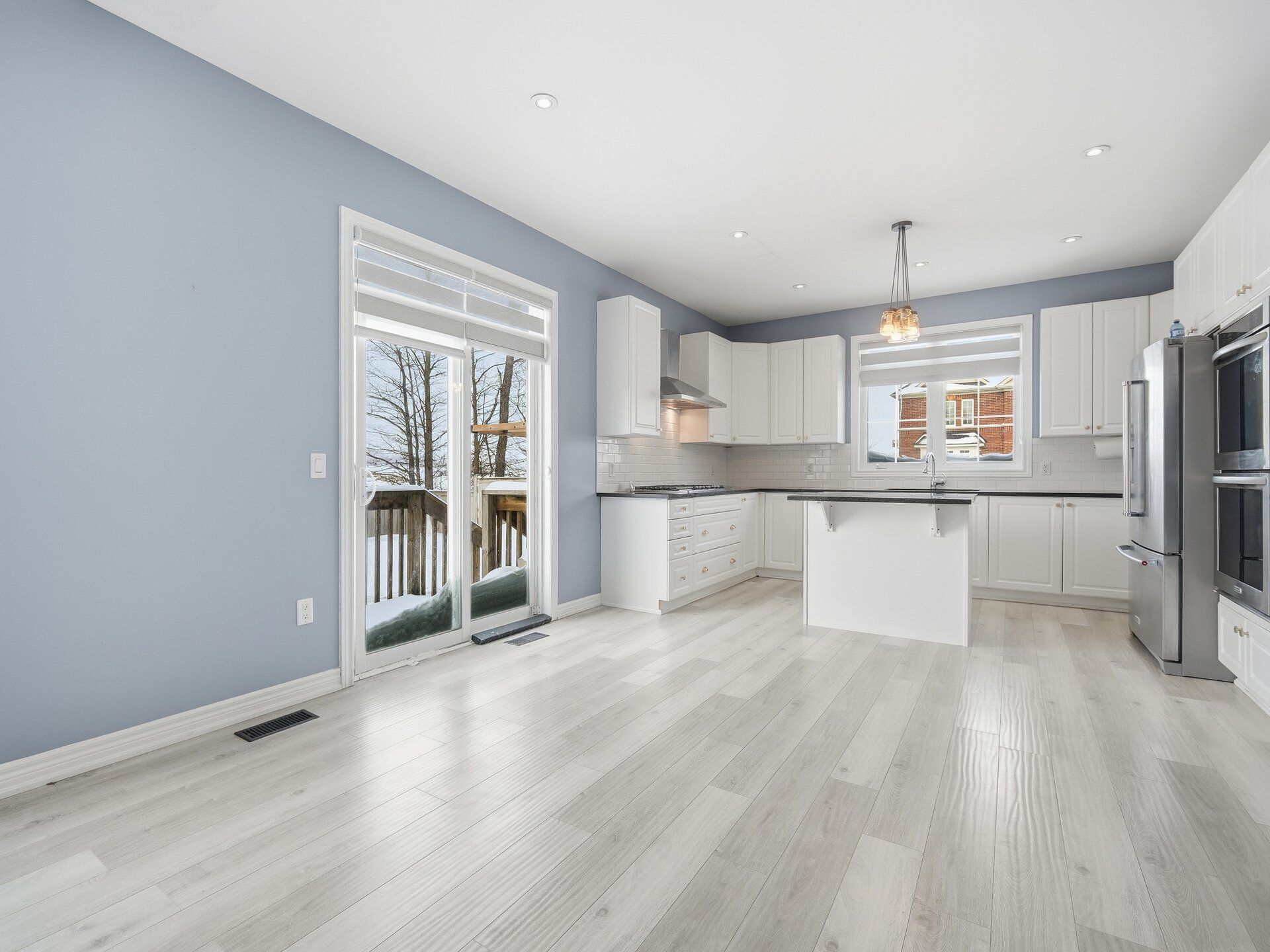 • Eat-in kitchen features built-in appliances and a large backyard.