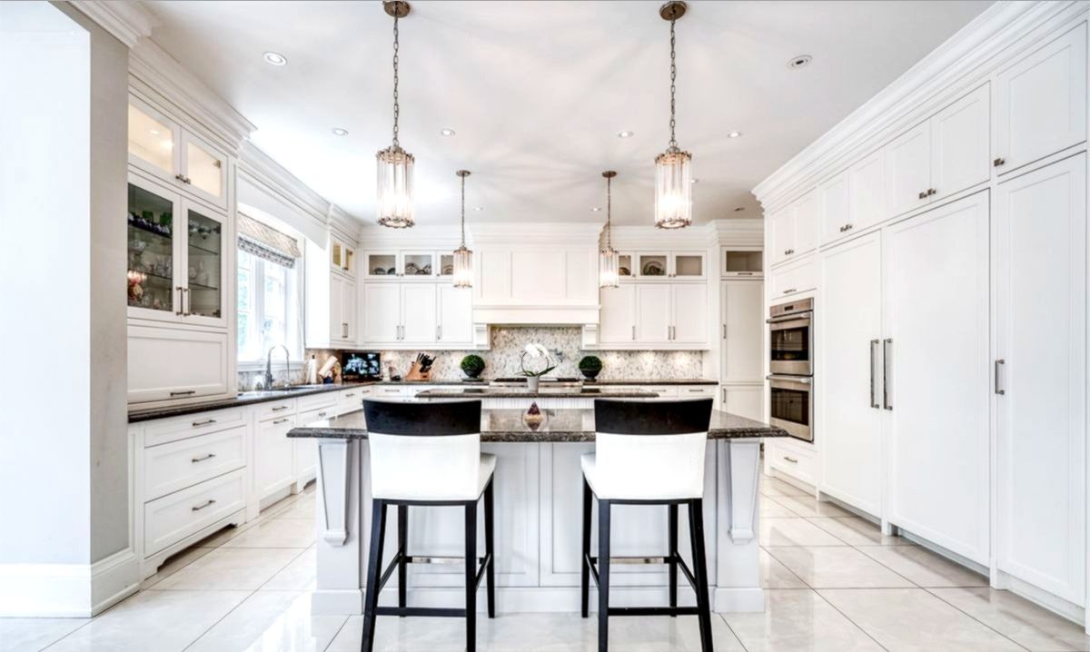 • Gourmet chef's kitchen with top-tier appliances and scenic breakfast area.