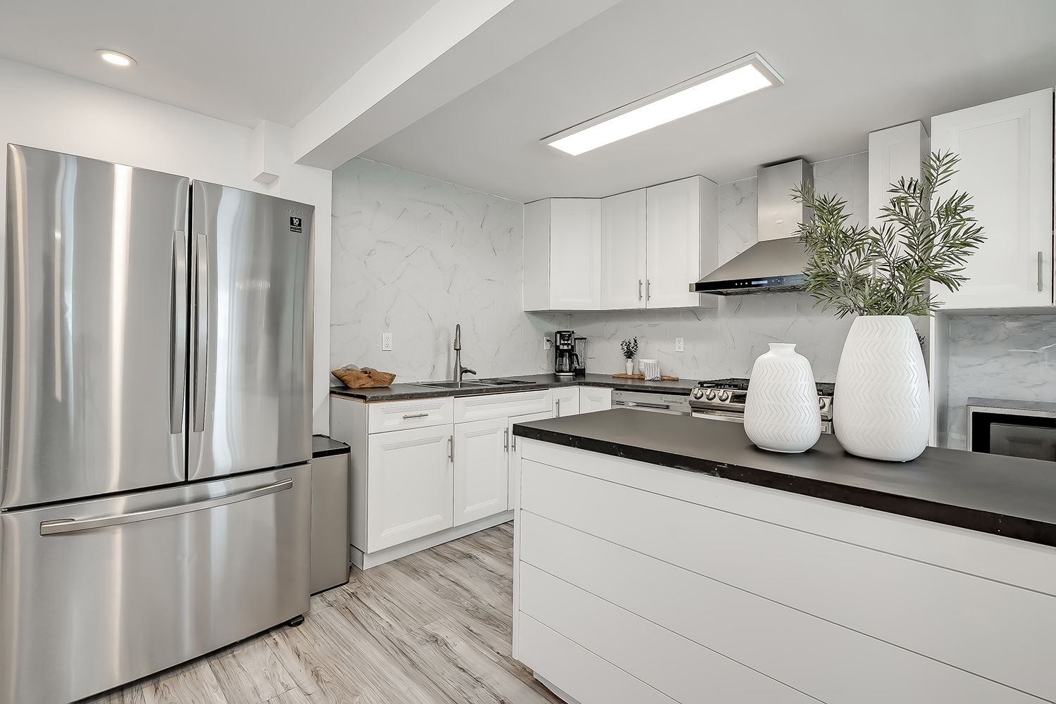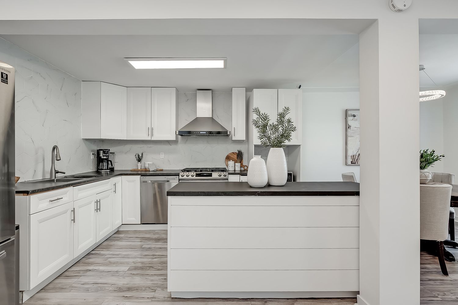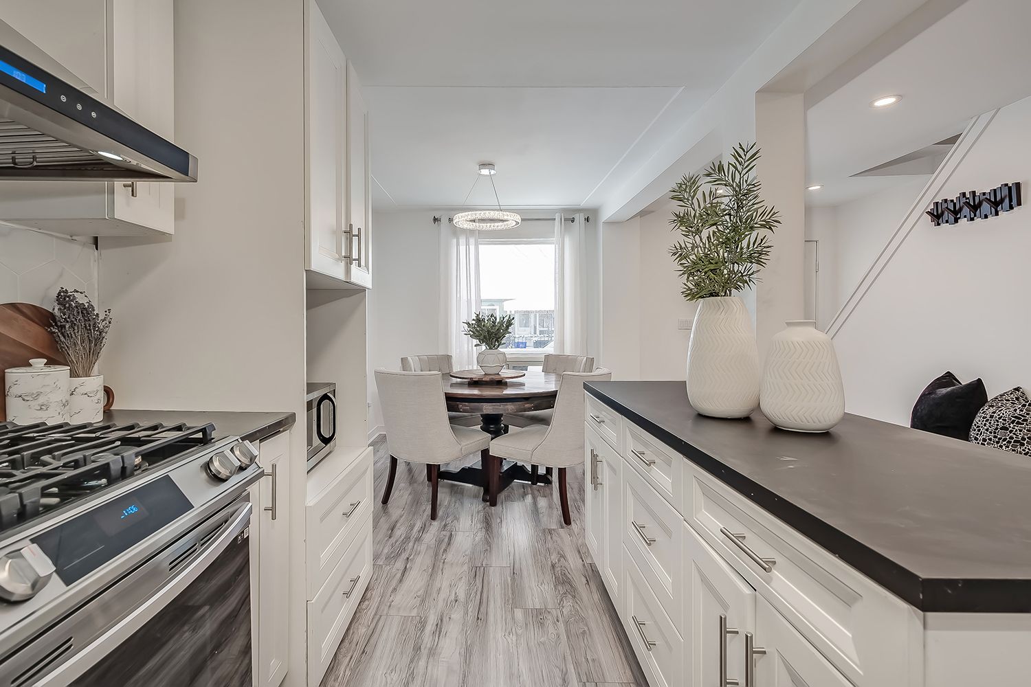• Bright eat-in kitchen with modern appliances and stylish finishes.