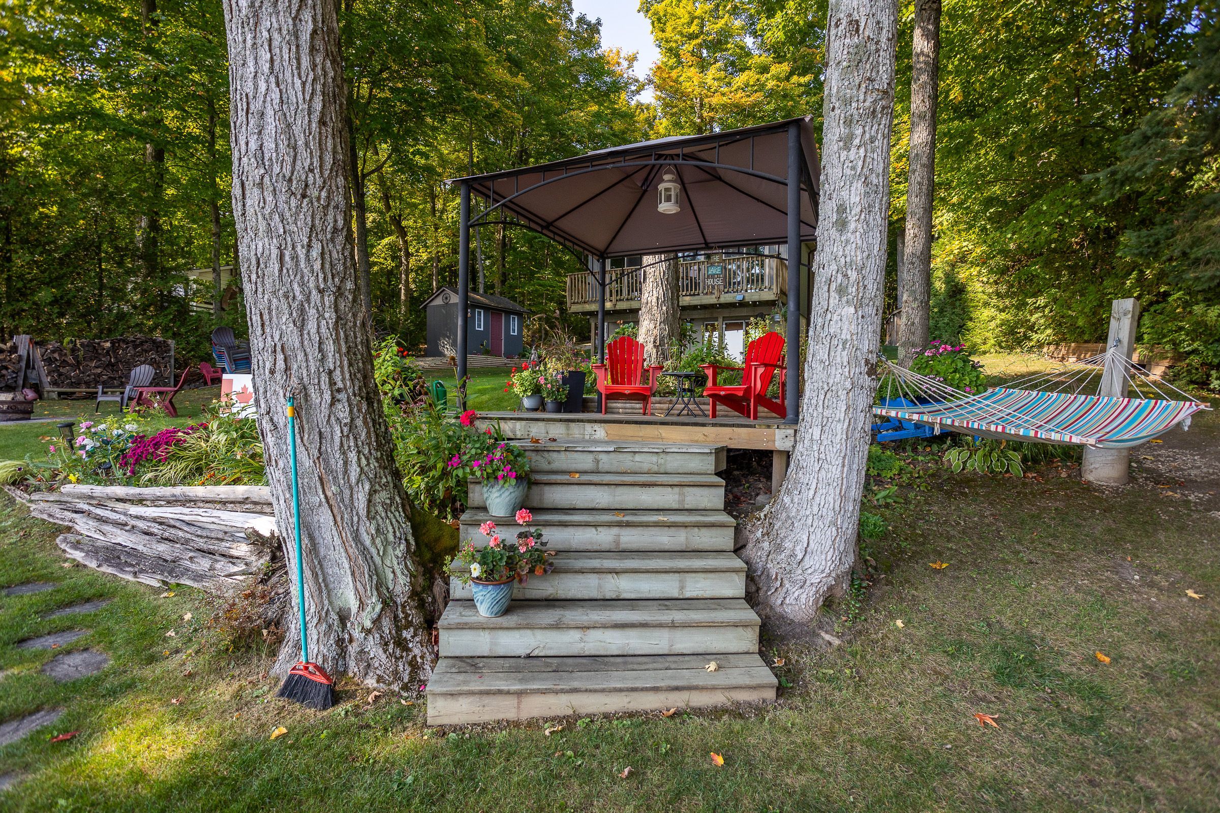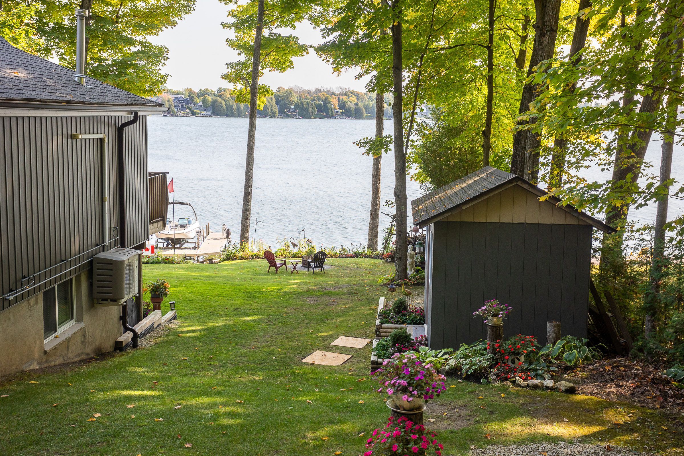 Gorgeous waterfront views at this lake eugenia cottage/4 season home. This 3 bedroom, 2 bathroom fully renovated bungalow features an open concept living space on the main floor with views of the lake from the kitchen/dining island as well as the living room. Along with vaulted ceilings the living room has a propane jotul fireplace and a walk-out to a balcony where you can further enjoy the lake view. Also featured on the main floor are 2 bedrooms and a 2pc bathroom/laundry room. In the basement you will find yourself with another view of the lake from the family room which has a propane fireplace and a walk-out to a concrete patio, a third bedroom and a 3pc bathroom, as well as the mechanical room. There is a 20x24 detached 2 door garage with a 9' ceiling and metal roof, 2 storage sheds, and a deck over looking the waterside dock. The yard is beautifully landscaped and features an in-ground sprinkler system. Added bonus of shared ownership and use of 127 acres known as macdonald farm where there are trails for recreational use.